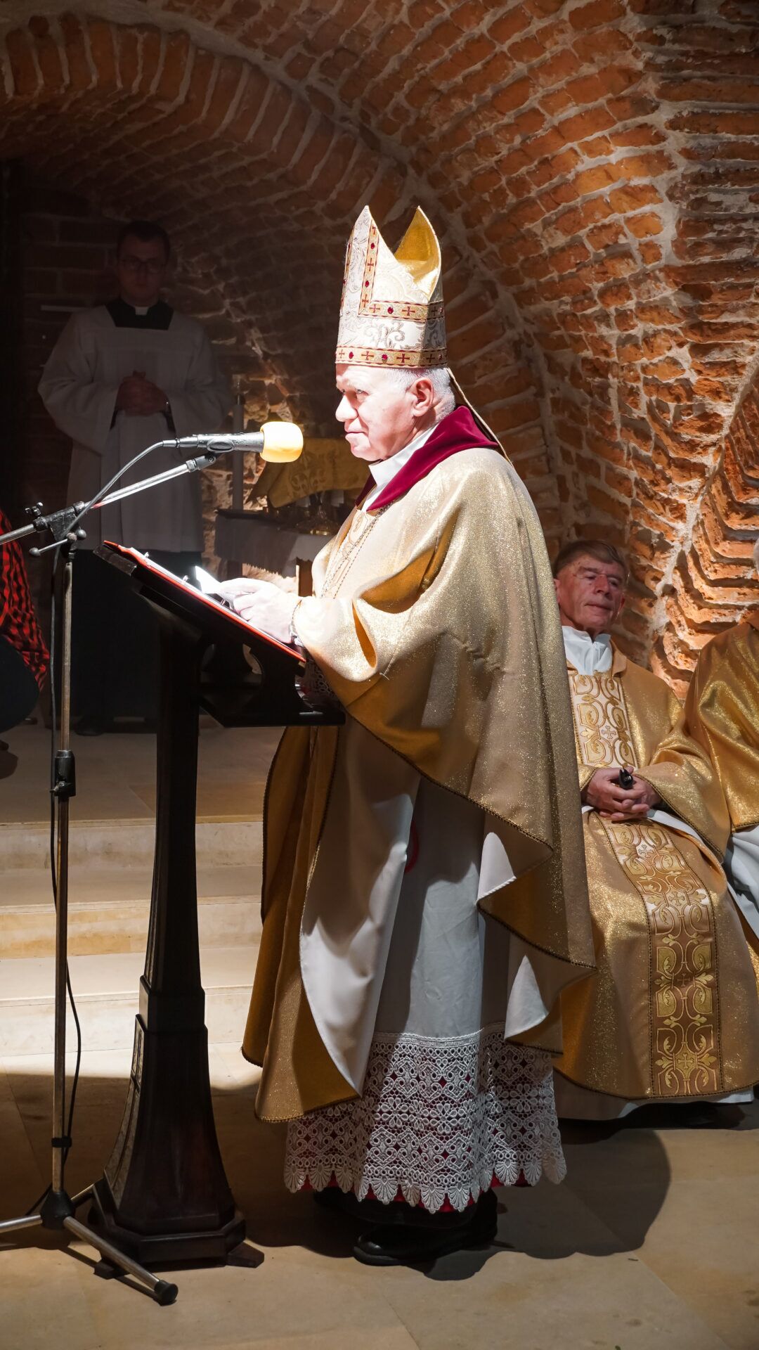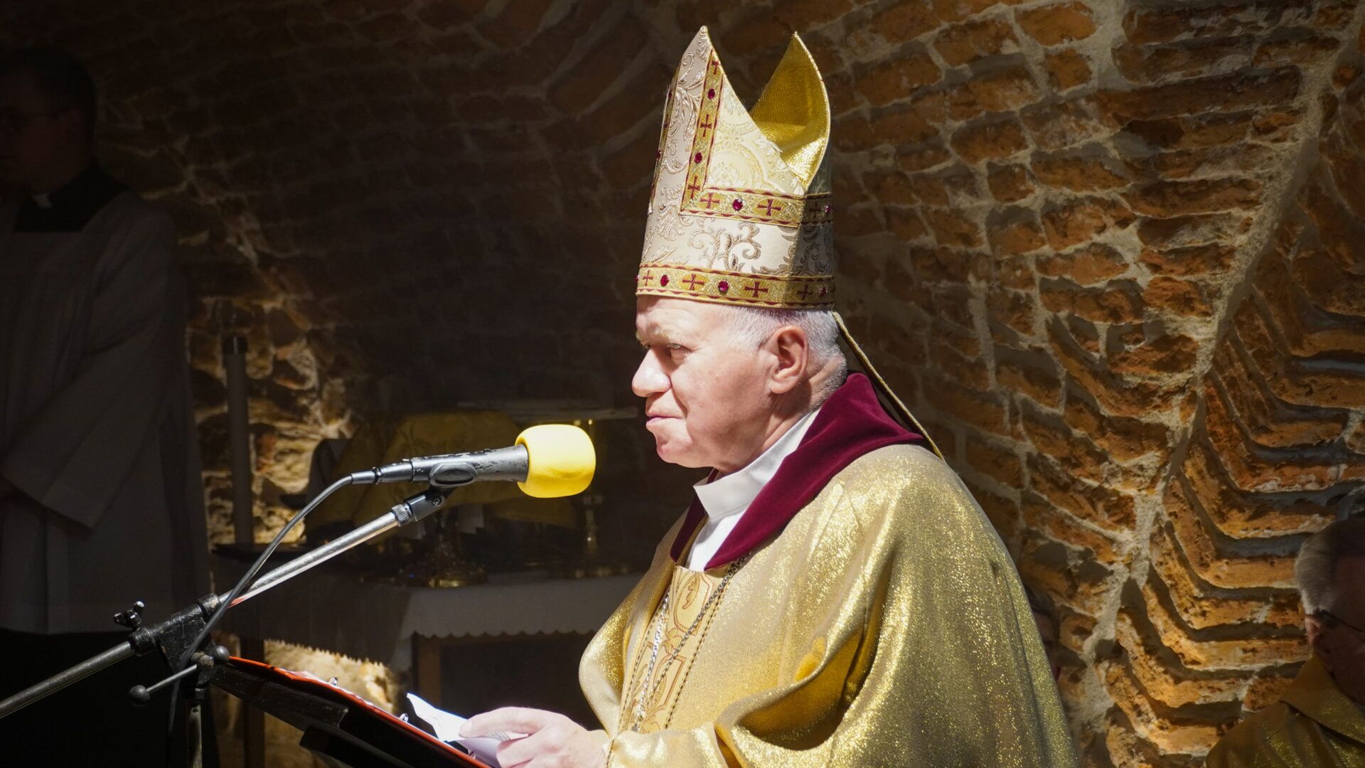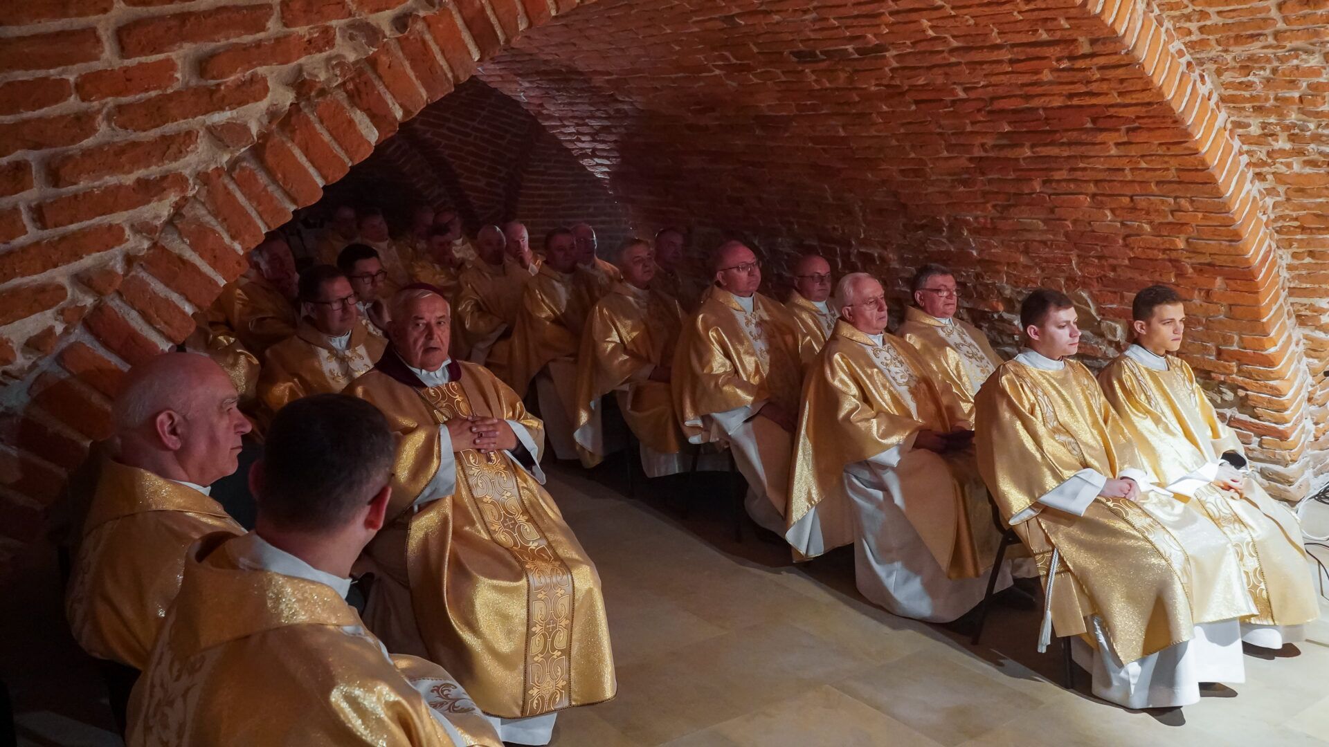 Na początku okolicznościowej homilii abp Adam Szal powiedział, że czas i miejsce modlitwy związane są z dwoma ważnymi wydarzeniami. – Pierwsze miało miało miejsce 23 maja 1964 roku, kiedy to w katedrze łomżyńskiej święcenia kapłańskie przyjęło szesnastu alumnów łomżyńskiego seminarium z rąk bp Czesława Falkowskiego. Wśród tych nowowyświęconych był abp Józef – przypomniał hierarcha. – Drugie wydarzenie, które zgromadziło nas przy szczególnym ołtarzu miało miejsce w katedrze przemyskiej 21 czerwca 1964 roku. Ten ołtarz, który wówczas był używany do celebry jest przed nami, oczywiście w częściach. Został zrekonstruowany tu, w kryptach katedry przemyskiej. Właśnie wtedy z rąk bp. Franciszka Bardy święcenia kapłańskie przyjęło dziewiętnastu alumnów przemyskiego seminarium – dodał.