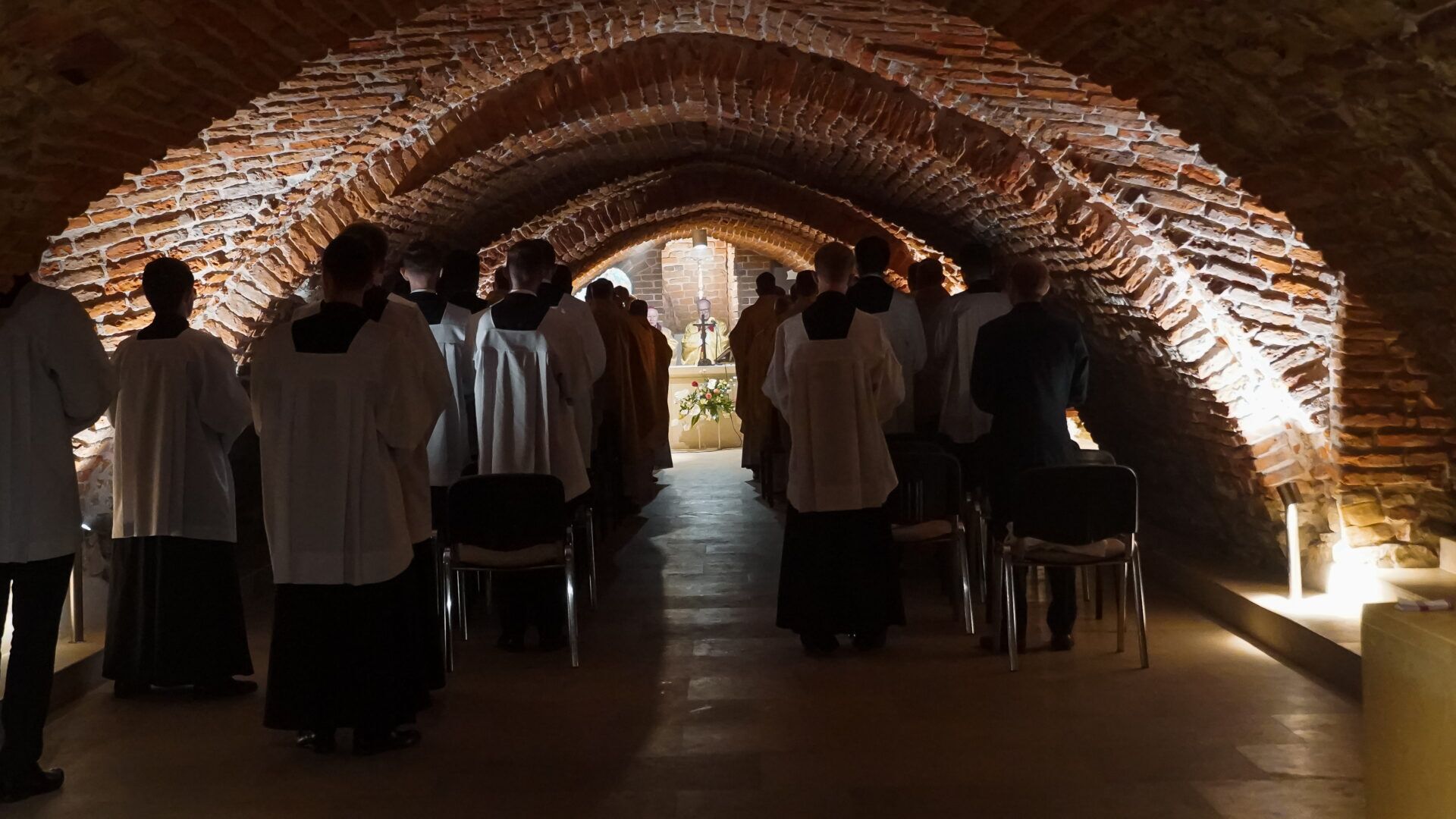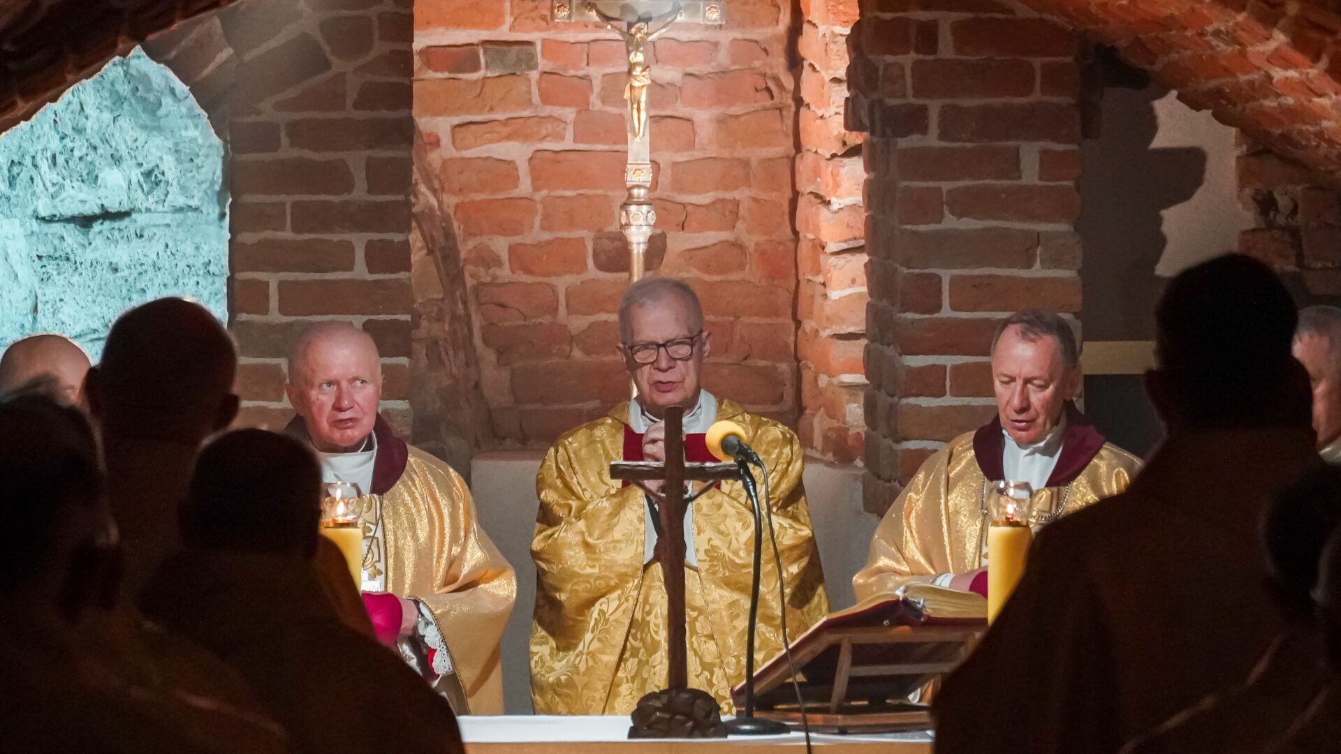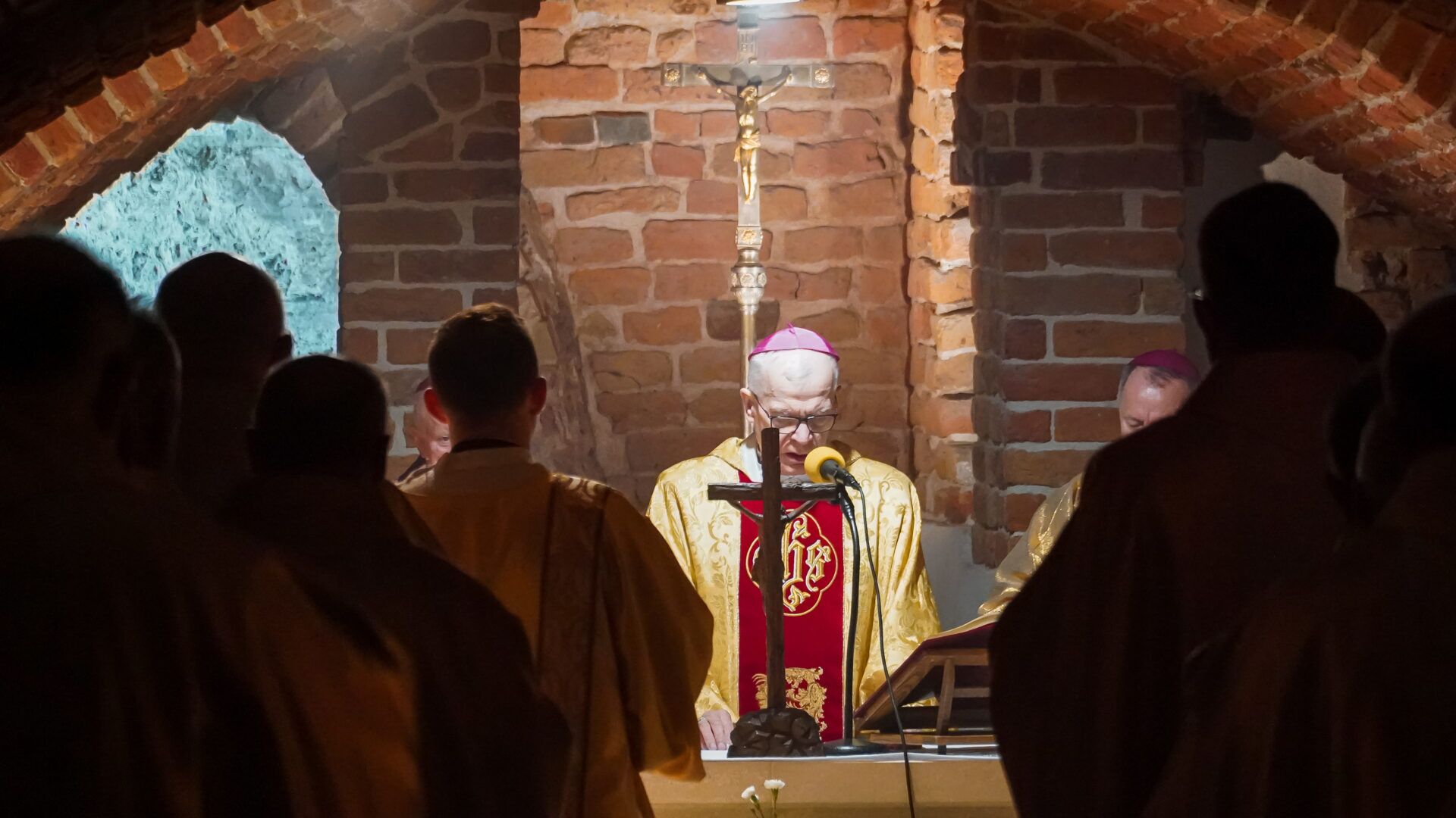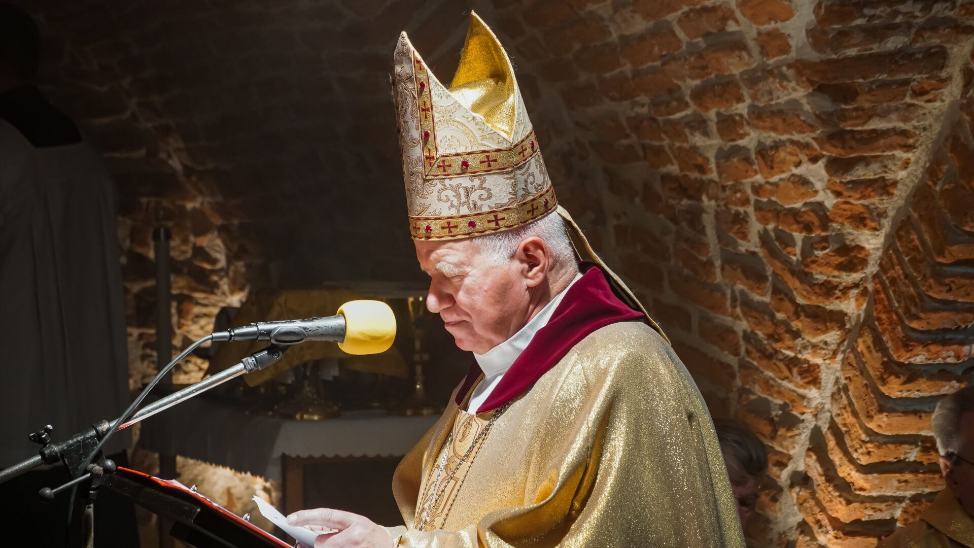 Na początku okolicznościowej homilii abp Adam Szal powiedział, że czas i miejsce modlitwy związane są z dwoma ważnymi wydarzeniami. – Pierwsze miało miało miejsce 23 maja 1964 roku, kiedy to w katedrze łomżyńskiej święcenia kapłańskie przyjęło szesnastu alumnów łomżyńskiego seminarium z rąk bp Czesława Falkowskiego. Wśród tych nowowyświęconych był abp Józef – przypomniał hierarcha. – Drugie wydarzenie, które zgromadziło nas przy szczególnym ołtarzu miało miejsce w katedrze przemyskiej 21 czerwca 1964 roku. Ten ołtarz, który wówczas był używany do celebry jest przed nami, oczywiście w częściach. Został zrekonstruowany tu, w kryptach katedry przemyskiej. Właśnie wtedy z rąk bp. Franciszka Bardy święcenia kapłańskie przyjęło dziewiętnastu alumnów przemyskiego seminarium – dodał.