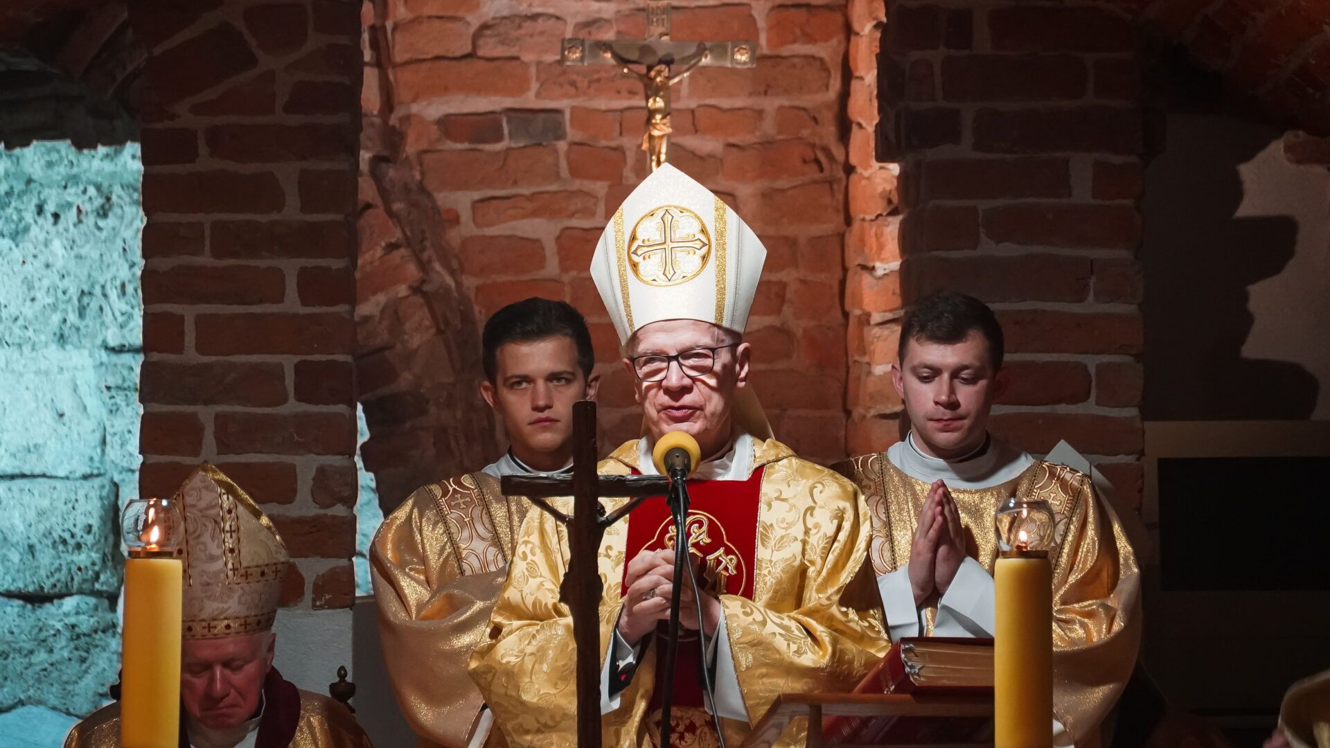 Na początku okolicznościowej homilii abp Adam Szal powiedział, że czas i miejsce modlitwy związane są z dwoma ważnymi wydarzeniami. – Pierwsze miało miało miejsce 23 maja 1964 roku, kiedy to w katedrze łomżyńskiej święcenia kapłańskie przyjęło szesnastu alumnów łomżyńskiego seminarium z rąk bp Czesława Falkowskiego. Wśród tych nowowyświęconych był abp Józef – przypomniał hierarcha. – Drugie wydarzenie, które zgromadziło nas przy szczególnym ołtarzu miało miejsce w katedrze przemyskiej 21 czerwca 1964 roku. Ten ołtarz, który wówczas był używany do celebry jest przed nami, oczywiście w częściach. Został zrekonstruowany tu, w kryptach katedry przemyskiej. Właśnie wtedy z rąk bp. Franciszka Bardy święcenia kapłańskie przyjęło dziewiętnastu alumnów przemyskiego seminarium – dodał.