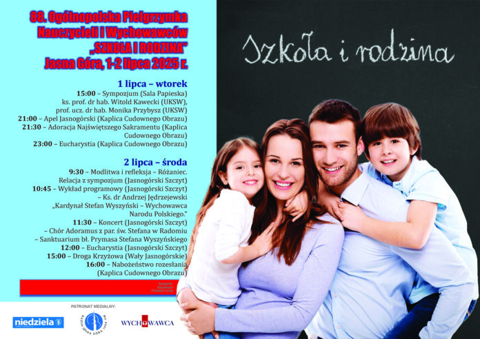 W dniach 1-2 lipca 2025 r., odbędzie się 88. Ogólnopolska Pielgrzymka Nauczycieli i Wychowawców na Jasną Górę. W programie znajduje się sympozjum naukowe, Apel Jasnogórski, adoracja Najświętszego Sakramentu, wykład programowy, koncert, Droga Krzyżowa i nabożeństwo rozesłania.