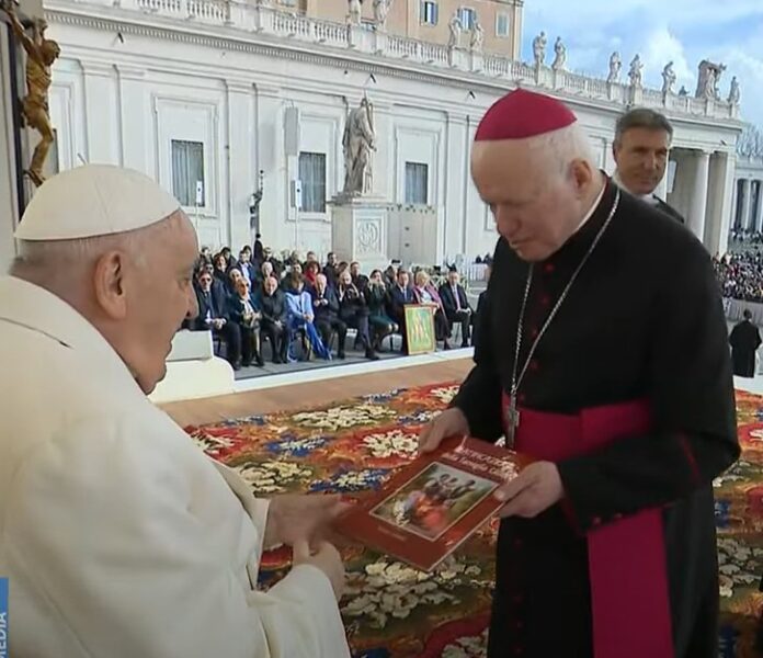 Na zakończenie audiencji generalnej, abp Adam Szal, metropolita przemyski, wręczył Ojcu Świętemu książkę o bł. Rodzinie Ulmów. 24 marca przypada 80. rocznica śmierci błogosławionych Małżonków i ich siedmiorga dzieci.