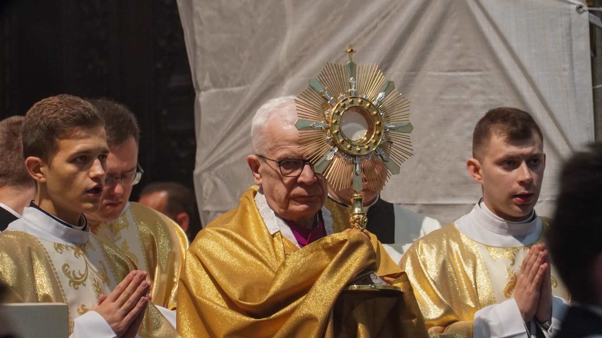 Podczas homilii abp Adam Szal zaprosił wiernych do refleksji nad tematem Eucharystii. Zwrócił uwagę, że ostatni czas w liturgii ukazuje nam tę piękną tajemnicę, czy to przez okres Wielkiego Postu, Triduum Paschalne i wreszcie okres wielkanocny. – Dziękujemy Panu Bogu za tę tajemnicę, a dzisiaj pocieszamy się słowami Chrystusa: „A oto Ja jestem z wami po wszystkie dni, aż do skończenia świata”. W tym zapewnieniu słychać bicie serca Jezusa.
