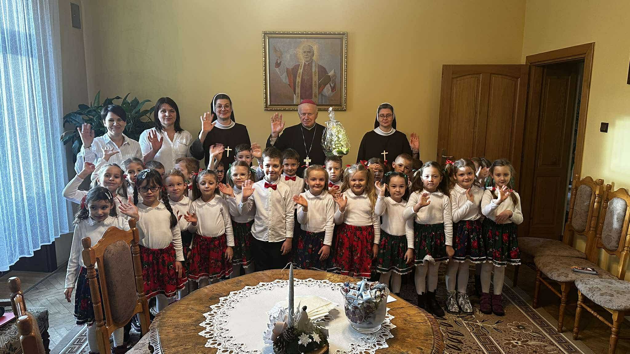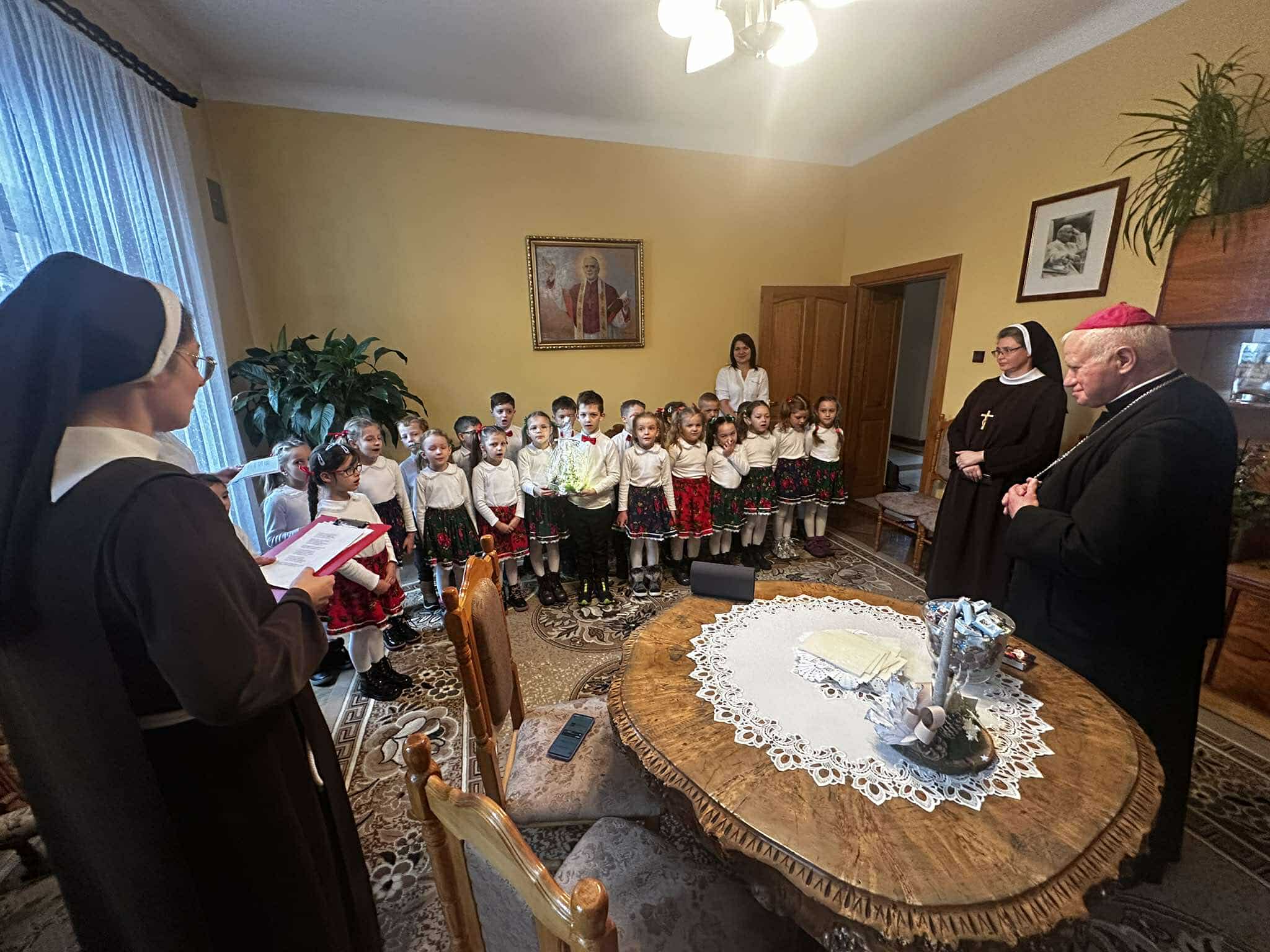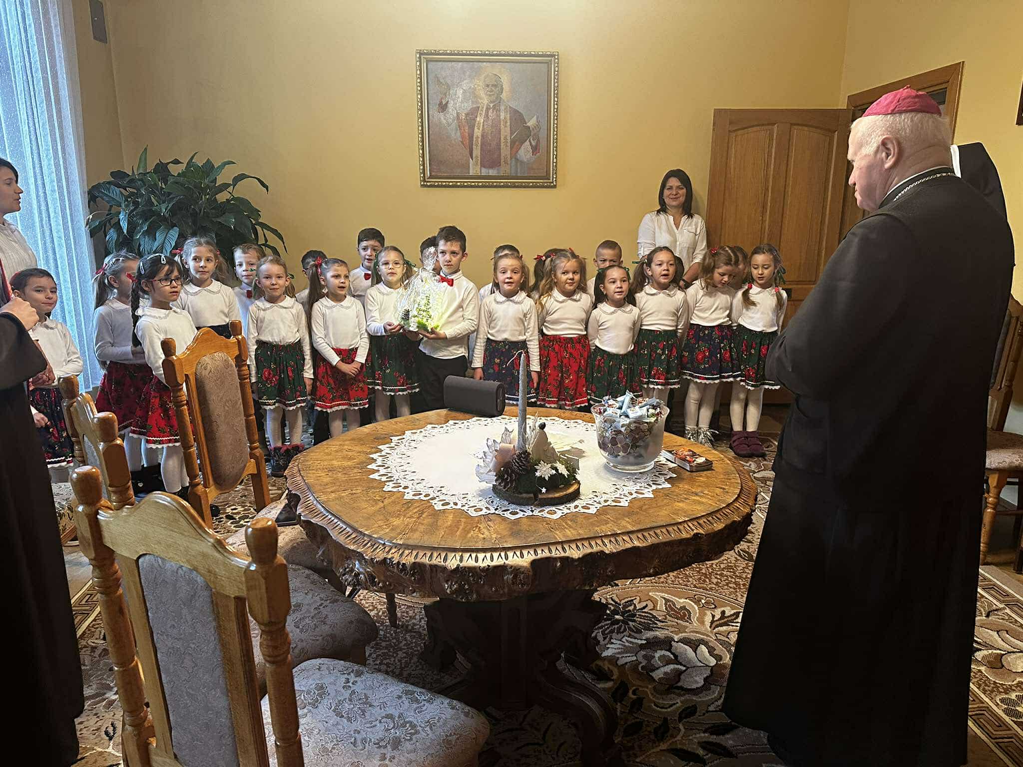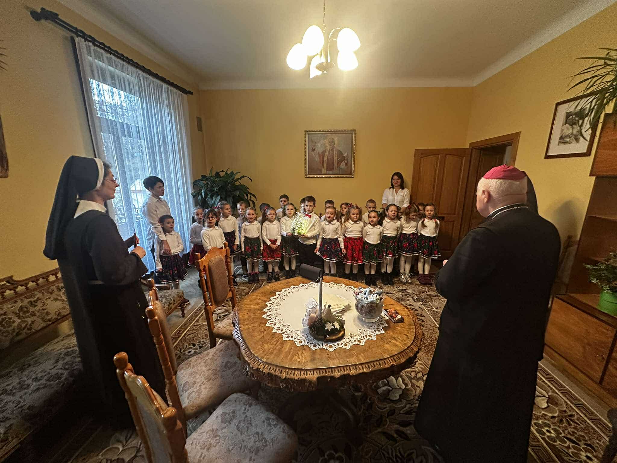 We wtorek, 17 grudnia 2024 r., dzieci z Publicznego Przedszkola Zgromadzenia Sióstr Felicjanek w Przemyślu przyszły ze świątecznymi życzeniami do Metropolity Przemyskiego. Spotkanie przepełnione śpiewem, wierszykami i życzeniami, było bardzo radosne.