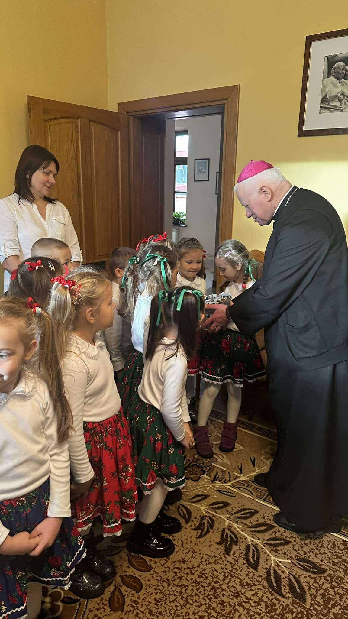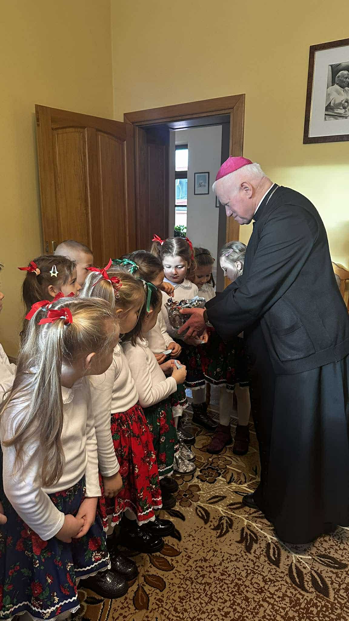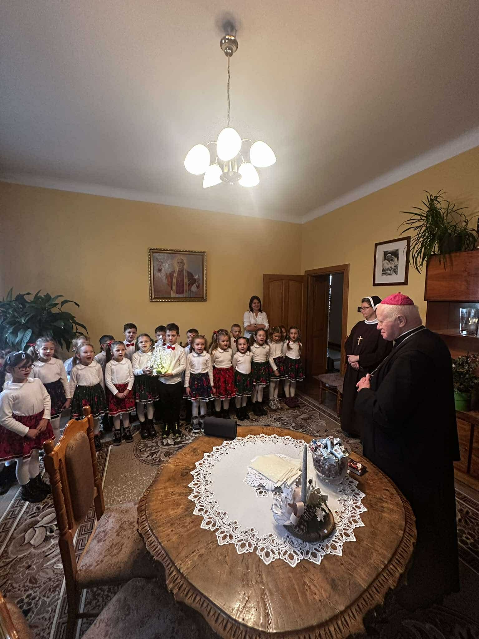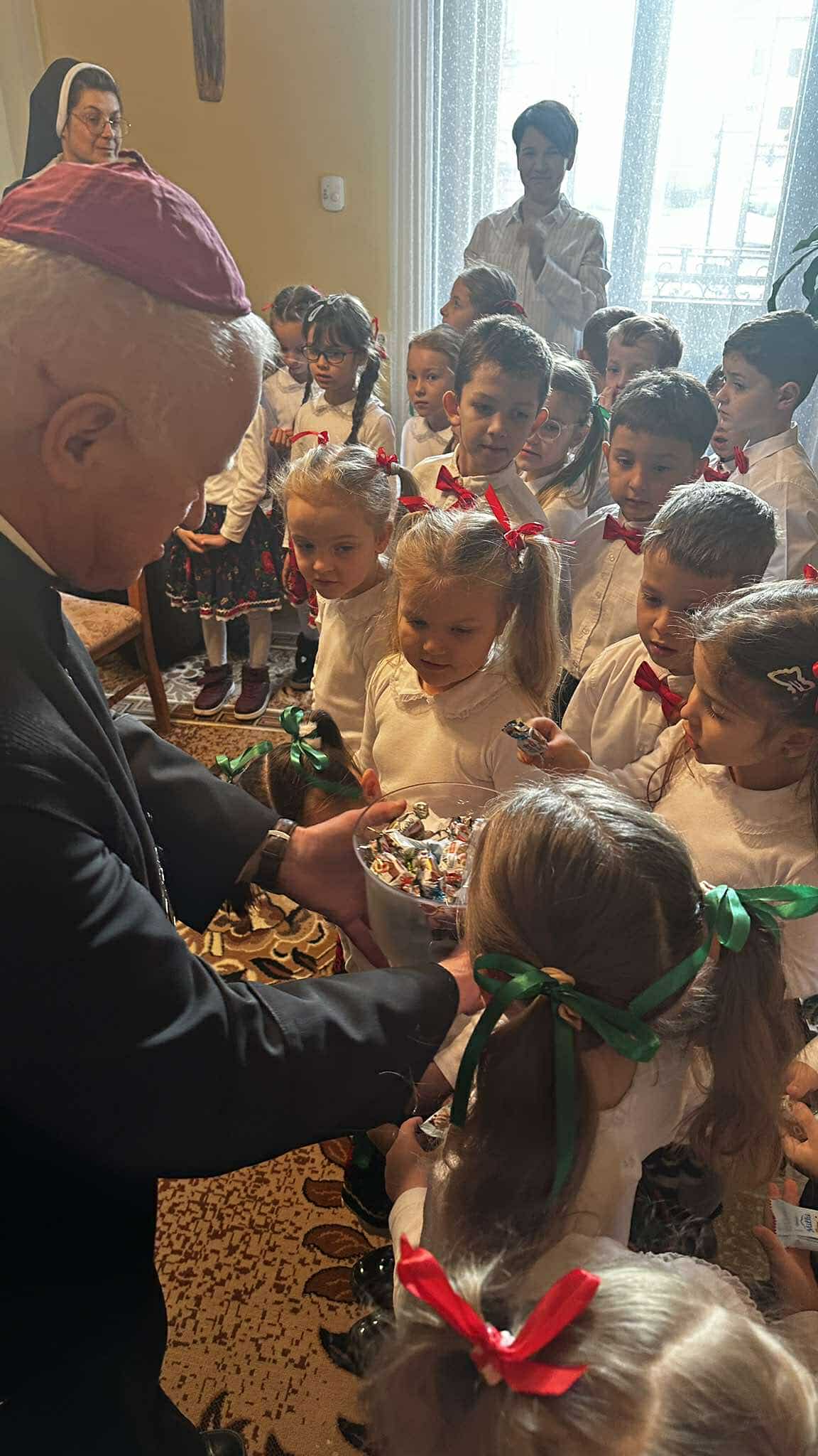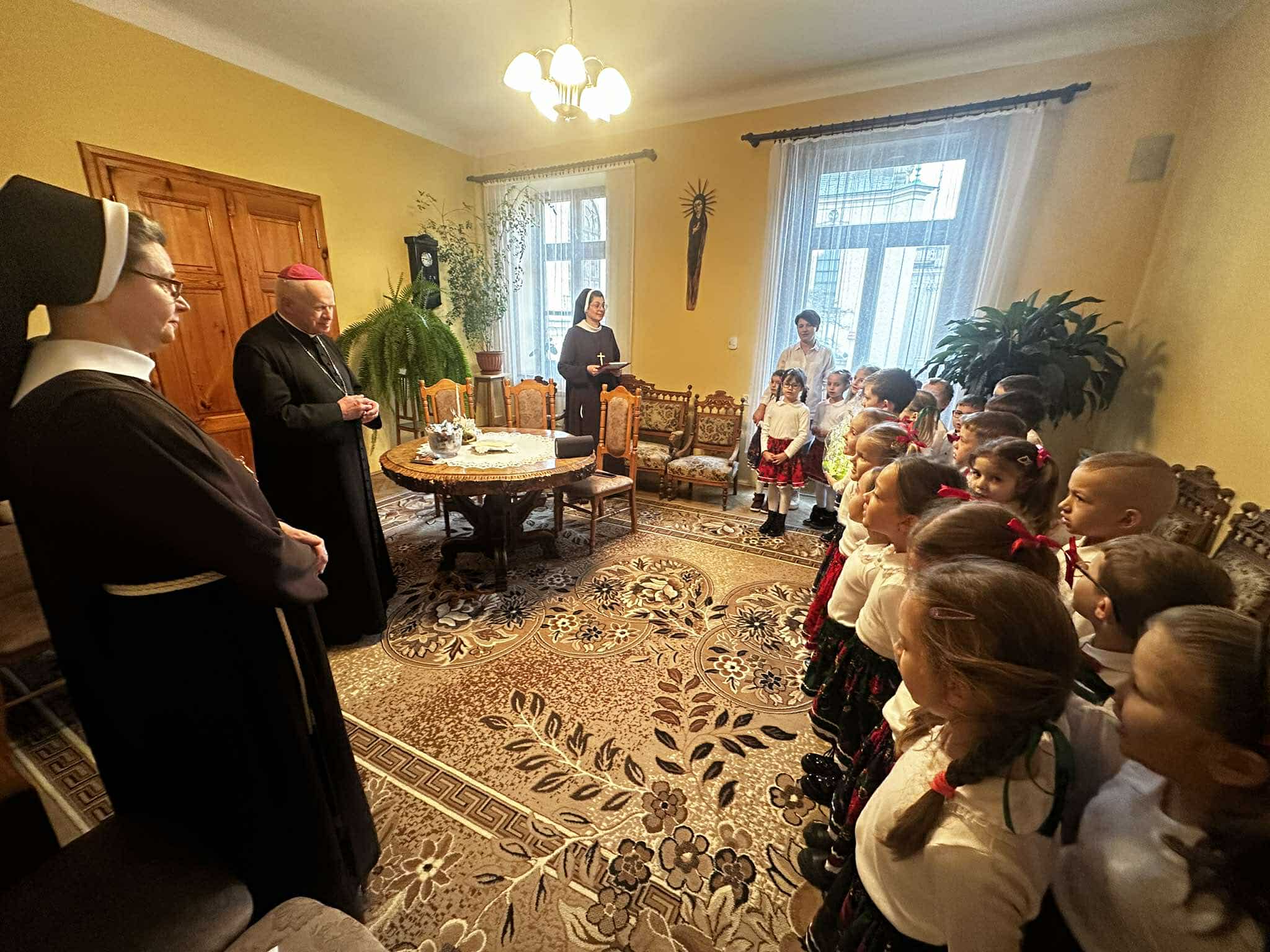We wtorek, 17 grudnia 2024 r., dzieci z Publicznego Przedszkola Zgromadzenia Sióstr Felicjanek w Przemyślu przyszły ze świątecznymi życzeniami do Metropolity Przemyskiego. Spotkanie przepełnione śpiewem, wierszykami i życzeniami, było bardzo radosne.