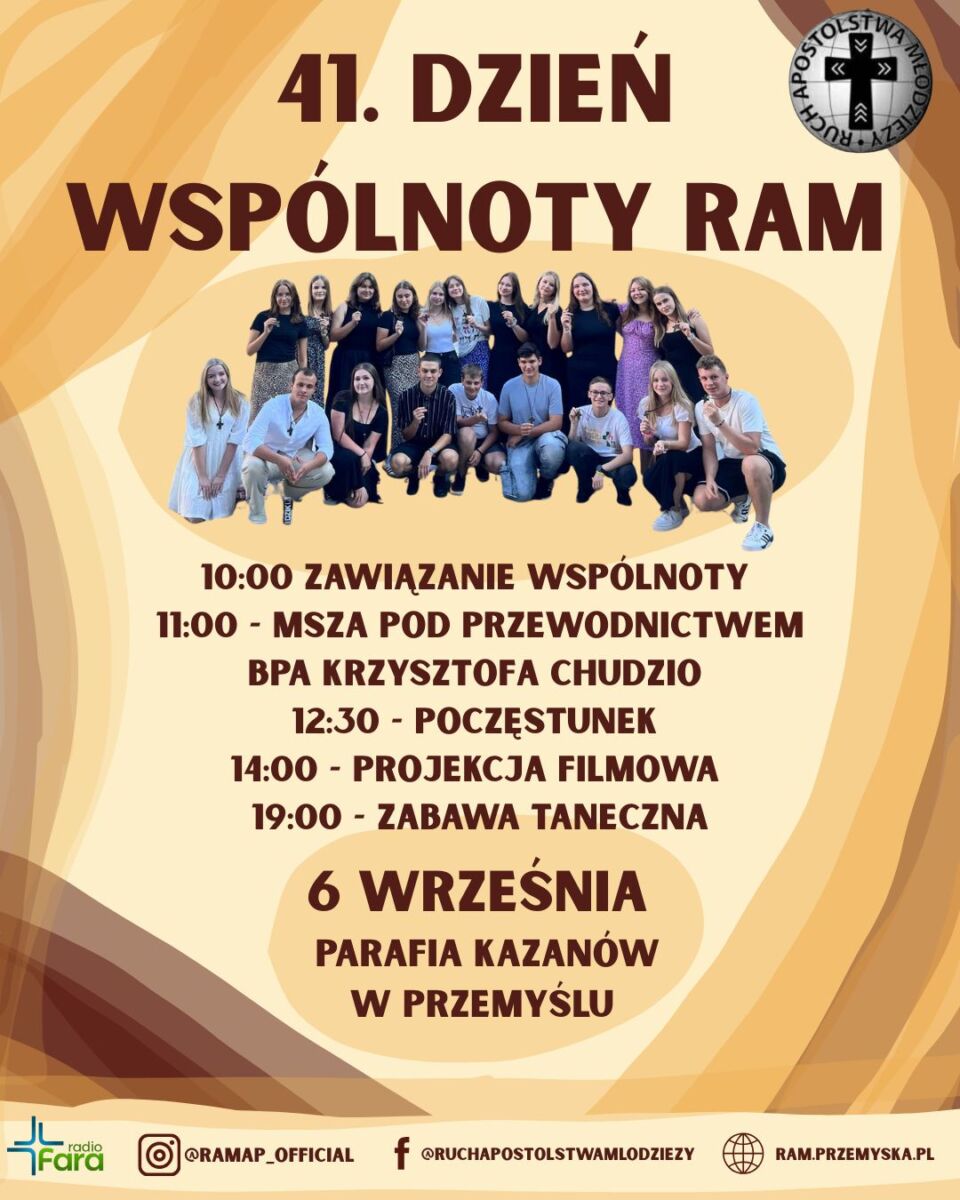Dzień Wspólnoty Ruch Apostolstwa Młodzieży Archidiecezji Przemyskiej odbędzie się w sobotę, 6 września 2025 r., w parafii pw. św. Benedykta, Cyryla i Metodego w Przemyślu (Osiedle Kazanów).