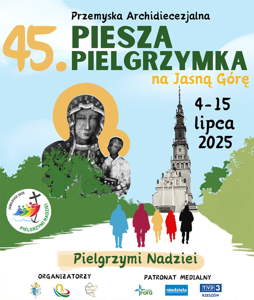 W piątek, 4 lipca 2025 r., rozpocznie się 45. Przemyska Archidiecezjalna Piesza Pielgrzymka na Jasną Górę, której towarzyszy w tym roku hasło: "Pielgrzymi nadziei". Pielgrzyma zakończy się tradycyjnie 15 lipca br., Eucharystią o godz. 11:00 w bazylice jasnogórskiej.