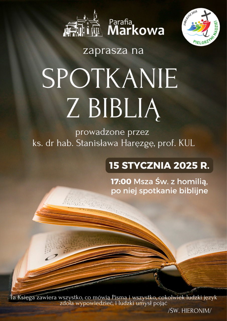 W Roku Jubileuszowym parafia pw. św. Doroty w Markowej, jako Kościół Jubileuszowy organizuje comiesięczne "Spotkania z Biblią", które będą poświęcone Pielgrzymom nadziei, przedstawionym na kartach Pisma Świętego Starego i Nowego Testamentu.