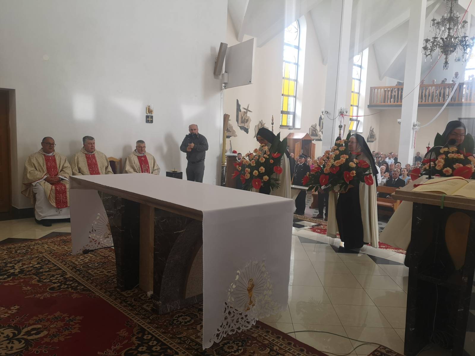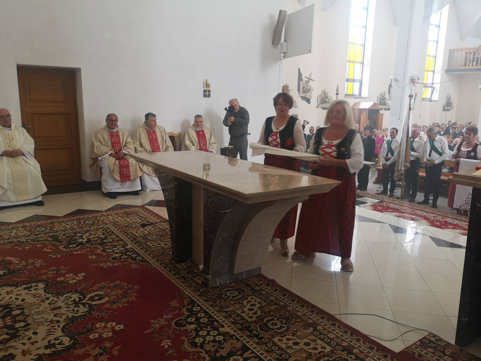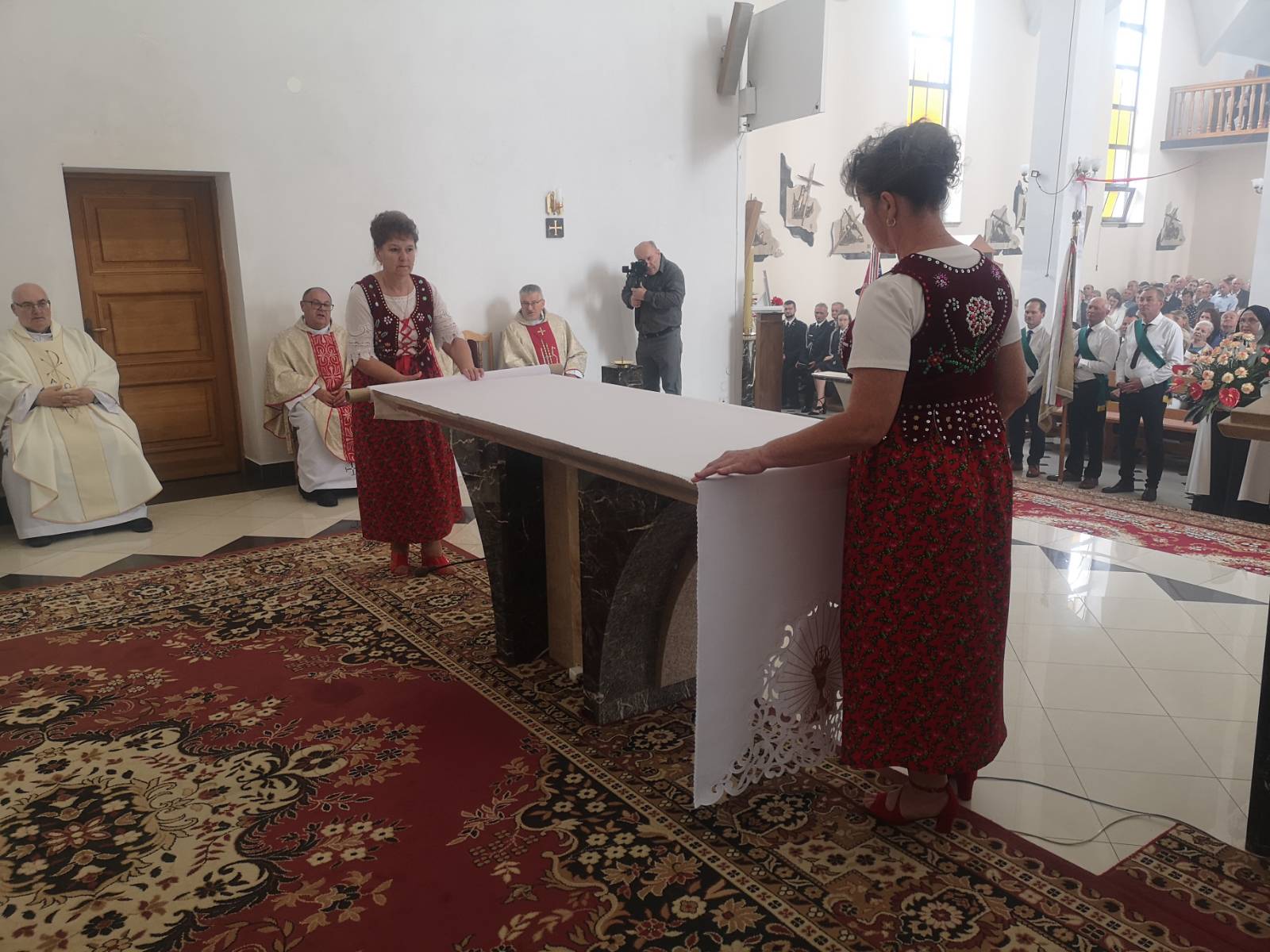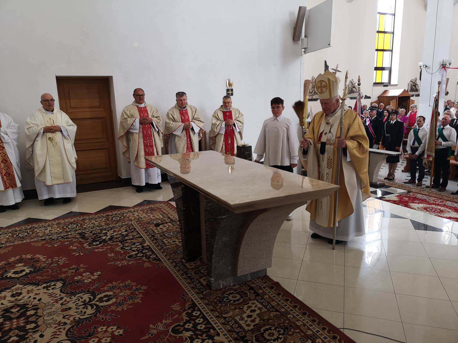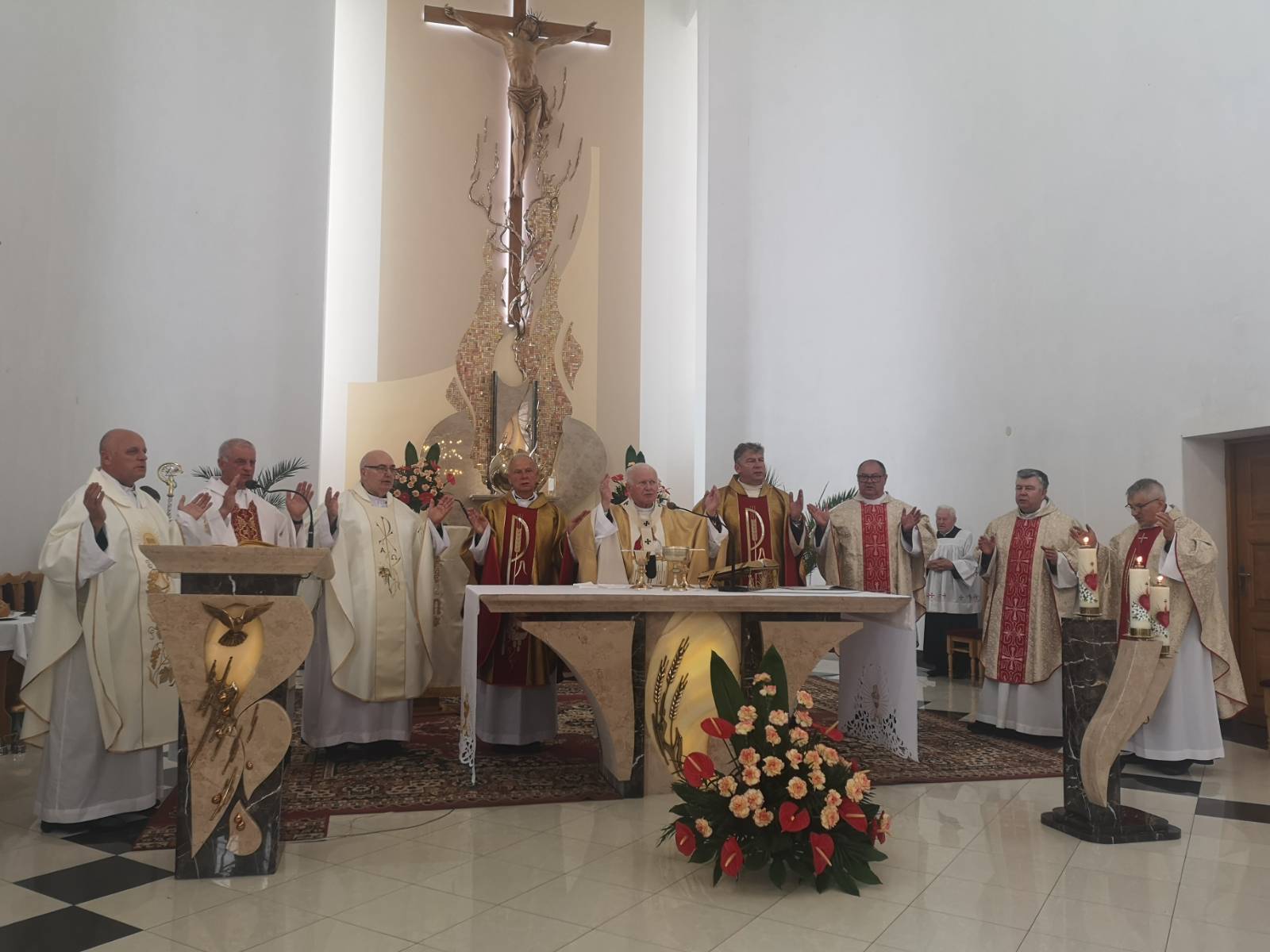 Na początku liturgii ksiądz proboszcz Marian Jagieła przybliżył zebranym historię parafii i podkreślił ogromne zaangażowanie mieszkańców w budowę i upiększanie świątyni, co zaowocowało piękną uroczystością, w której przebieg bardzo licznie zaangażowali się parafianie.