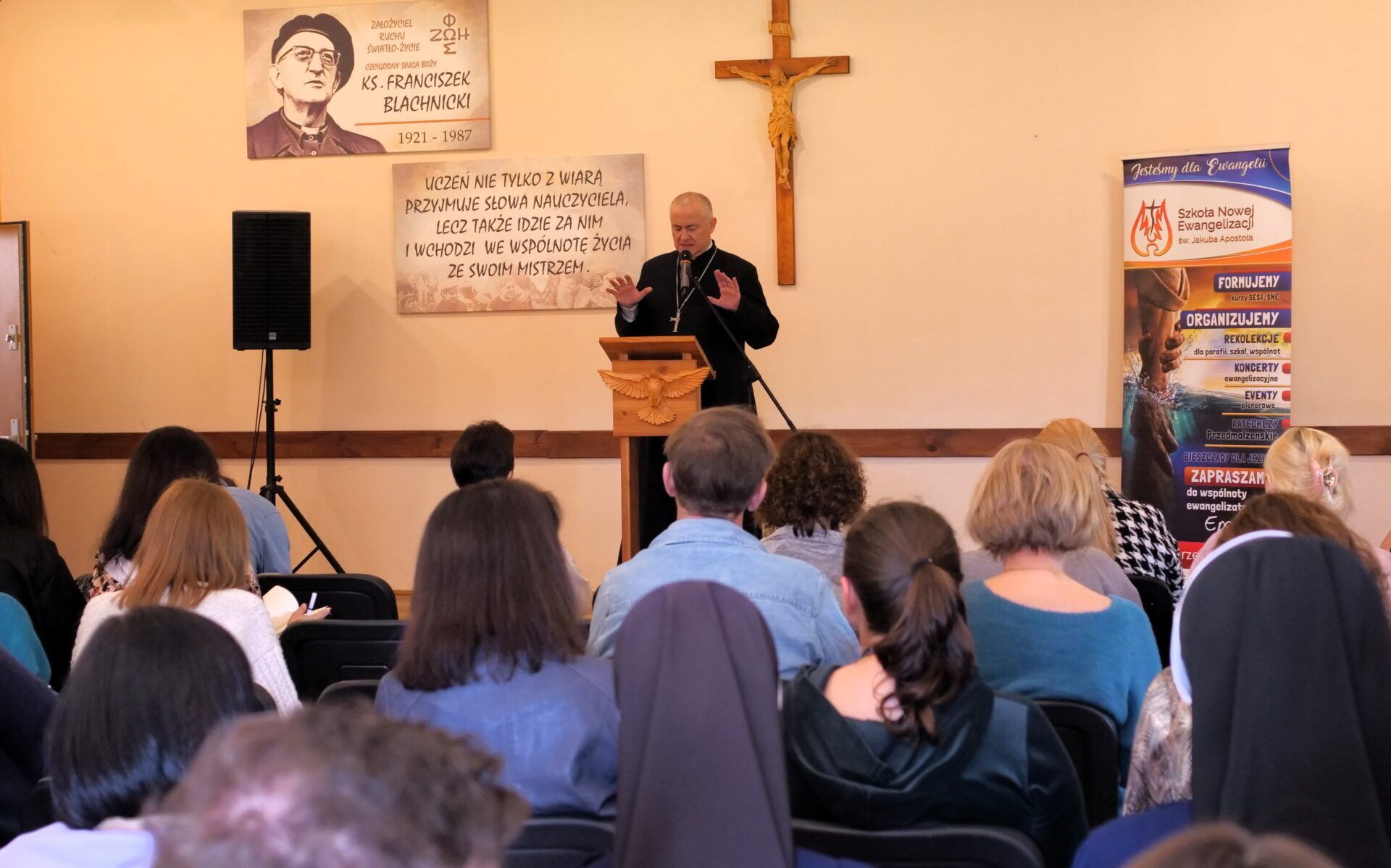 Wskazując na konieczność zaangażowania ewangelizacyjnego, biskup pomocniczy diecezji tarnowskiej, wyjaśniał także znaczenie nowej ewangelizacji: – czasem może nam się wydawać, że Ewangelia jest tylko opowieścią historyczną, która nie działa na te czasy. Możemy to odnieść do sytuacji Izraela za czasów Jezusa, kiedy On przychodzi do narodu religijnego, ale takiego, który nie przyjął Jego orędzia i być może tak też można to postrzegać w naszej rzeczywistości, że jesteśmy pobożnym, religijnym narodem, ale nie do końca znamy osobiście Jezusa. Nowa ewangelizacja właśnie na tym polega, żeby w tę pobożność, skądinąd piękną, także w kulturze bardzo mocno obecną, wpisać żywego Jezusa i przekazywać Go innym, żeby On żył naprawdę i przemieniał nasze serca, budował wspólnotę Kościoła, a przez to też taką społeczną wspólnotę, bo myślę, że zawsze w Polsce Kościół był tym, który buduje wspólnotę, a dzisiaj jawi się trochę inaczej niestety – mówił bp Ważny.