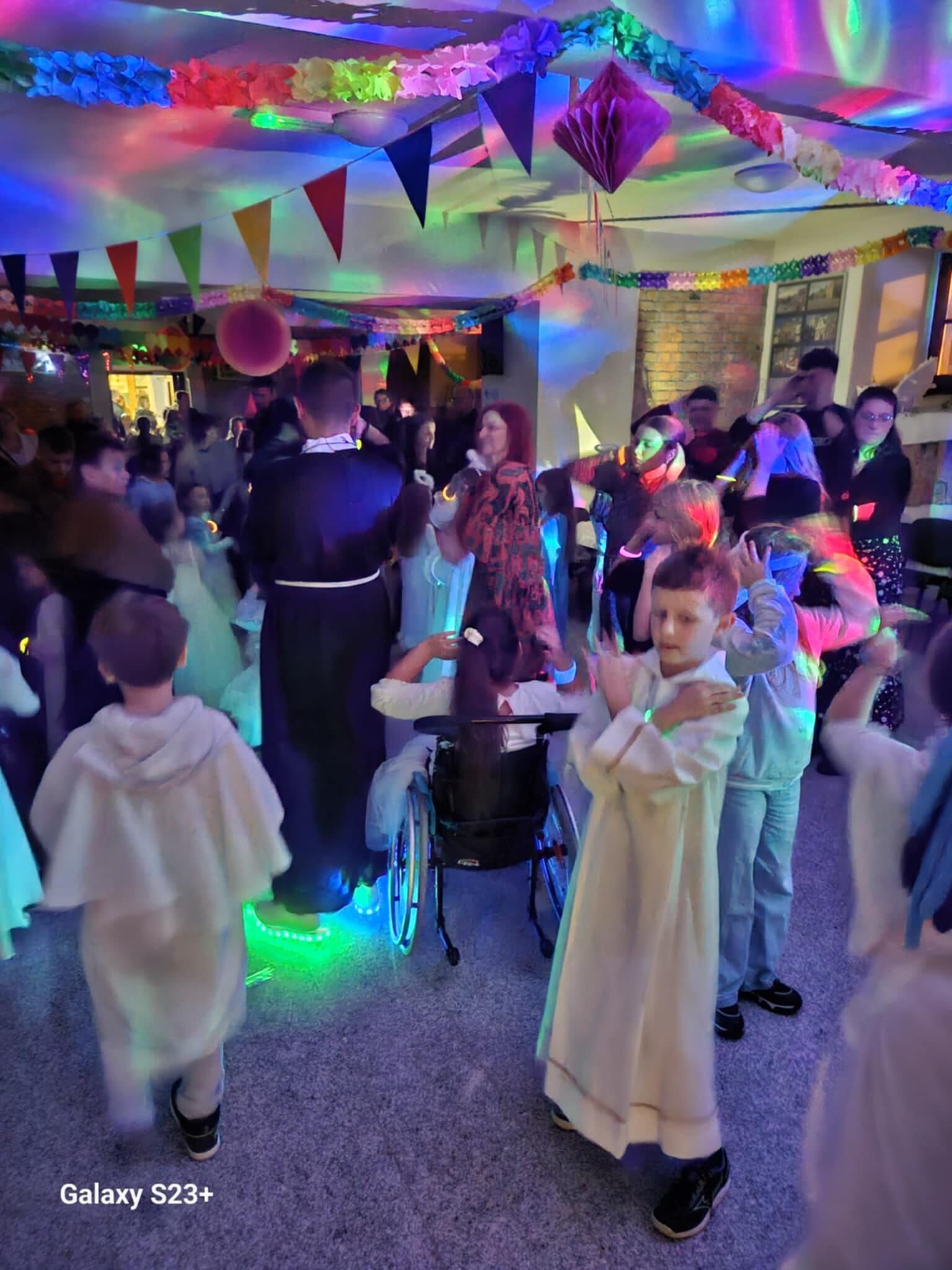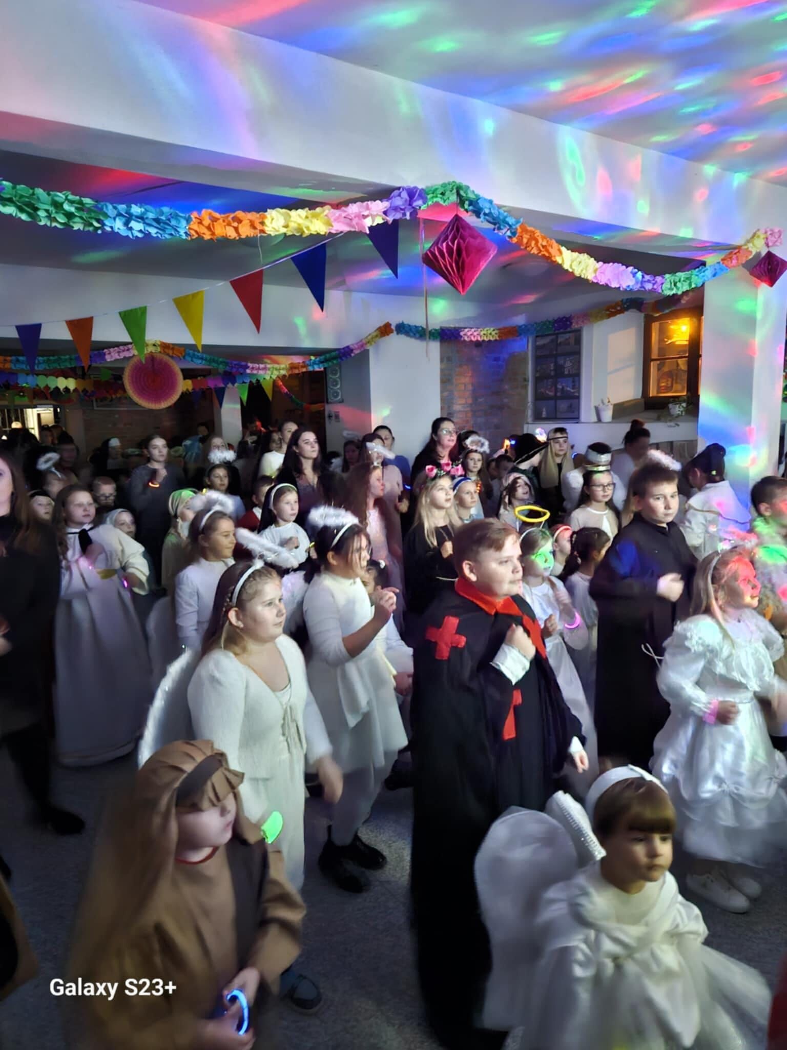 Po Mszy świętej przyszedł czas na oczekiwany przez wszystkich Bal , czyli radosne spotkanie w salce na plebanii, przepełnione uśmiechem, śpiewem, tańcami oraz słodkim poczęstunkiem.