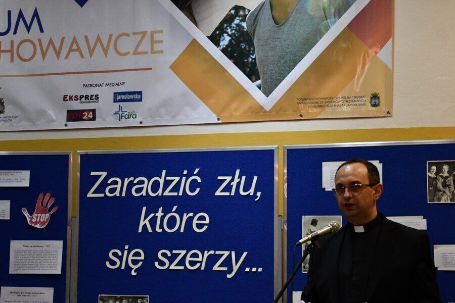 Dyrektor szkoły, wprowadzając zaproszonych gości, nauczycieli i uczniów w tematykę tegorocznego forum, wyjaśnił, że Anna Jenke, uważnie obserwując rzeczywistość, w której funkcjonowali jej uczniowie, umieściła w swoim duchowym pamiętniku 3 maja 1969 r. takie oto stwierdzenie: „Trzeba zaradzić wszelkim formom zła…”. Trzy miesiące później, Sługa Boża, zwróciła się do jarosławskich pedagogów i rodziców z następującym apelem: „W tej chwili jest w Polsce 1,5 miliona alkoholików, czyli 4 razy więcej niż przed wojną… Szerzy się też narkomania. To już nie «Zachód», ale nasza polska młodzież. Wpadają w to także dobrzy, najlepsi, którzy chcieli ratować rozbitych rówieśników. Lecimy w przepaść i to z dużym przyspieszeniem”. Okres dorastania – tłumaczył ks. dr Grzegorz Delmanowicz – to czas intensywnego rozwoju psychofizycznego, w którym młodzi ludzie stają przed szeregiem wyzwań i pokus. Dlatego pragniemy edukować naszych uczniów na temat ryzyka, jakie niesie za sobą kontakt z substancjami psychoaktywnymi. Badania dowodzą, że skuteczna profilaktyka może zmniejszyć ryzyko uzależnienia, a właściwe wsparcie rodziny i szkoły odgrywa w tym procesie kluczową rolę. Chcemy popatrzeć dziś na życie Sługi Bożej i razem z Nią uczyć tego, jak chronić swoje życie przez takimi zagrożeniami, jak alkoholizm, nikotynizm i narkomania. Wraz z Anną Jenke pragniemy odkryć wartość przyrzeczenia o zachowaniu abstynencji od alkoholu, papierosów, czy narkotyków, które składaliśmy przed przystąpieniem do Pierwszej Komunii. Razem z Patronką szkoły chcemy rozważyć głębię harcerskiego ślubowania, w myśl którego Sługa Boża podejmowała wstrzemięźliwość od tytoniu, napojów alkoholowych i narkotyków, widziała w abstynencji pomoc w panowaniu nad słabościami oraz ważny aspekt walki z nałogami.