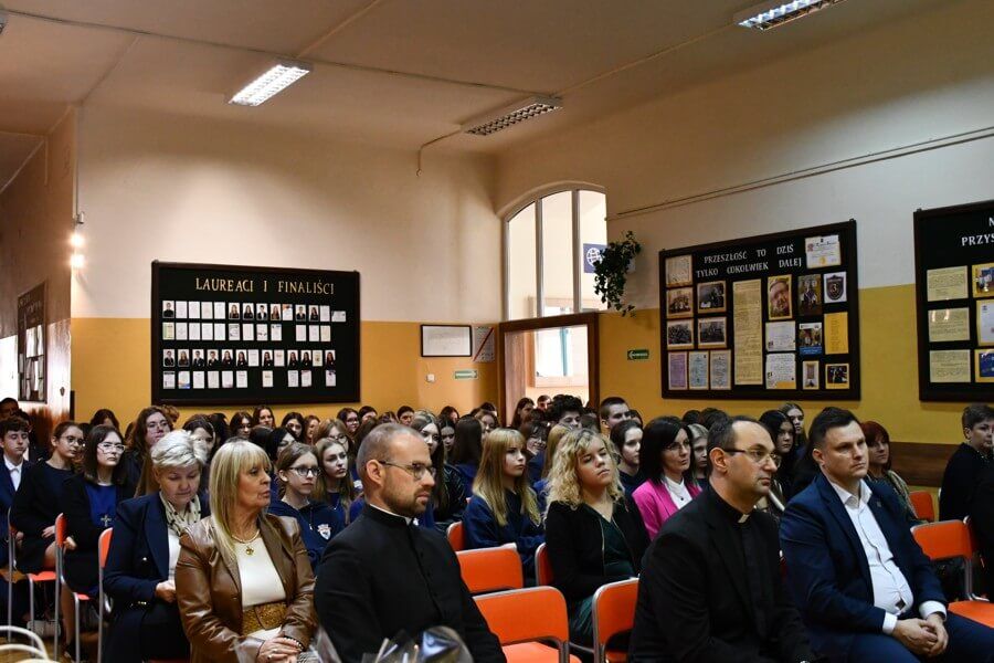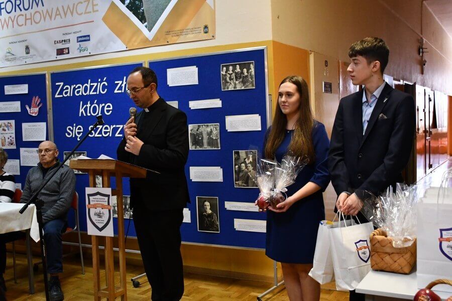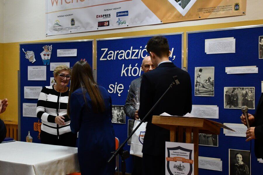 Ostatnim akordem wydarzenia zorganizowanego w jarosławskim „Katoliku” było ogłoszenie wyników Konkursu poetyckiego dla uczniów klas VII-VIII szkół podstawowych powiatu jarosławskiego, przeworskiego i łańcuckiego, który miał przybliżyć uczniom szkół podstawowych postać Sługi Bożej Anny Jenke oraz zachęcić do podzielenia się refleksją na temat współczesnych, dostrzeganych niebezpieczeństw młodego człowieka. Jego organizacji podjęła się nauczycielka języka polskiego mgr Beata Bałendo. Pierwsze miejsce na podium zostało przyznane Mai Surmiak – uczennicy Szkoły Podstawowej im. Ignacego Łukasiewicza w Cieszacinie Wielkim za wiersz „Jak zaradzić złu, które się szerzy?”. Miejsce drugie zajął Daniel Pieniążek – uczeń Szkoły Podstawowej im. św. Brata Alberta w Żurawiczkach za wiersz „Rycerz bez miecza”. Trzecie miejsce uzyskała Maja Łatka – uczennica Szkoły Podstawowej im. Ignacego Łukasiewicza w Cieszacinie Wielkim za wiersz „Jak zaradzić złu?”. Komisja konkursowa wyróżniła następujące osoby: Szymona Prochownika – ucznia Szkoły Podstawowej im. Jana Pawła II w Rokietnicy za wiersz „Prośba”, Nikolę Poleacek – uczennicę Szkoły Podstawowej im. Jana Pawła II w Rokietnicy za wiersz „Promienie dobra”, Krzysztofa Adamczaka – ucznia Szkoły Podstawowej im. św. Brata Alberta w Studzianie za wiersz „Rysopis dobra i zła”. Dyrektor szkoły wręczył nagrody laureatom i wyróżnionym uczniom.