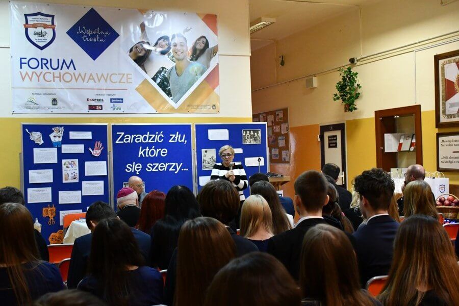 W piątek, 6 grudnia 2024 r. w Publicznym Katolickim Liceum Ogólnokształcącym im. Anny Jenke w Jarosławiu, odbyło się VI Forum Wychowawcze. W tym wyjątkowym wydarzeniu, które już na stałe wpisało w harmonogram pracy jarosławskiego „Katolika”, wzięli udział abp Adam Szal – metropolita przemyski, proboszcz Parafii Rzymskokatolickiej pw. Bożego Ciała przy Kolegiacie w Jarosławiu ks. prał. Marian Bocho, Burmistrz Miasta Jarosławia mgr inż. Marcin Nazarewicz oraz zaproszeni prelegenci Grażyna Buła i Piotr Rostecki.