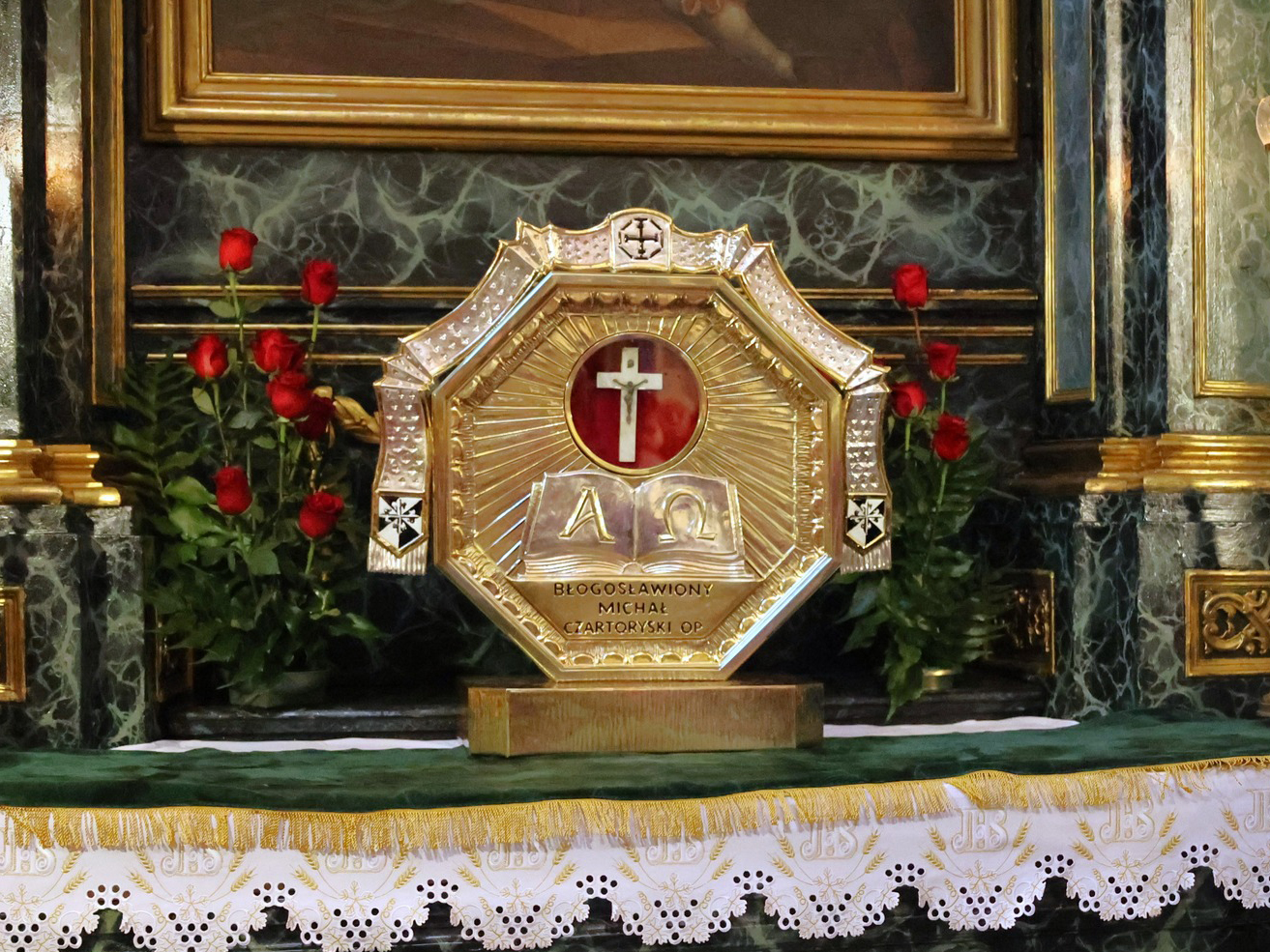 Przygotowany na tę uroczystość relikwiarz ma kształt ośmioboku oplecionego stułą. W środku znajduje się alabastrowy krzyż wykonany własnoręcznie przez bł. Michała Czartoryskiego.