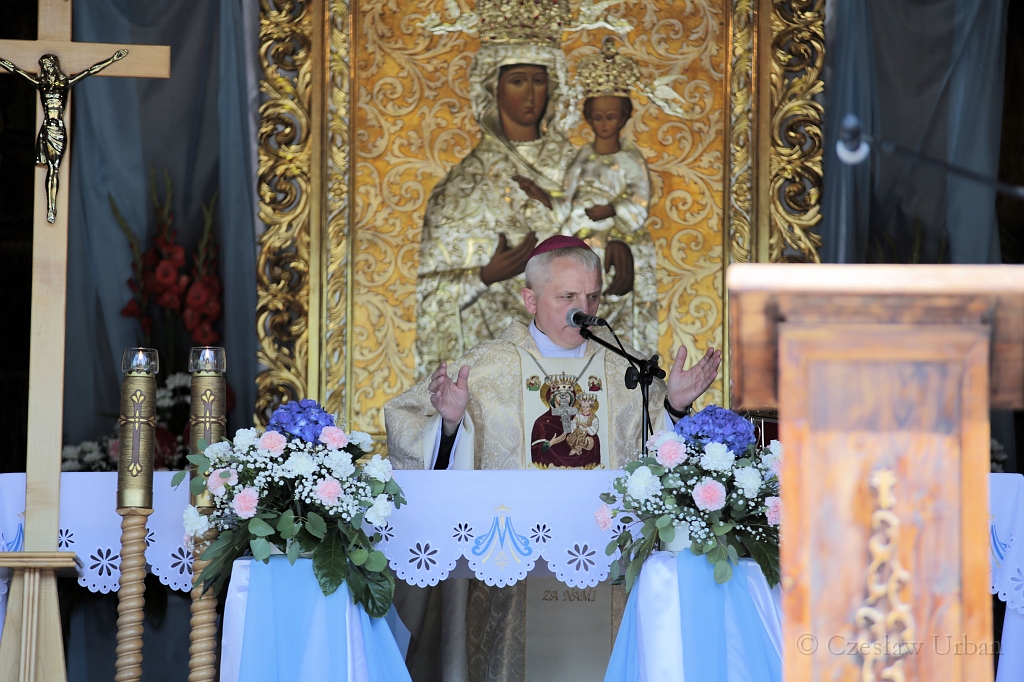Podczas homilii bp Stanisław Jamrozek zwrócił uwagę, że sanktuaria, do których tak licznie i często pielgrzymujemy, są miejscami, gdzie Bóg szczególnie objawia swoją obecność. – Tutaj oręduje za nami też Matka Najświętsza, a od dzisiaj szczególnie będzie też orędować św. Michał Archanioł – mówił hierarcha. – Dzisiaj mamy tego potężnego orędownika tutaj na tym miejscu, to jest św. Michała Archanioła, który razem z Matką Najświętszą, będzie jeszcze mocniej orędować, żebyśmy pięknie przeżywali nasze codzienne życie, żeby też nas chronili przed złem tego świata, bo zła jest dużo. To zło pochodzi od złego, ale kiedy będziemy mocni Bogiem, kiedy ja będę mocny, to potrafię się oprzeć nawałnicą tego świata.