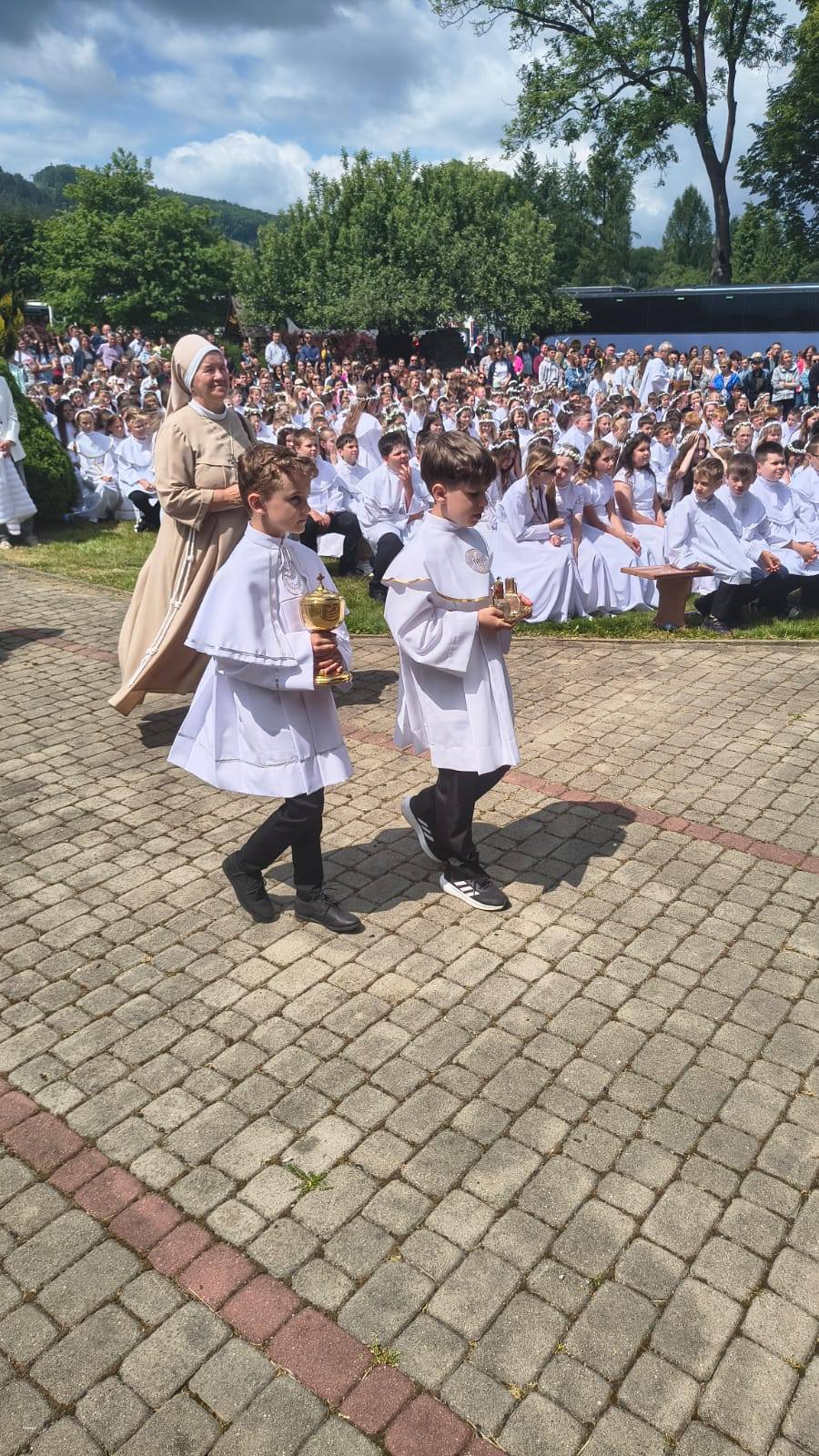 Druga część IV Archidiecezjalnej Pielgrzymki Dzieci Komunijnych, Rocznicowych i Eucharystycznego Ruchu Młodych miała miejsce na placu obok sanktuarium, gdzie przygotowano dla uczestników różne atrakcje: konkursy, gry, zabawy z nagrodami, oraz malowanie twarzy prowadzone przez profesjonalnych animatorów zabaw. Ustawiona była videobudka 360, dmuchańce, zjeżdżalnie, plac zabaw, tor przeszkód. Dzieci mogły obejrzeć wyczyny rowerowe zaprezentowane przez Krystiana Herbę – wielokrotnego medalistę Mistrzostw Polski w trialu rowerowym i uczestnika programu „Mam Talent”. Wystąpił także regionalny zespół „Bandanki” oraz wokaliści Ustrzyckiego Domu Kultury. Wyjątkowe spotkanie i warsztaty TikTokowe poprowadził ks. Sebastian Picur. Przy okazji na placu pojawił się także namiot edukacyjny Bieszczadzkiego Parku Narodowego i Nadleśnictwa Ustrzyki Dolne, zorganizowano pokazy pojazdów i sprzętu służb mundurowych oraz pokazy pierwszej pomocy przedmedycznej.