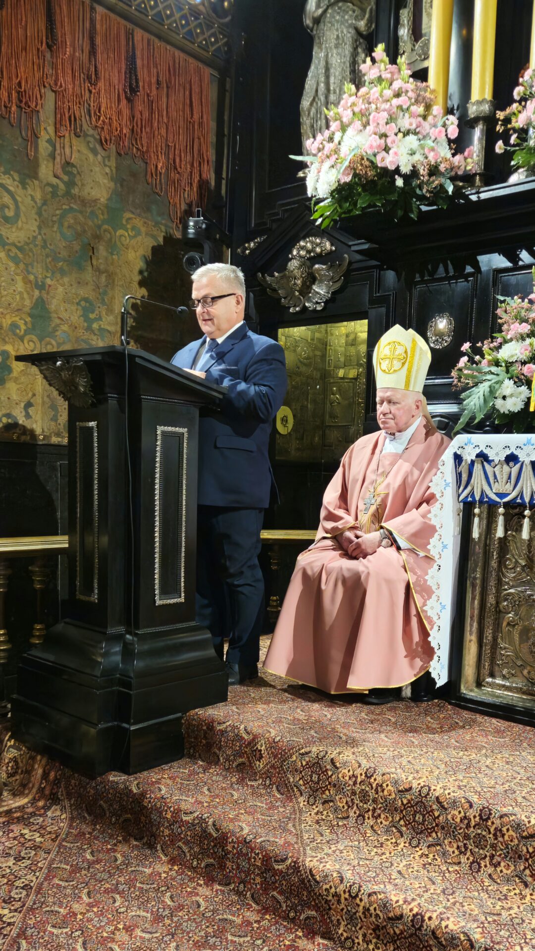 W słowie wstępnym metropolita przemyski przypomniał, że dokładnie 24 września 2023 r. na Jasnej Górze rozpoczęła się ogólnopolska peregrynacja relikwii bł. Rodziny Ulmów z Markowej. – Można powiedzieć, że dzisiaj historia zatoczyła koło, bo te relikwie, które wędrowały p całej naszej Ojczyźnie, w każdej diecezji były przez mniej więcej tydzień, wracają tutaj na Jasną Górę, aby oddawać cześć błogosławionym męczennikom – mówił hierarcha. – Wracają tu po to, by te relikwie przypominały nam wszystkim o tym, że jesteśmy powołani do świętości – podkreślił arcybiskup. – Módlmy się przy tych relikwiach o kanonizację Rodziny Ulmów, ale także o to, aby nasze wspólnoty rodzinne, parafialne, zakonne, były mocne wiarą, nadzieją i miłością. Módlmy się o to wszystko pamiętając, że Pan Bóg wzywa nas wszystkich do ofiarnej miłości – dodał i na ręce ojca kustosza przekazał relikwiarz zawierający relikwie błogosławionych z Markowej.