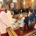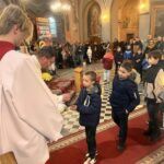 W II niedzielę adwentu, 8 grudnia 2024 r., podczas Mszy świętej o godz. 12:30 dzieci klas trzecich szkoły podstawowej, które przygotowują się do sakramentu I Komunii Świętej otrzymały medaliki z wizerunkiem Matki Bożej.