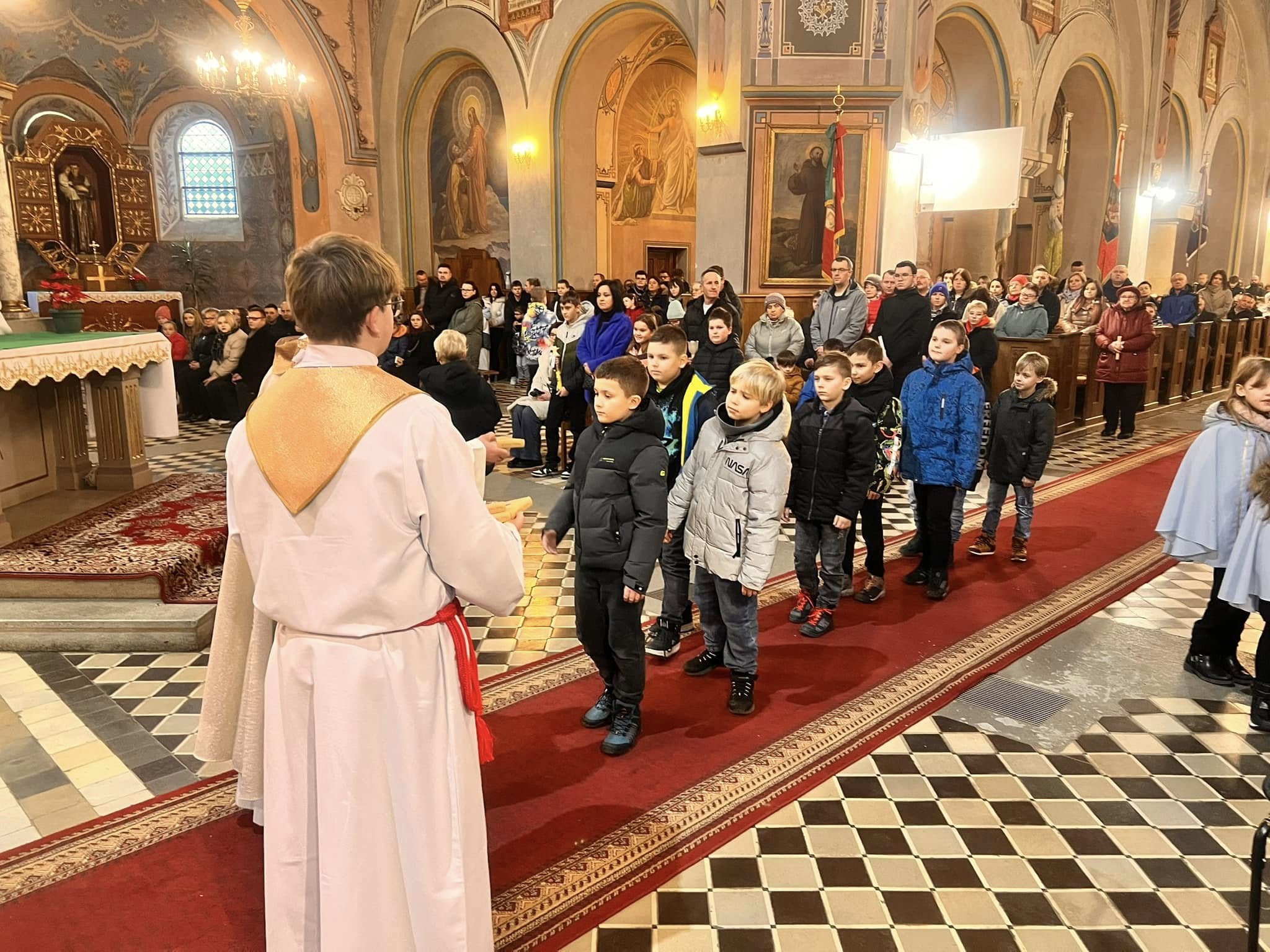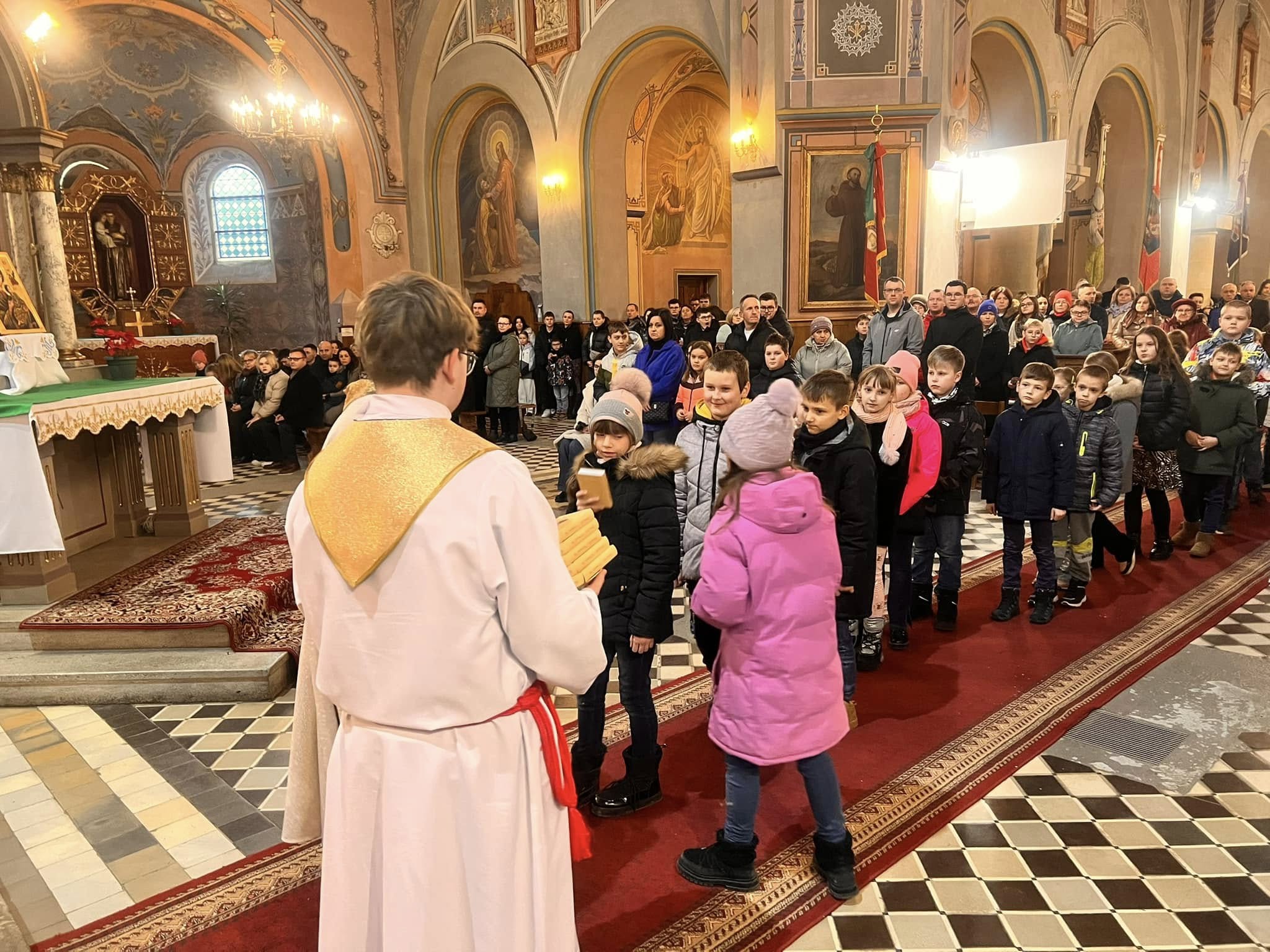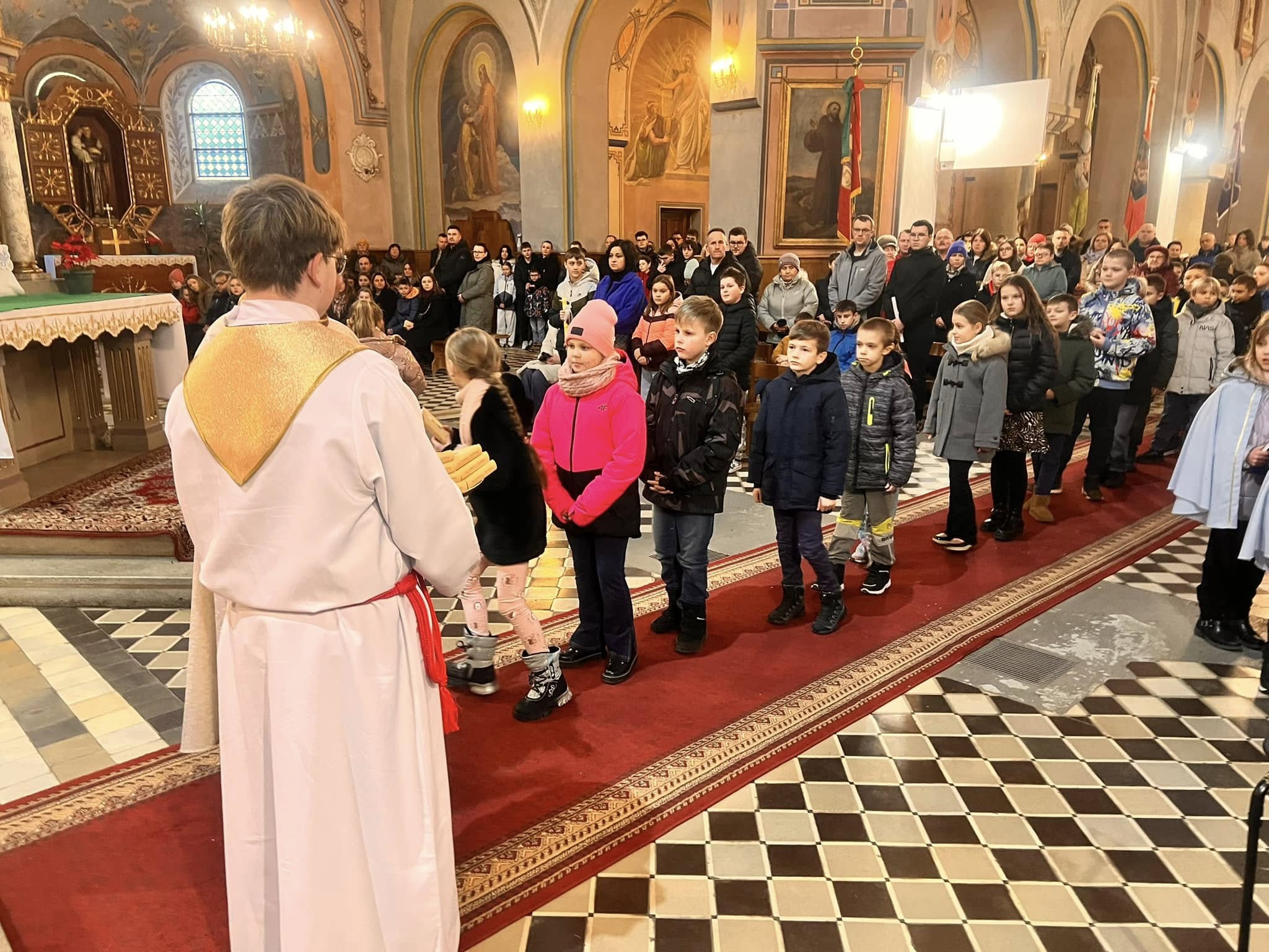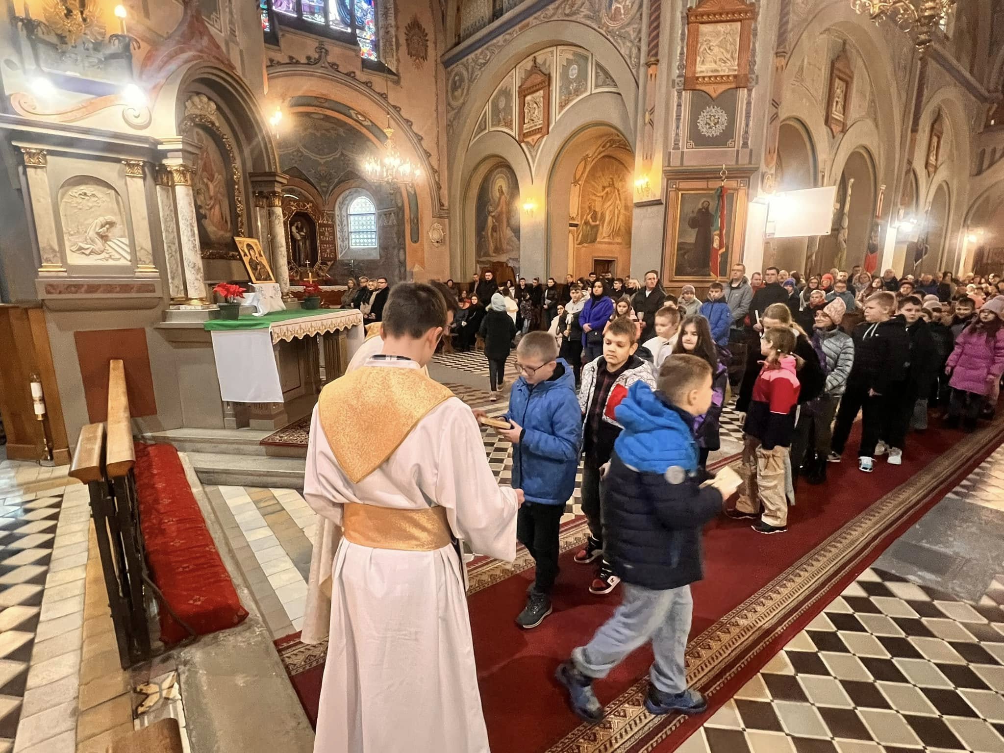 W Święto Ofiarowania Pańskiego, 2 lutego 2025 r., dzieci klas trzecich szkoły podstawowej przygotowujące się do uroczystości Pierwszej Komunii Świętej w parafii pw. św. Antoniego Padewskiego w Jedliczu otrzymały modlitewniki.