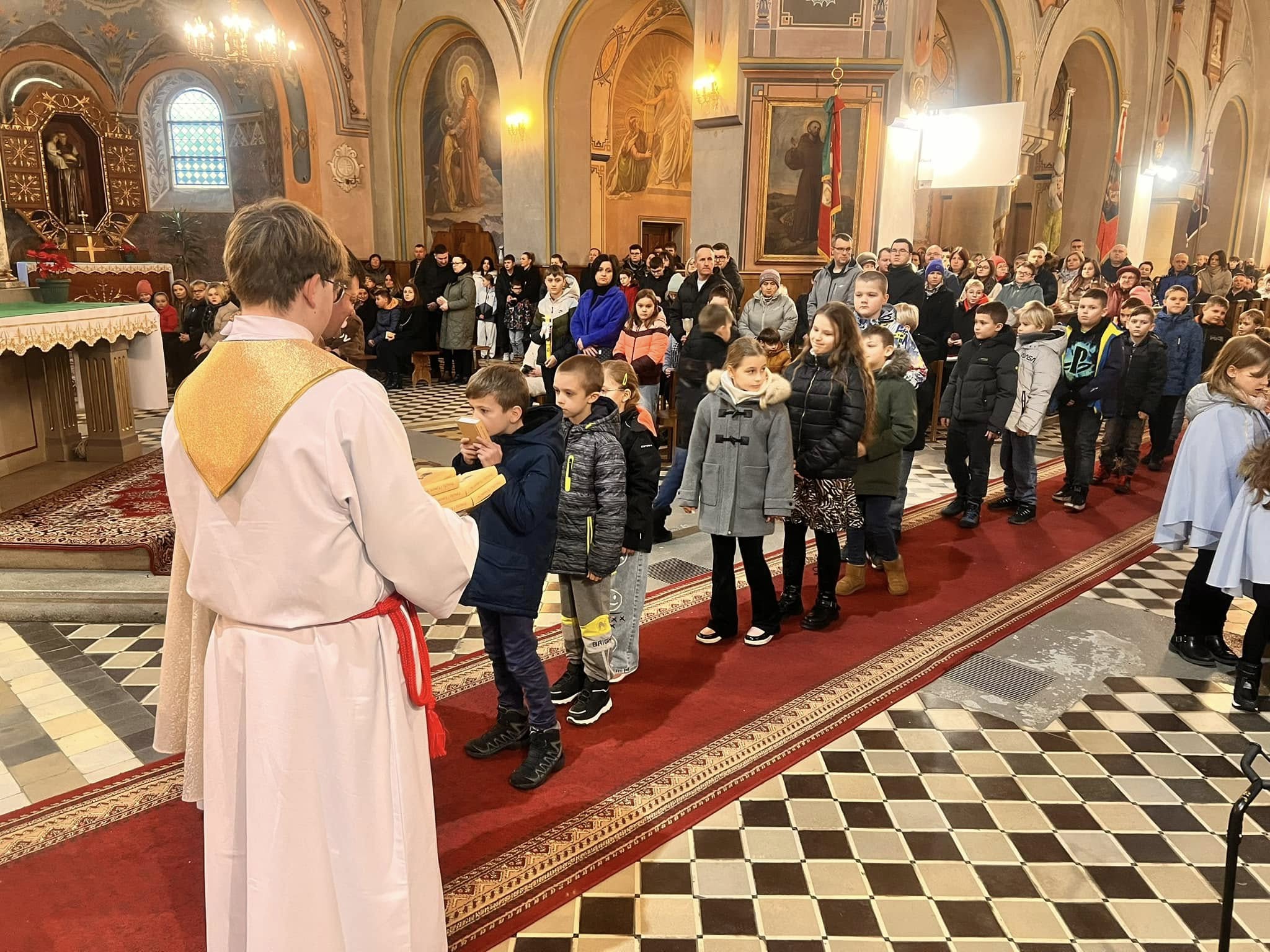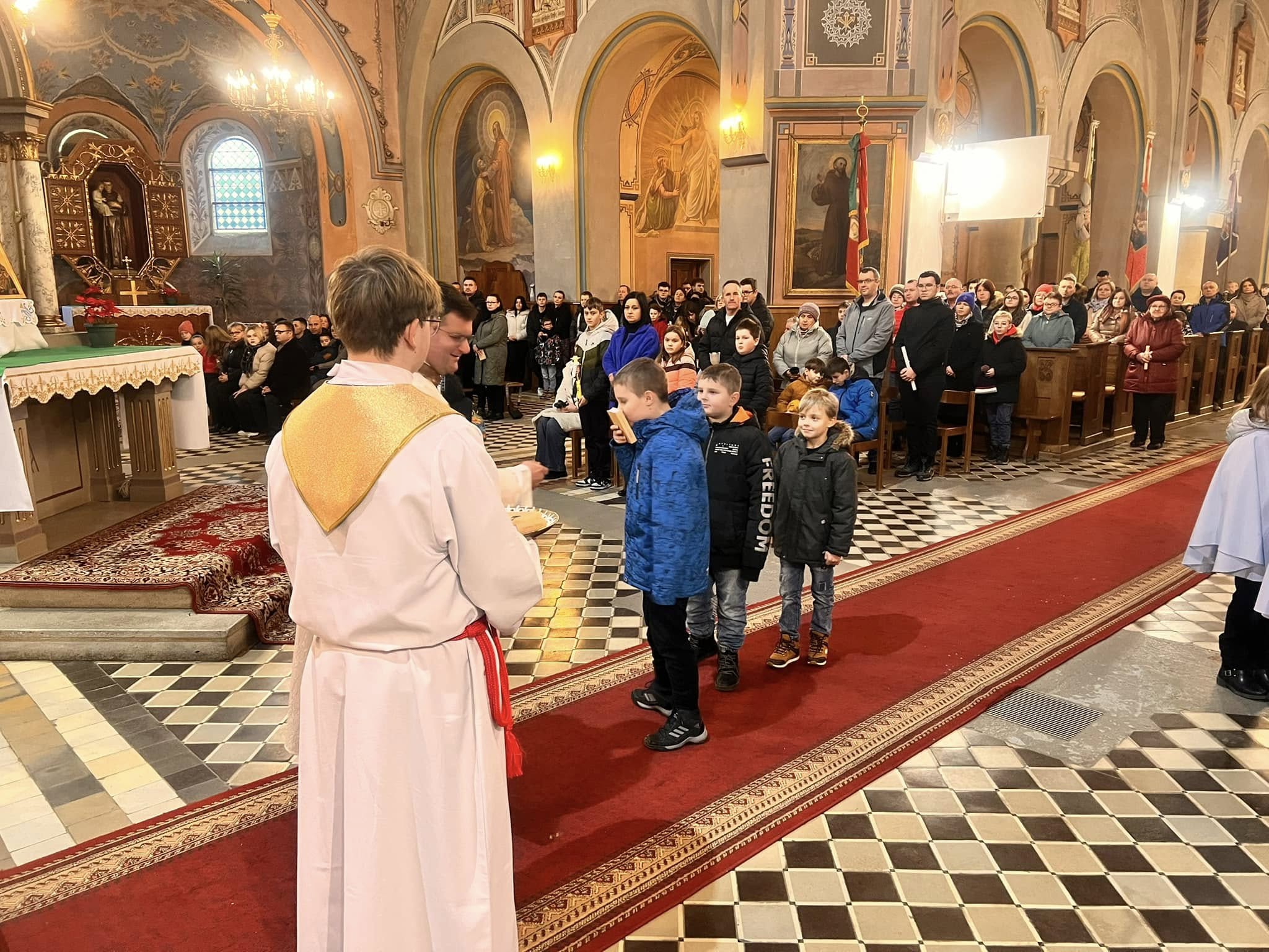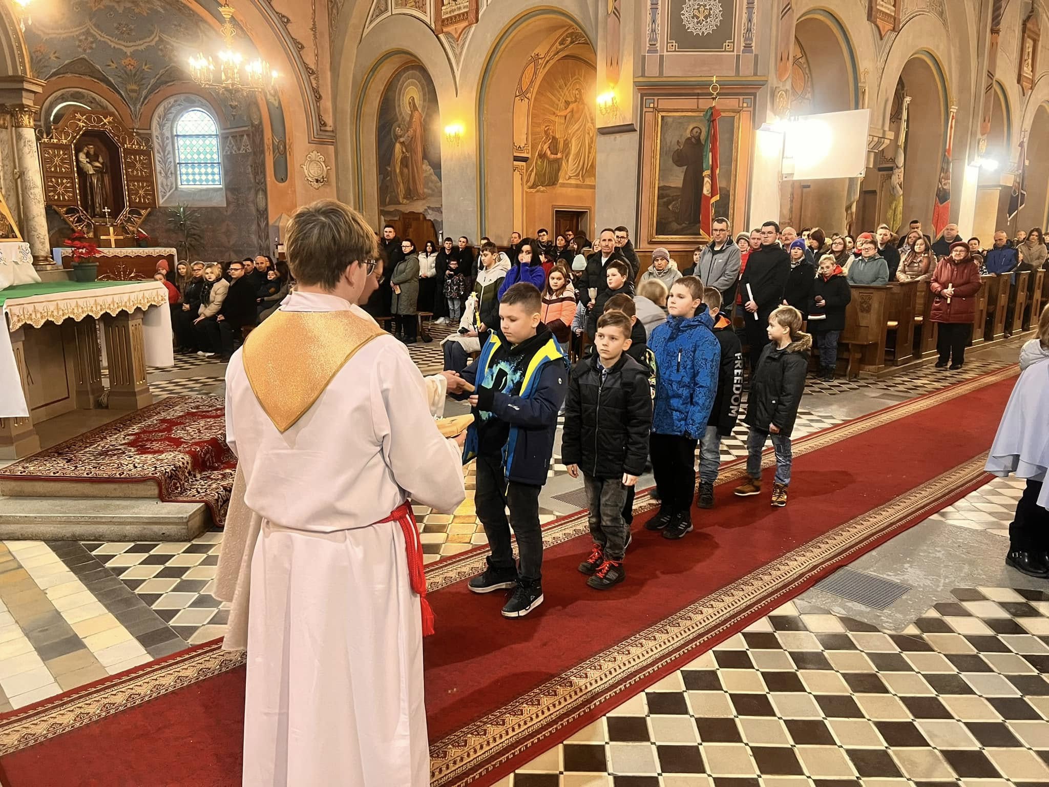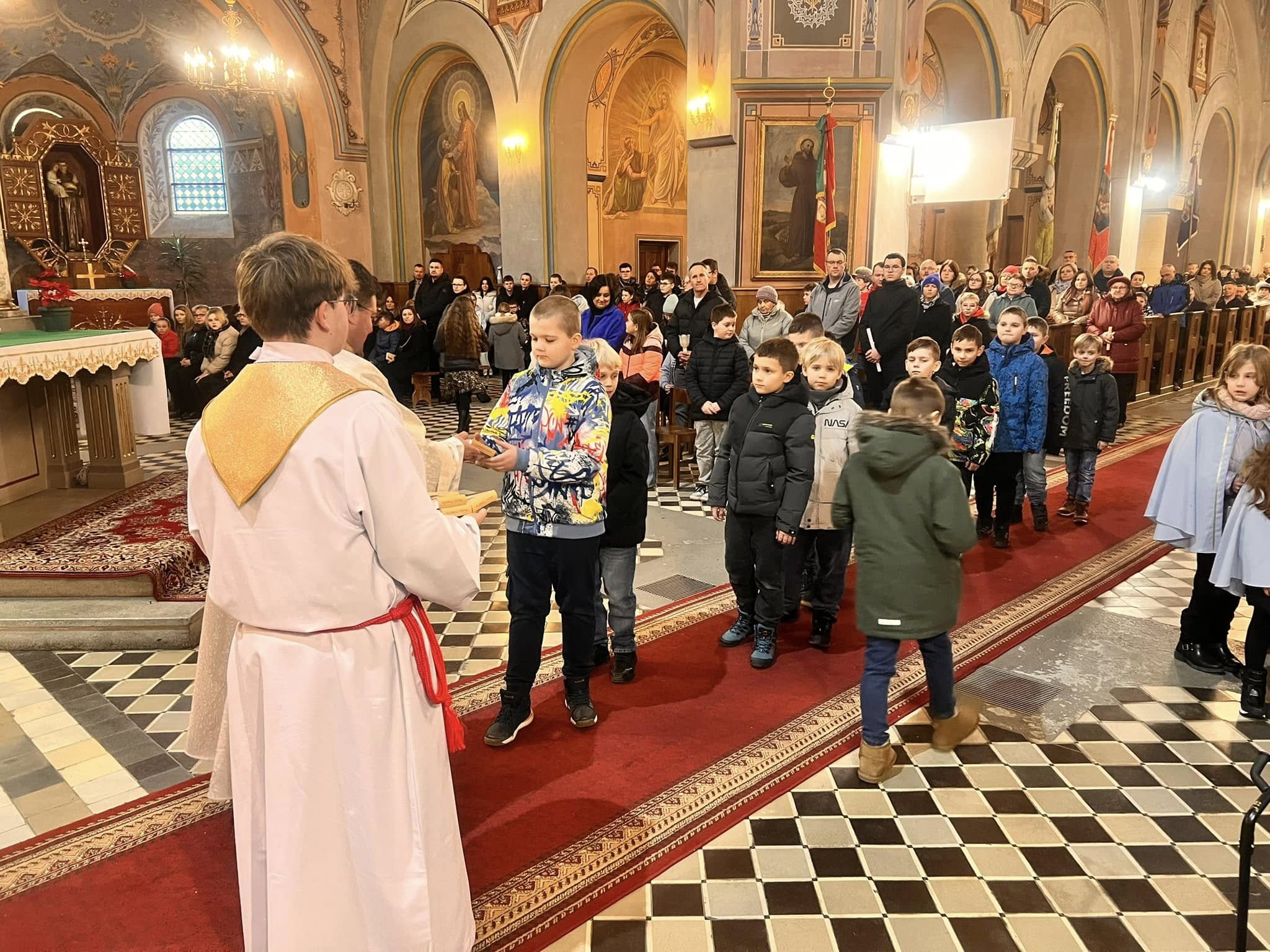 W Święto Ofiarowania Pańskiego, 2 lutego 2025 r., dzieci klas trzecich szkoły podstawowej przygotowujące się do uroczystości Pierwszej Komunii Świętej w parafii pw. św. Antoniego Padewskiego w Jedliczu otrzymały modlitewniki.