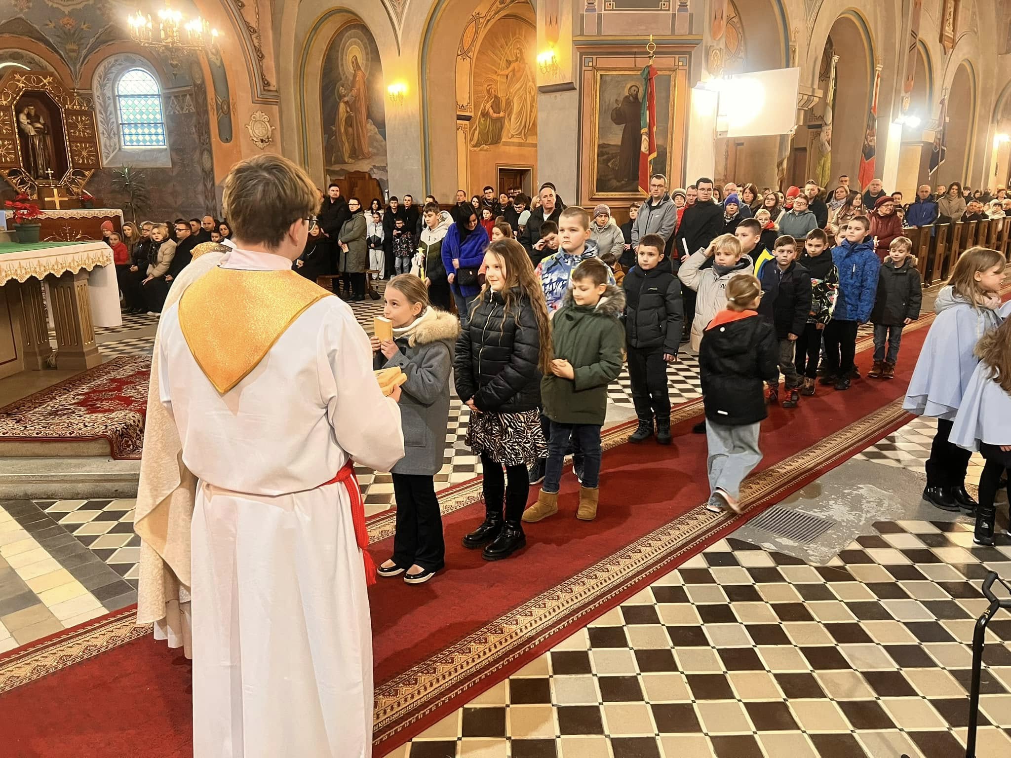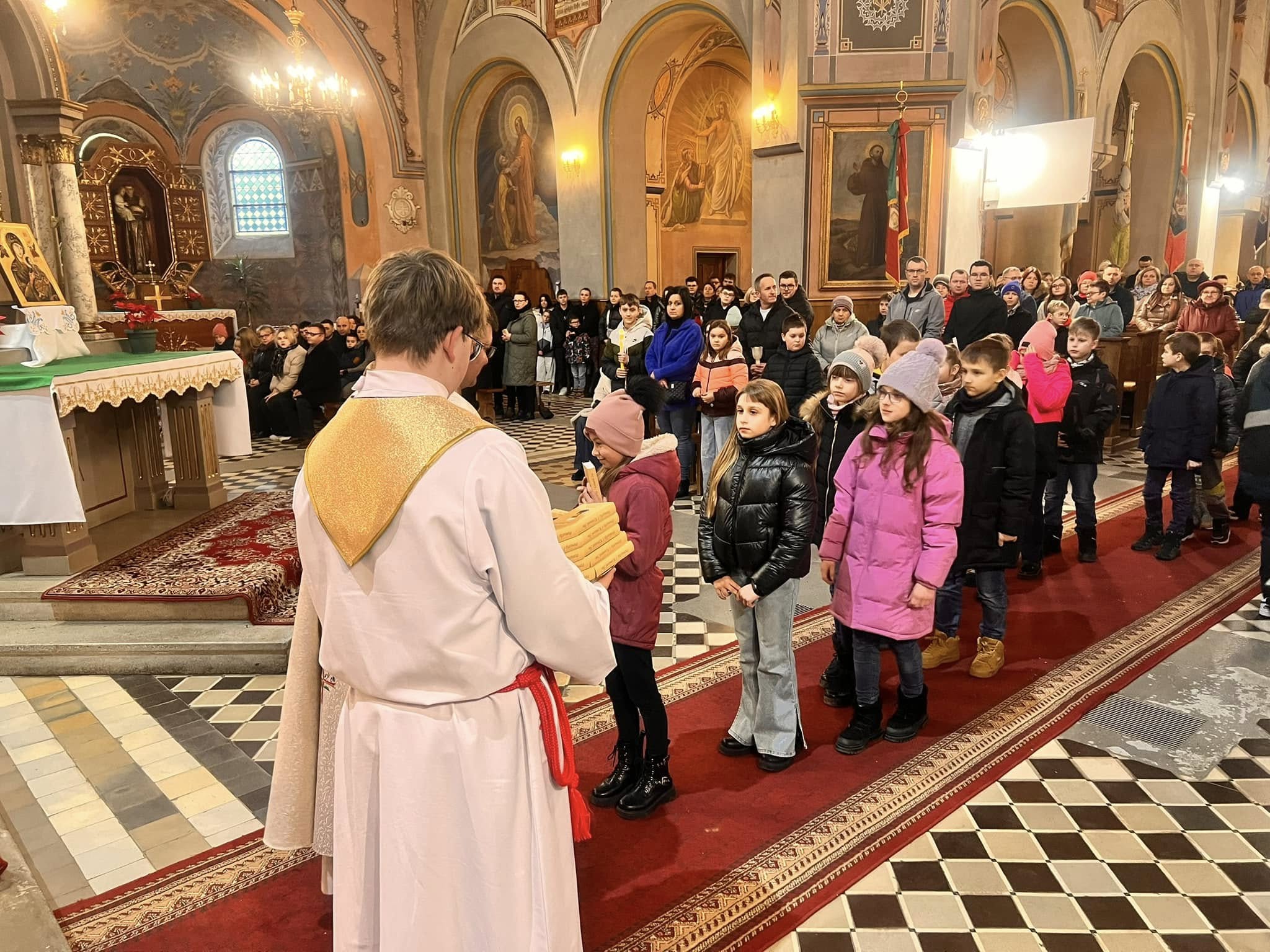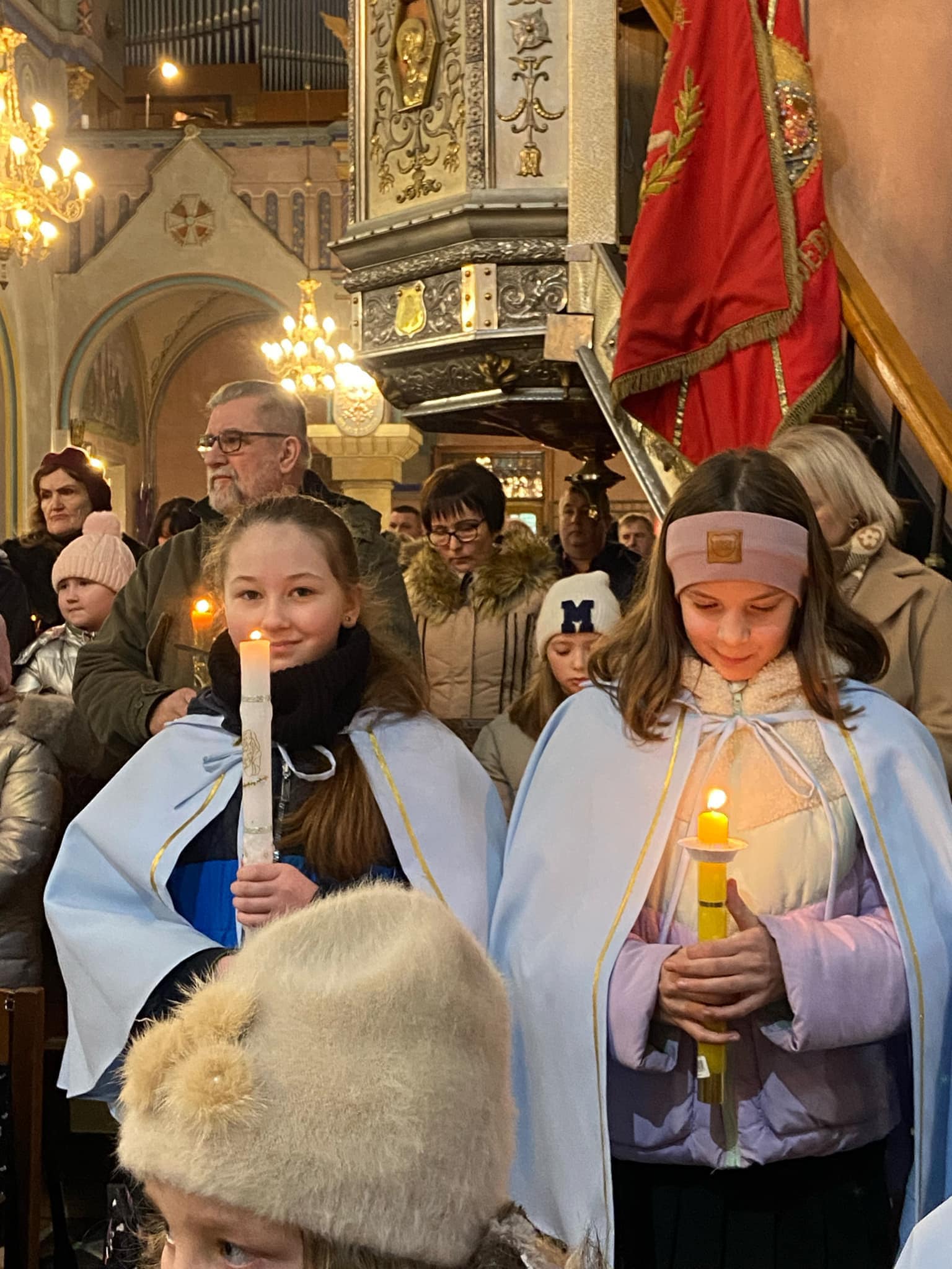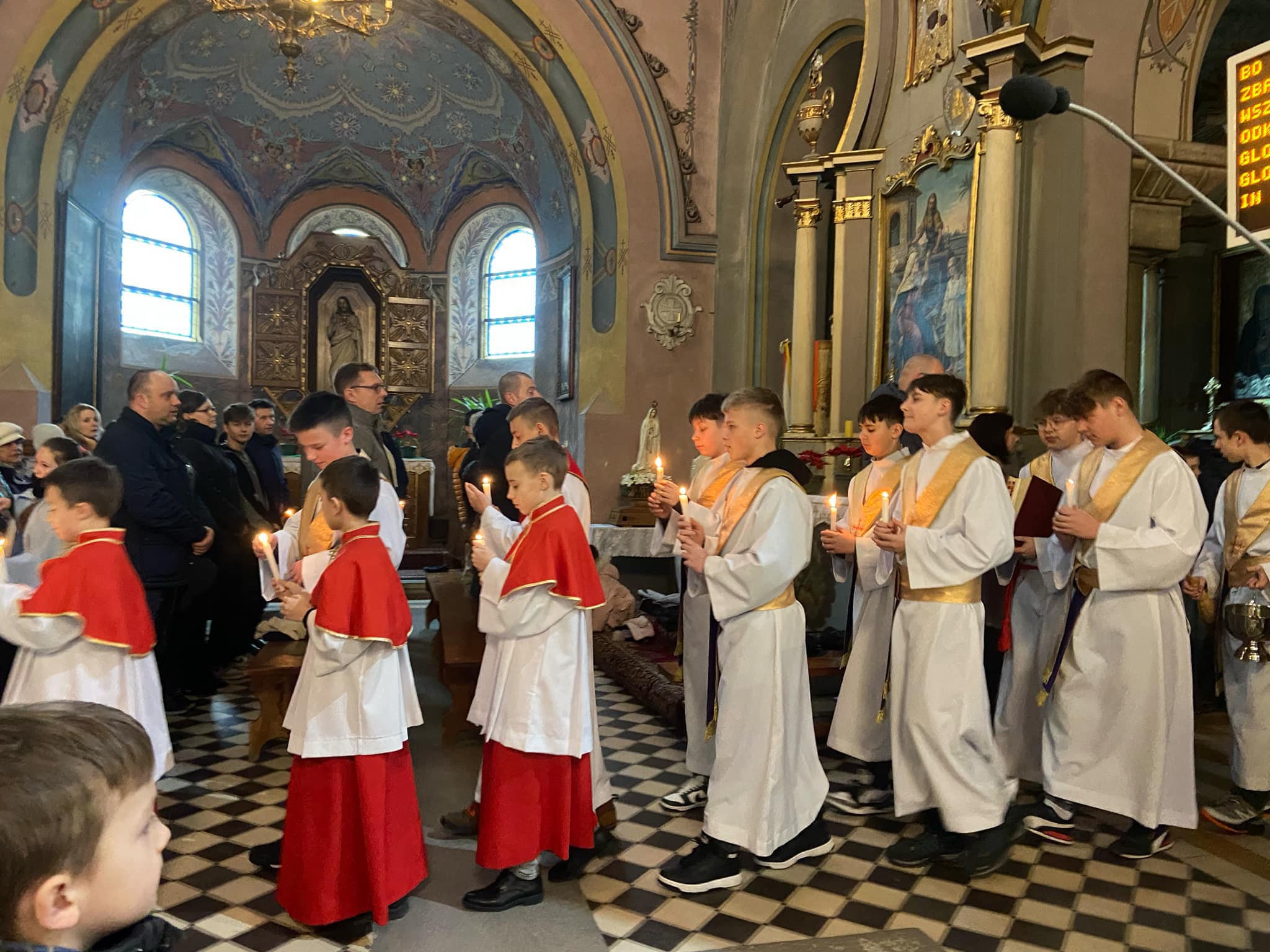 W Święto Ofiarowania Pańskiego, 2 lutego 2025 r., dzieci klas trzecich szkoły podstawowej przygotowujące się do uroczystości Pierwszej Komunii Świętej w parafii pw. św. Antoniego Padewskiego w Jedliczu otrzymały modlitewniki.
