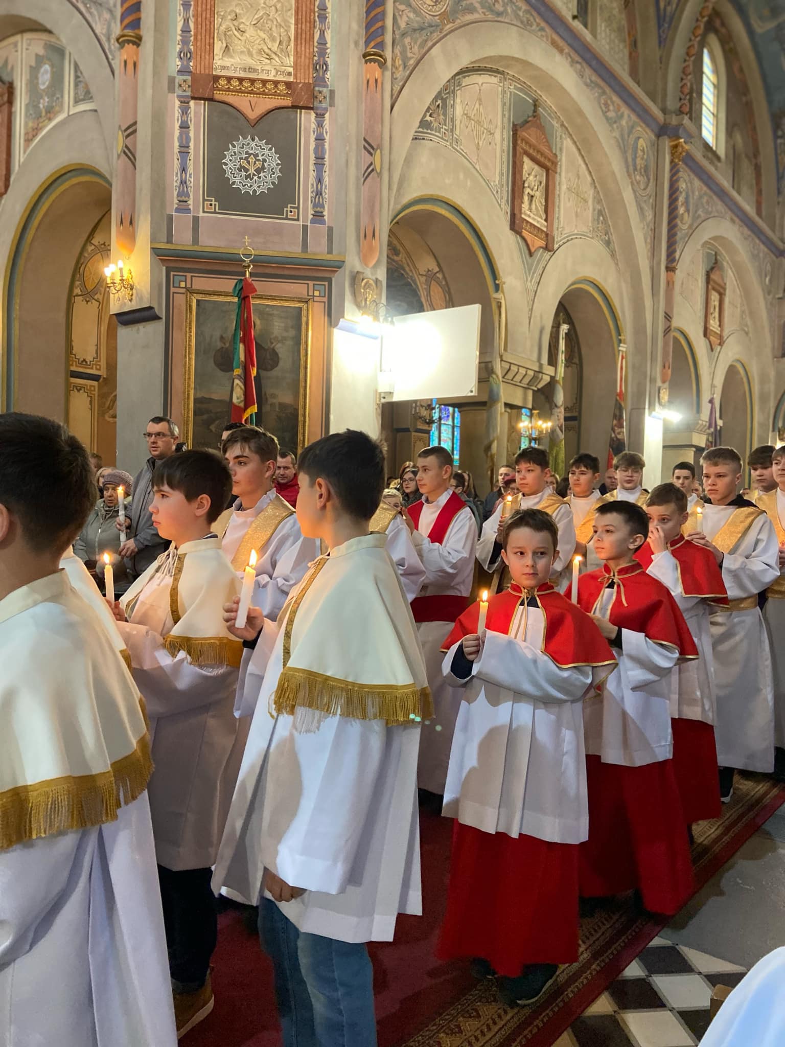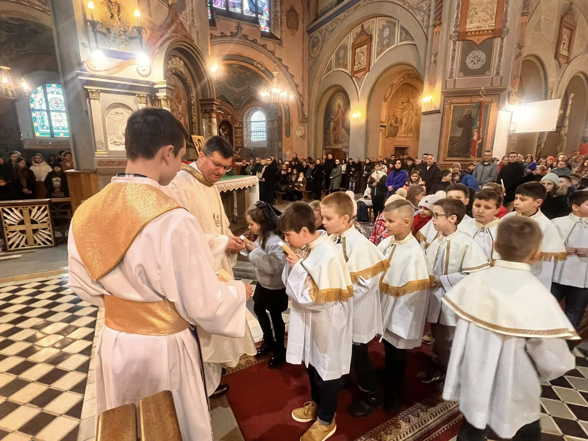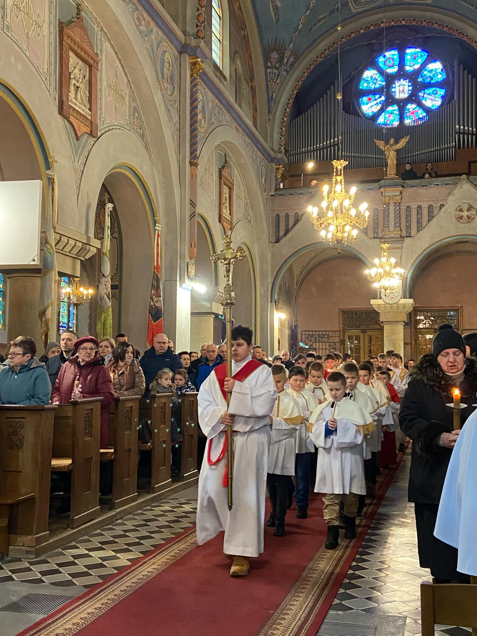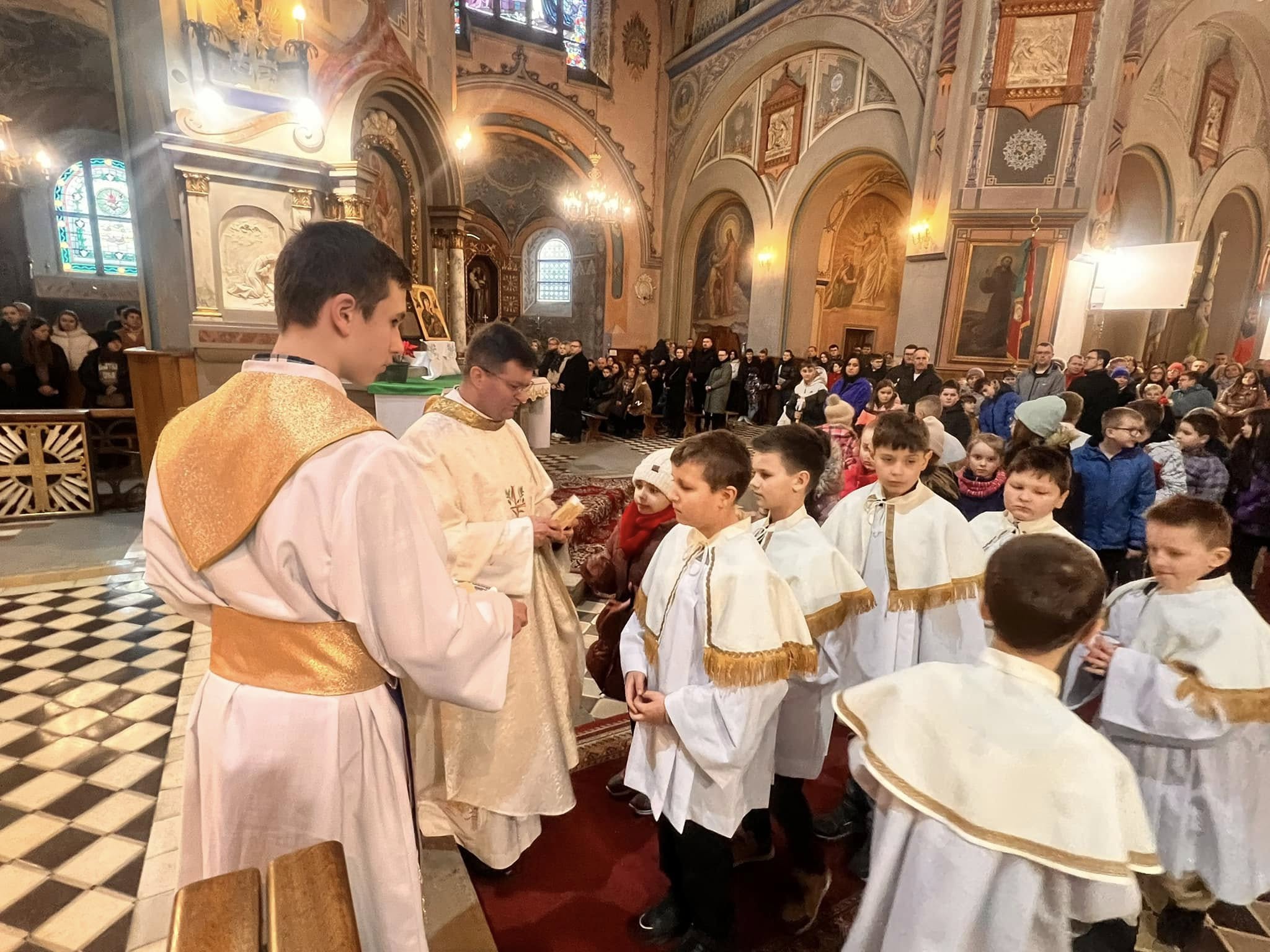 W Święto Ofiarowania Pańskiego, 2 lutego 2025 r., dzieci klas trzecich szkoły podstawowej przygotowujące się do uroczystości Pierwszej Komunii Świętej w parafii pw. św. Antoniego Padewskiego w Jedliczu otrzymały modlitewniki.