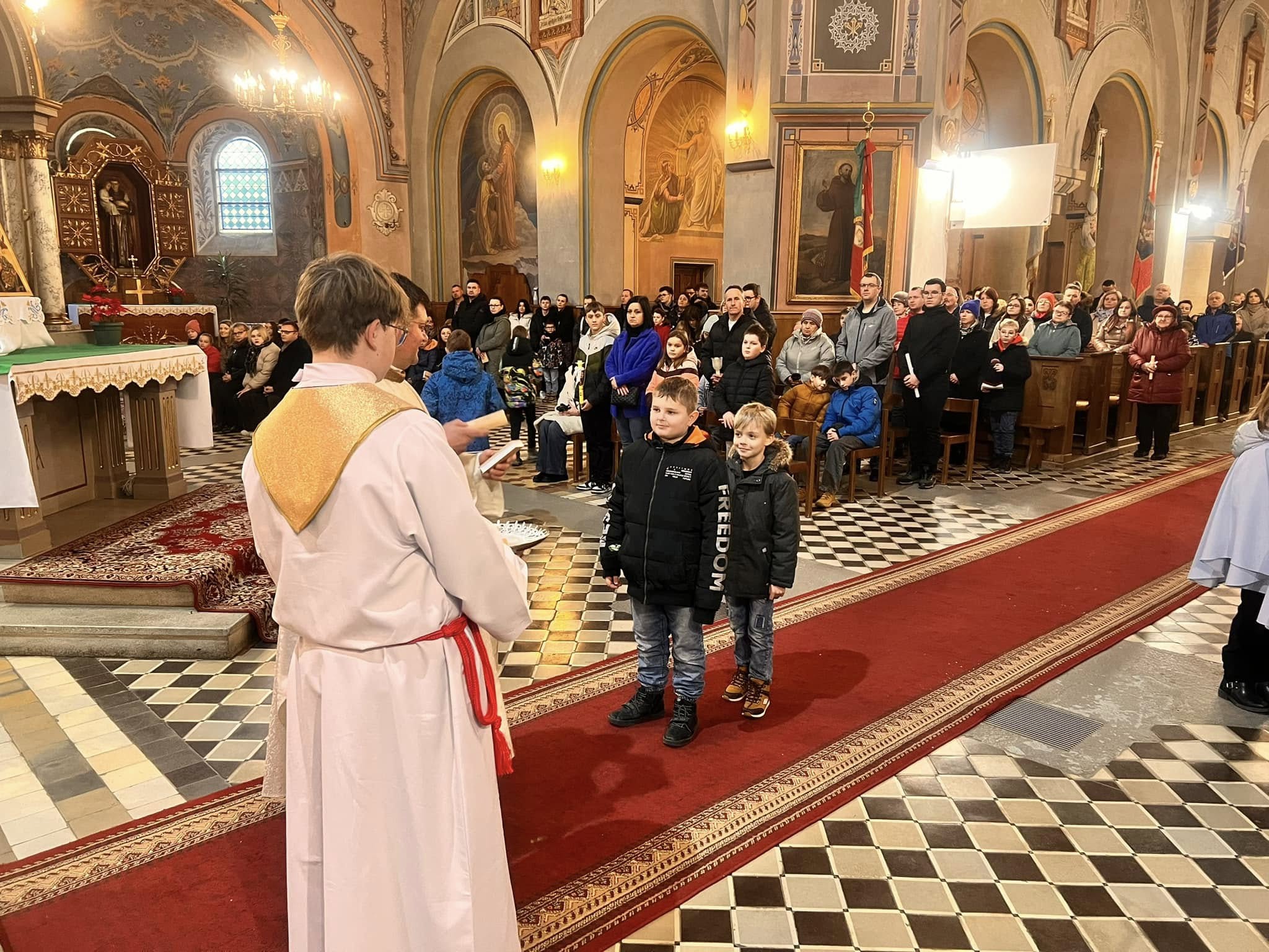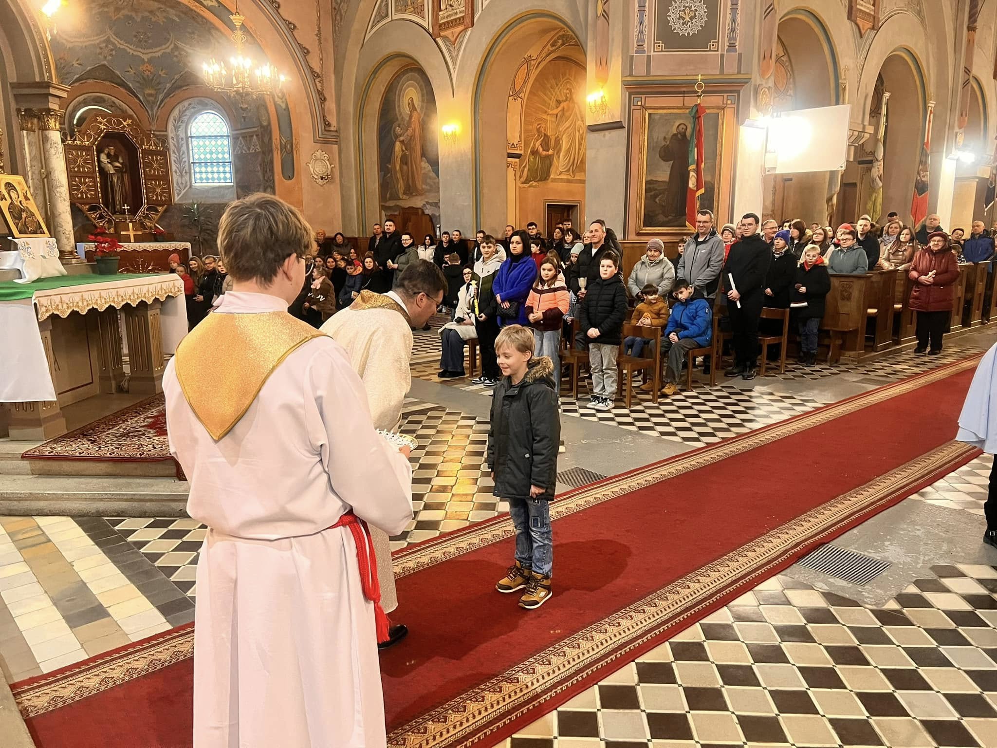 Uroczystej Mszy świętej o godz. 12.30 przewodniczył ks. proboszcz Tadeusz Dec, który pobłogosławił książeczki i rozdał je dzieciom. Dzieci w znaku szacunku ucałowały modlitewnik, który od teraz będzie dla niech pomocą w życiu religijnym.