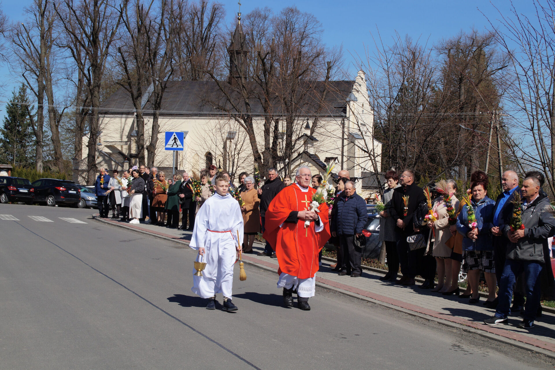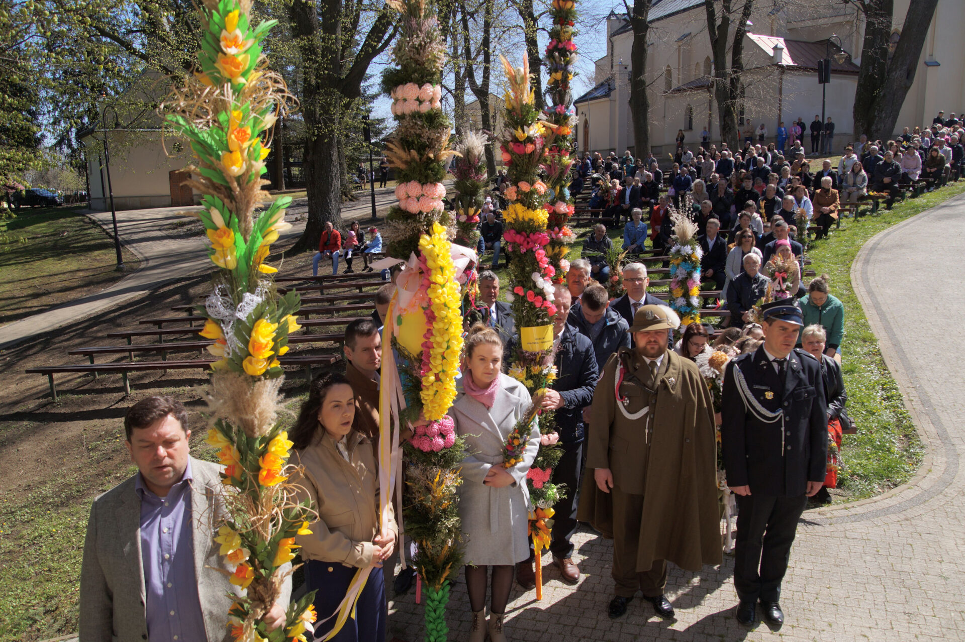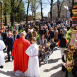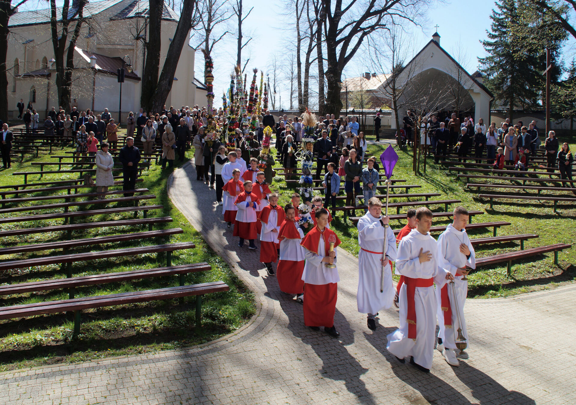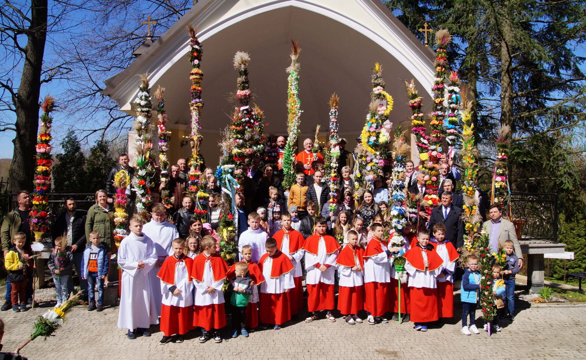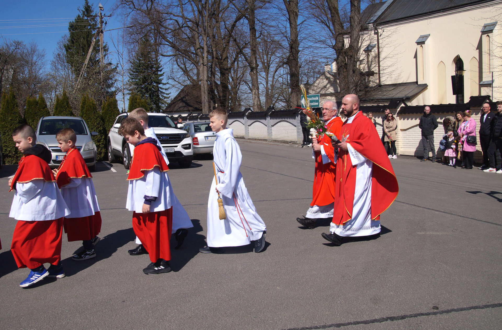 Palmy Wielkanocne zostały pobłogosławione na początku Eucharystii o godz. 11.00 przy Parku Pielgrzyma. Następnie wyruszyła uroczysta procesja w kierunku ołtarza polowego za sanktuarium, gdzie sprawowana była Msza Święta. Jak co roku odczytano z podziałem na role fragment o Męce Pańskiej.