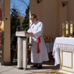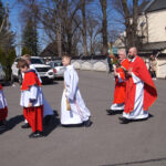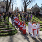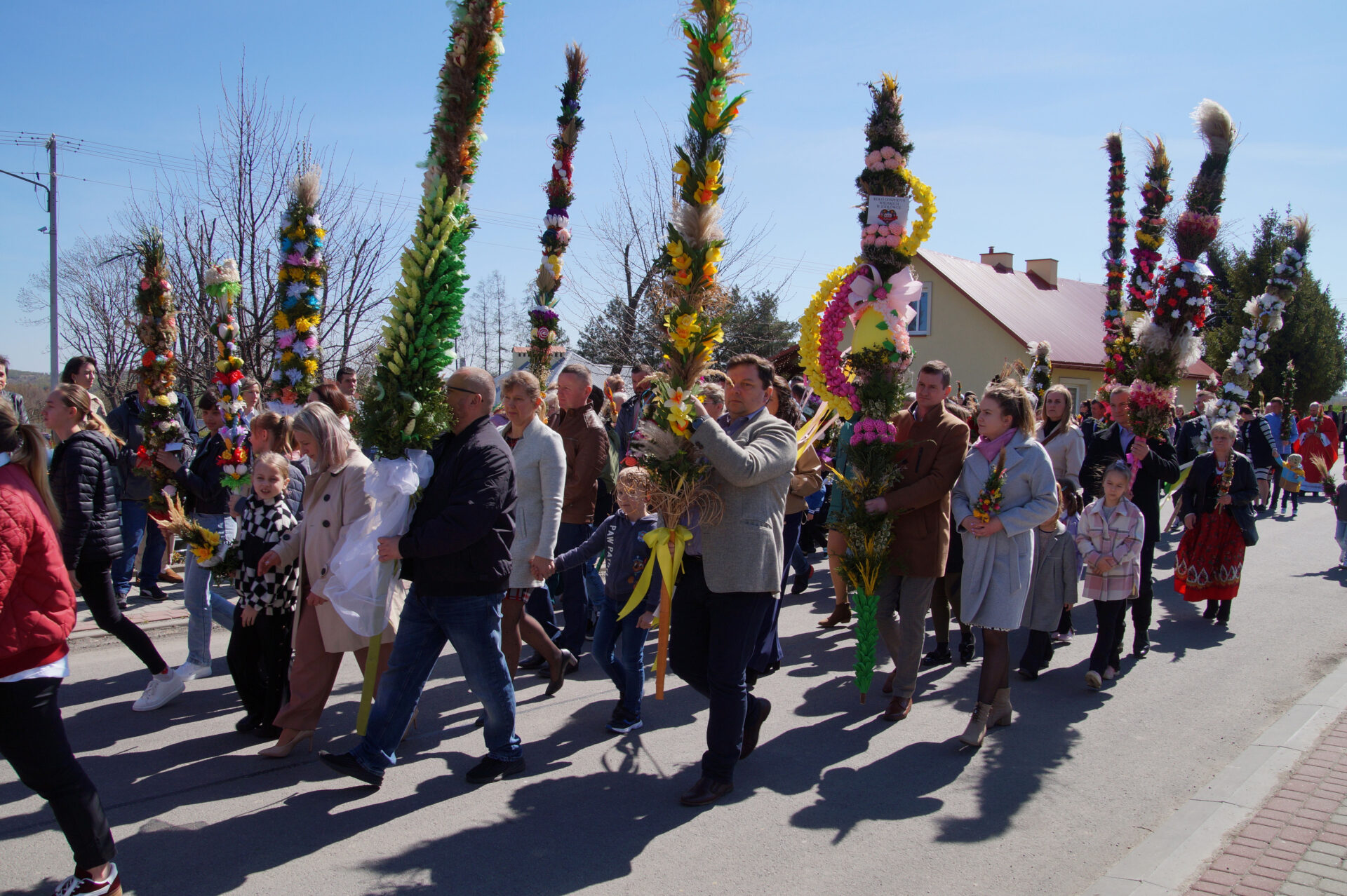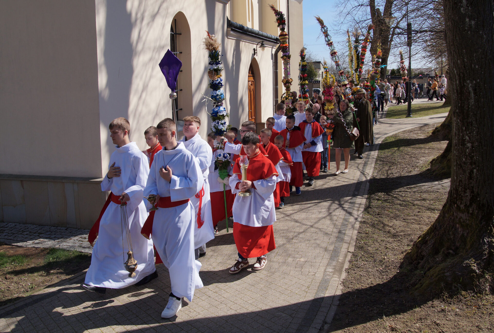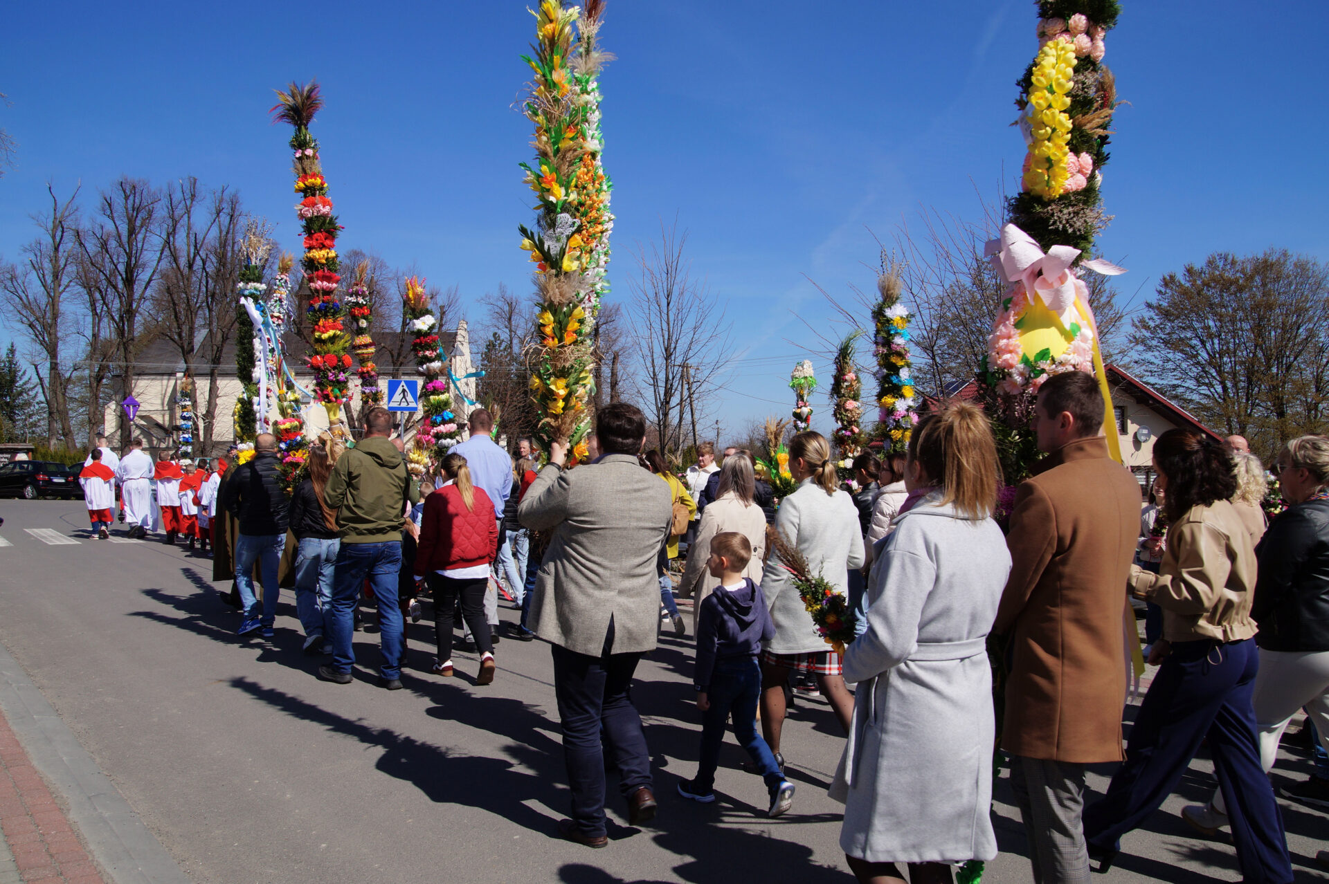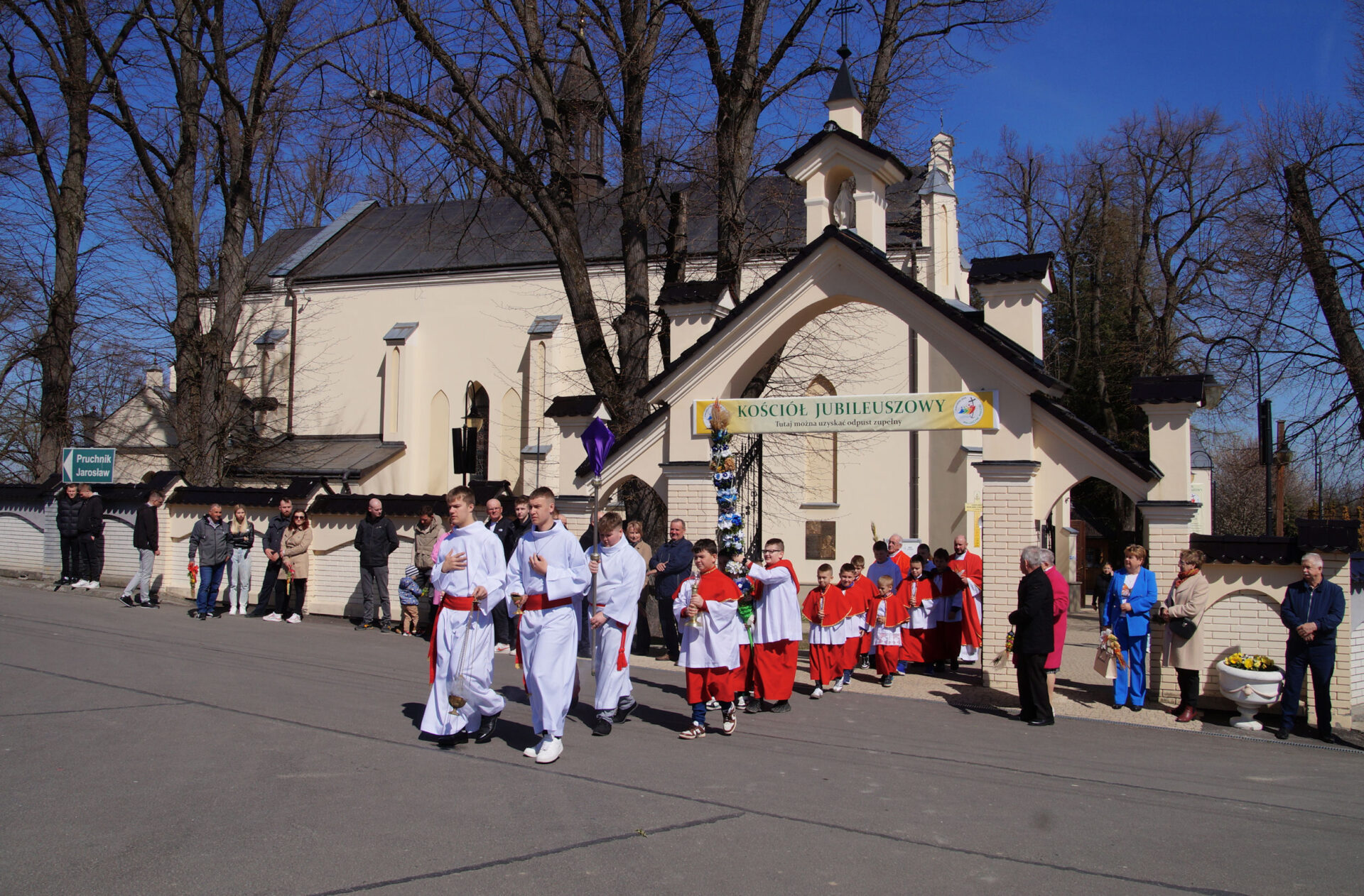Palmy Wielkanocne zostały pobłogosławione na początku Eucharystii o godz. 11.00 przy Parku Pielgrzyma. Następnie wyruszyła uroczysta procesja w kierunku ołtarza polowego za sanktuarium, gdzie sprawowana była Msza Święta. Jak co roku odczytano z podziałem na role fragment o Męce Pańskiej.