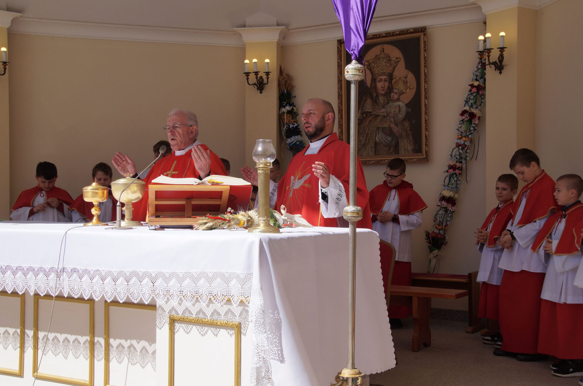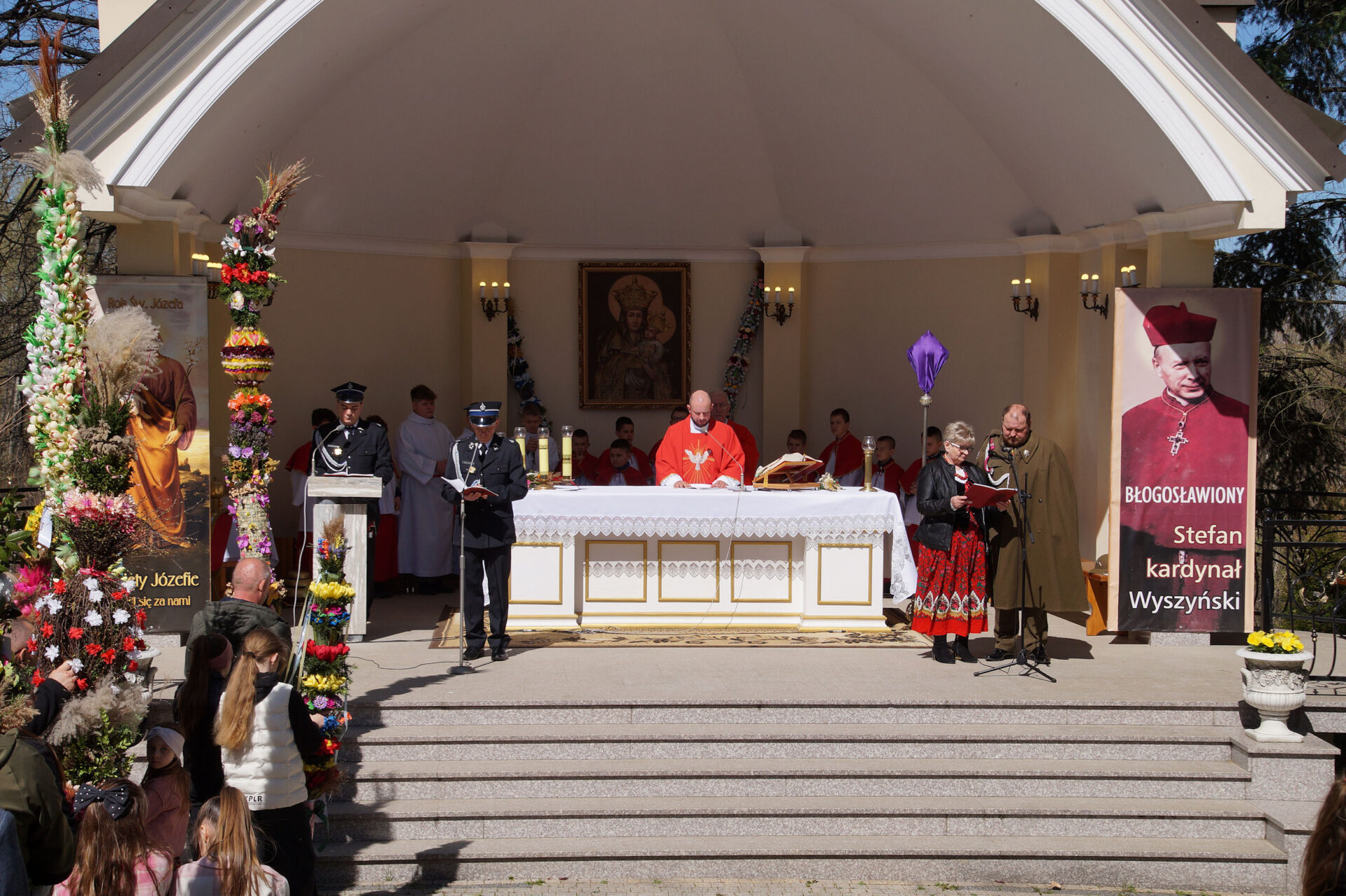 Po Eucharystii wszystkie palmy zostały złożone przy ołtarzy polowym, obok kopii cudownego wizerunku Pani Jodłowieckiej.