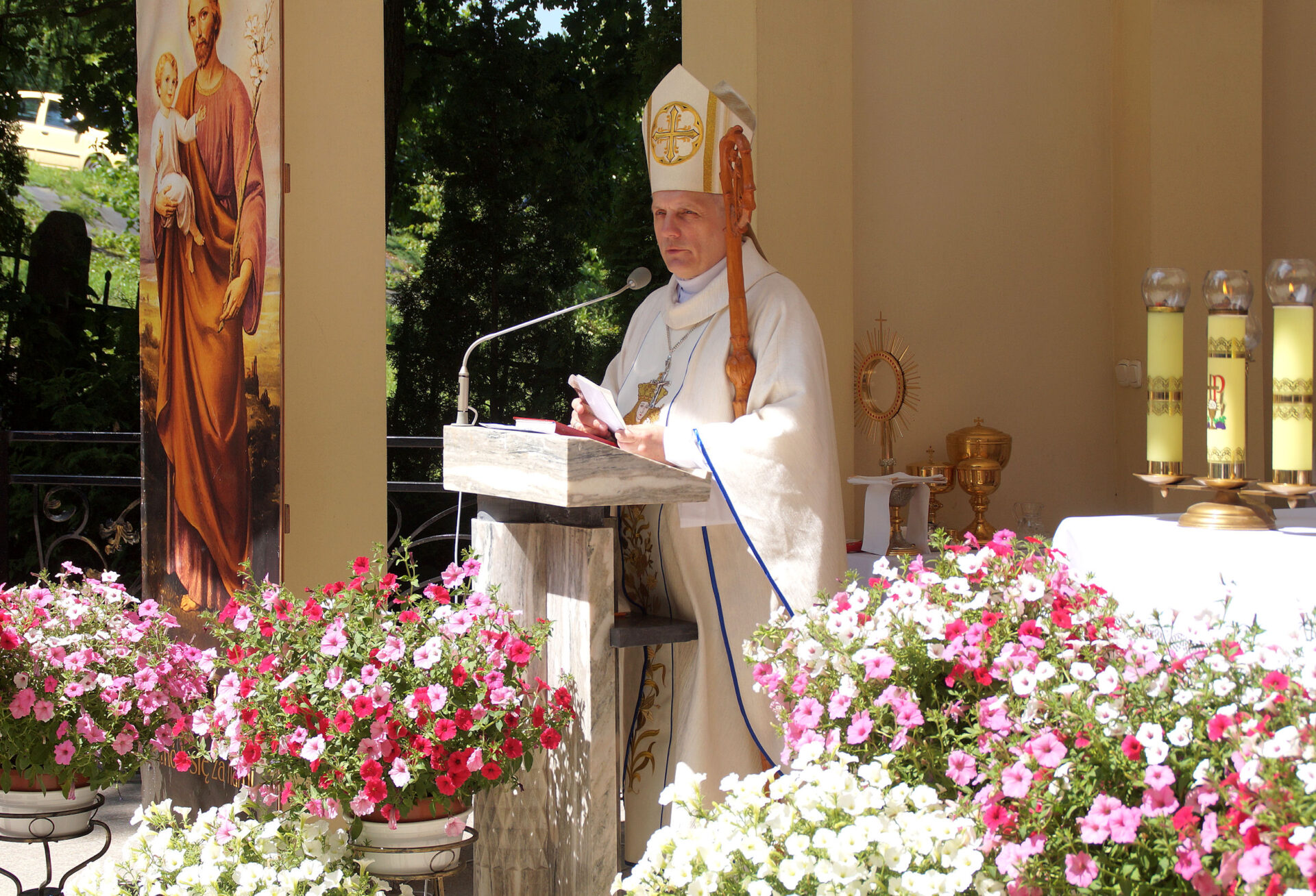 Hierarcha podał też za przykład wierności i miłości wobec Boga Matkę Najświętszą i św. Józefa. – Powinniśmy codziennie też mówić: Panie, daj, żebym był wierny Tobie, ale też i mojej żonie, a żona swojemu mężowi. O to się trzeba modlić. Dzieci niech się modlą, żeby były wierne codziennym obowiązkom i zadaniom jakie Pan Bóg wam zleca – zachęcał.