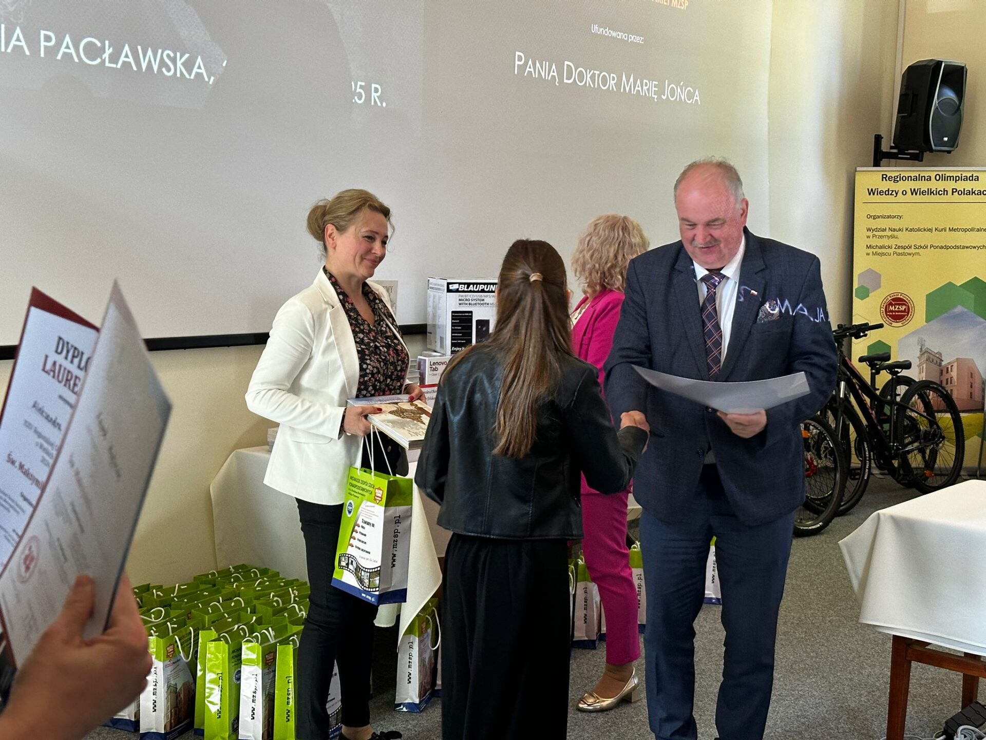 Wszyscy Laureaci i Finaliści olimpiady zostali uhonorowani wartościowymi nagrodami: pielgrzymka do Rzymu (pięć pierwszych osób); rowery turystyczne; laptopy; tablety; cenne pozycje książkowe (m.in. sześciotomowa historia Polski), albumu (m.in. o bł. Rodzinie Ulmów); upominki i gadżety – pakiet z Michalickiego Zespołu Szkół Ponadpodstawowych w Miejscu Piastowym.