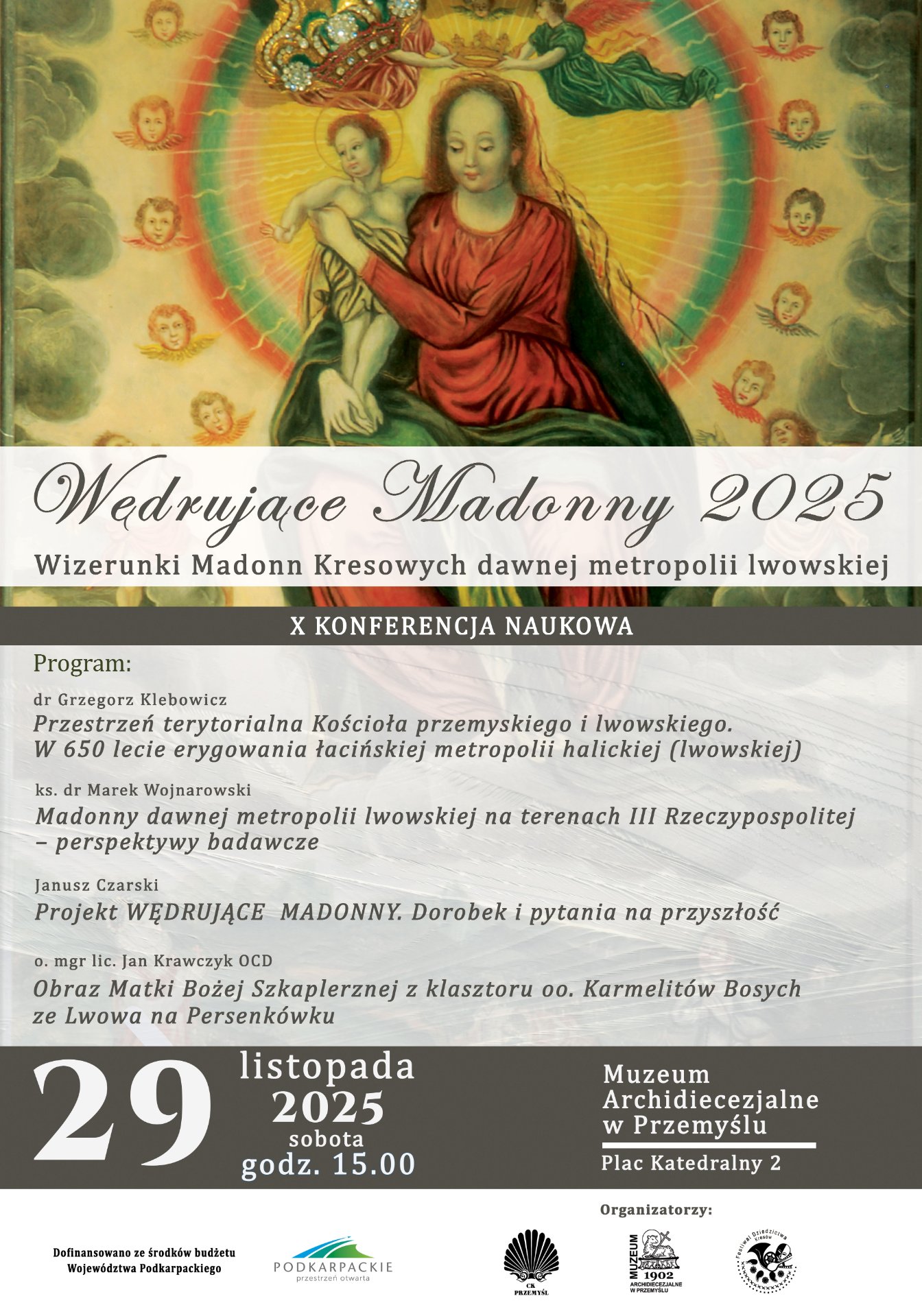 W sobotę, 29 listopada 2025 r., w Muzeum Archidiecezjalnym w Przemyślu odbędzie się X konferencja naukowa pt. „Wędrujące Madonny 2025 – wizerunki Madonn Kresowych dawnej metropolii lwowskiej”. Początek wydarzenia o godz. 15:00.
