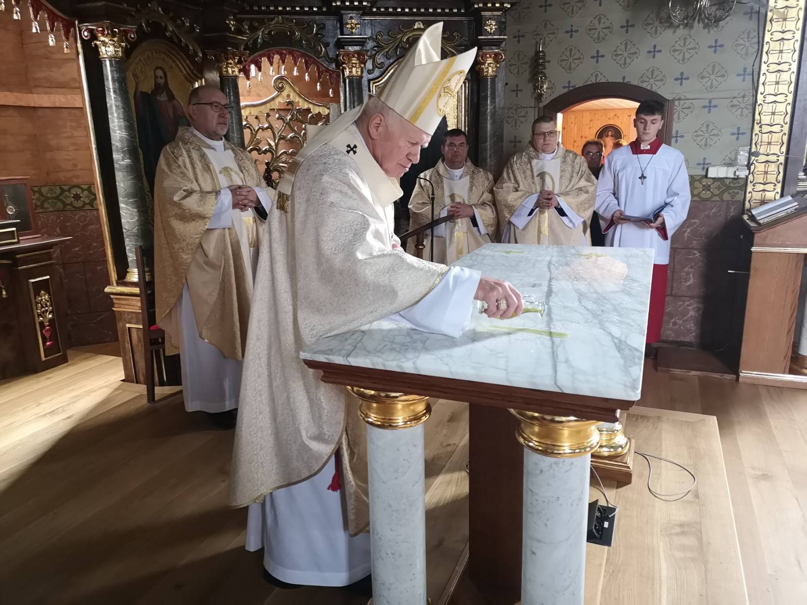 – Dla nas, ludzi wierzących w Chrystusa, ołtarz jest związany z tajemnicą Jezusa Chrystusa. To jest Ołtarz, w którym dokonuje się wielkie dzieła, który uobecnia dwie rzeczywistości – powiedział hierarcha i nawiązał do Wieczerzy Pańskiej, kiedy to Jezus przemienił chleb w swoje Ciało i wino w Krew, oraz tajemnicy Betlejem, kiedy Słowo stało się Ciałem. Ołtarz jest również stołem, przy „którym gromadzi się nasza wspólnota”. – To miejsce, w którym także mamy okazję do dziękczynienia, do uwielbienia Pana Boga, ale także i do przeproszenia i do złożenia do próśb na tym ołtarzu – zaznaczył kaznodzieja.