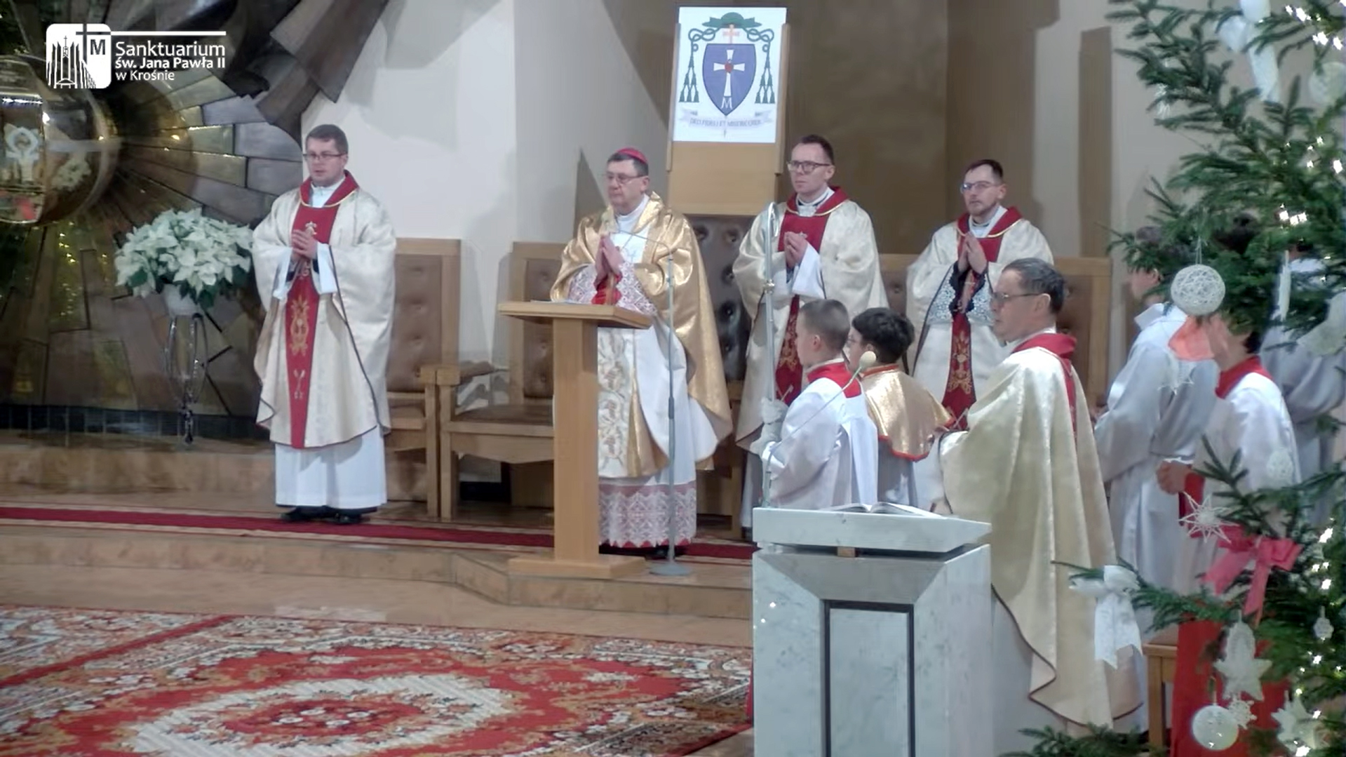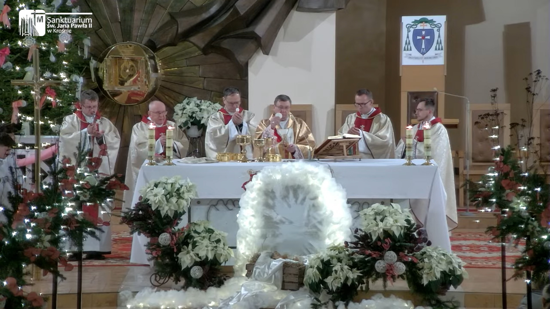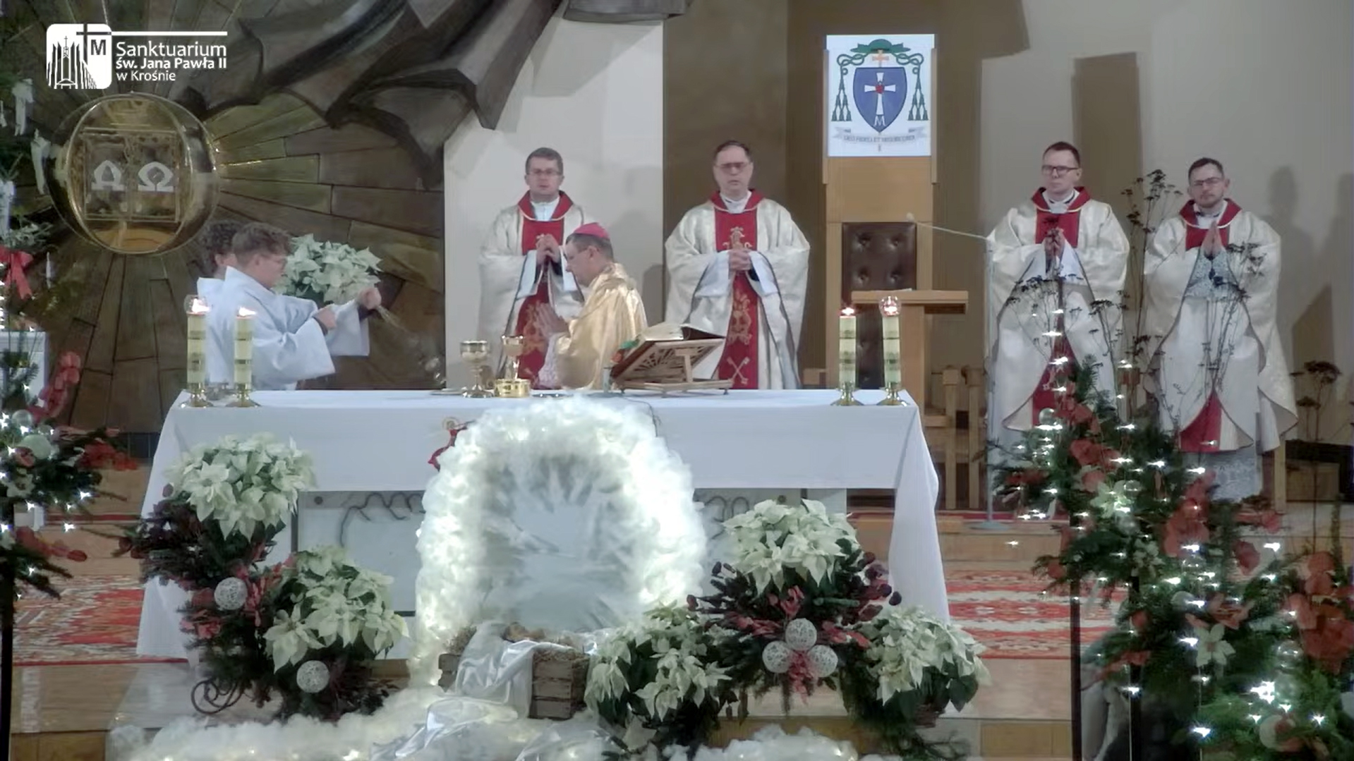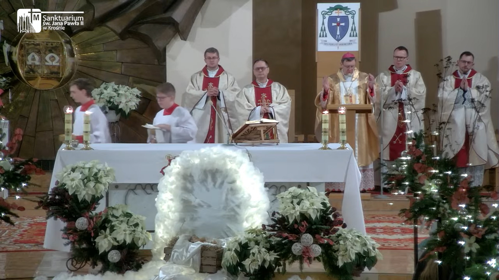 W środę, 25 grudnia 2024 r., uroczystszej Pasterce w sanktuarium św. Jana Pawła II w Krośnie przewodniczył bp Krzysztof Chudzio. To właśnie w tym kościele 20 grudnia 2024 r., doszło do profanacji krzyża.