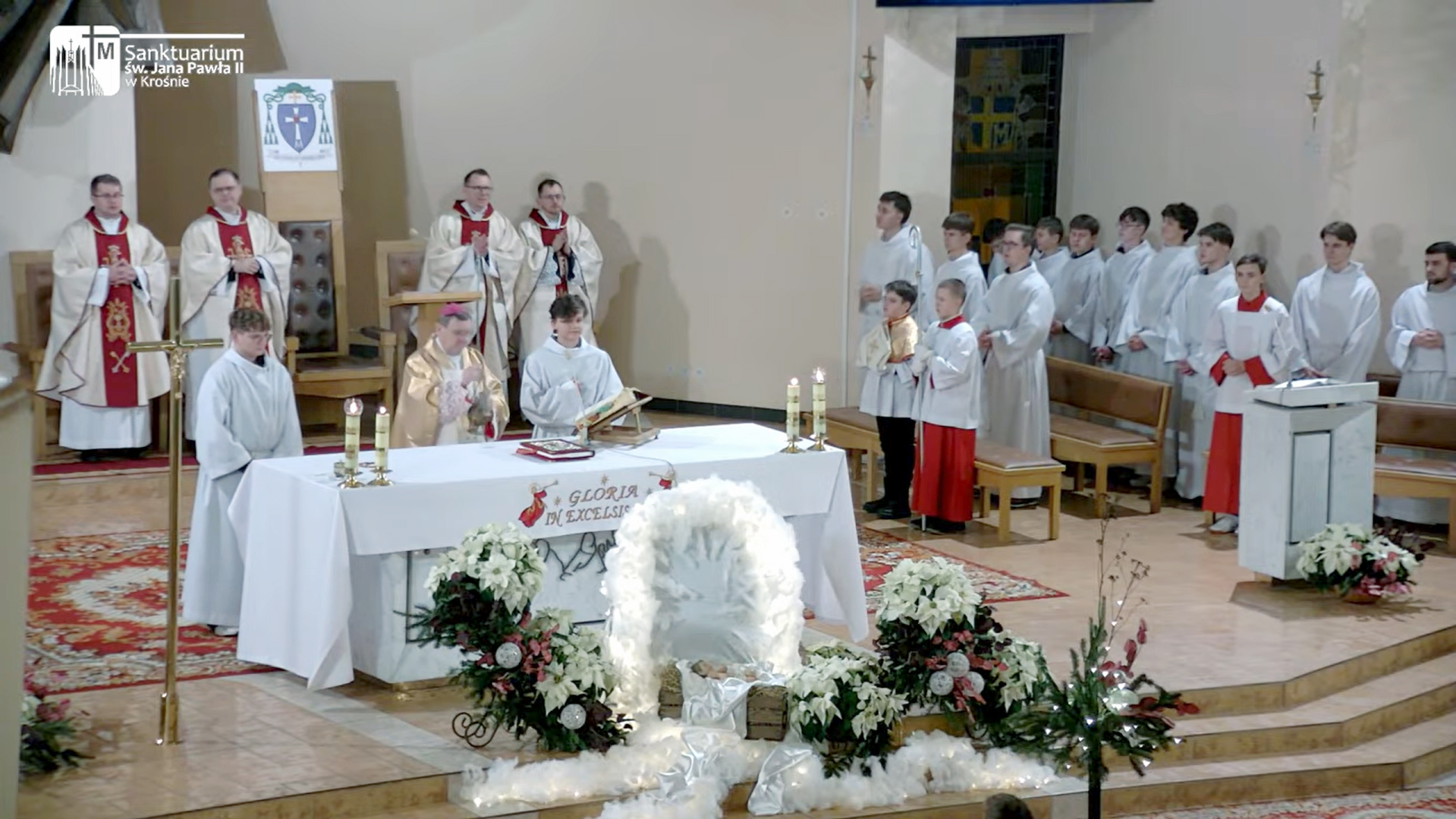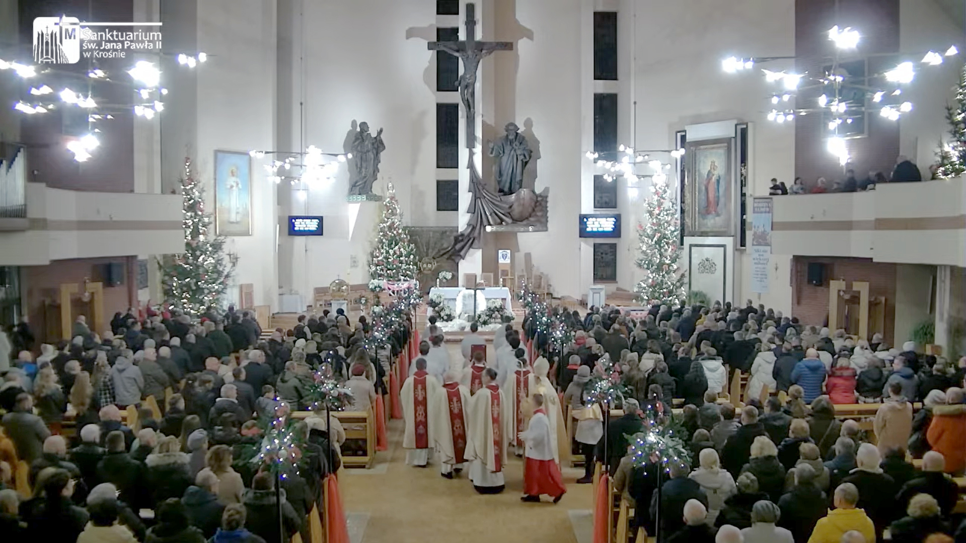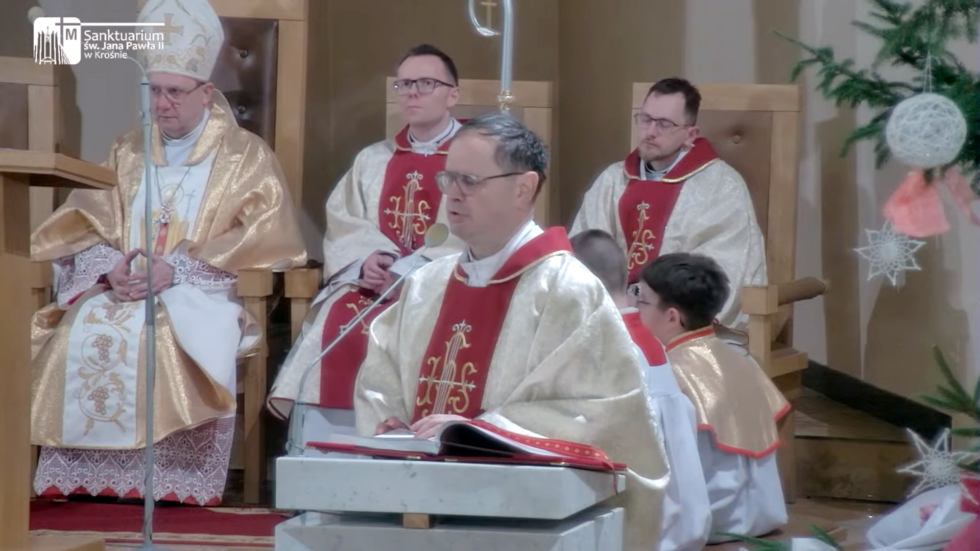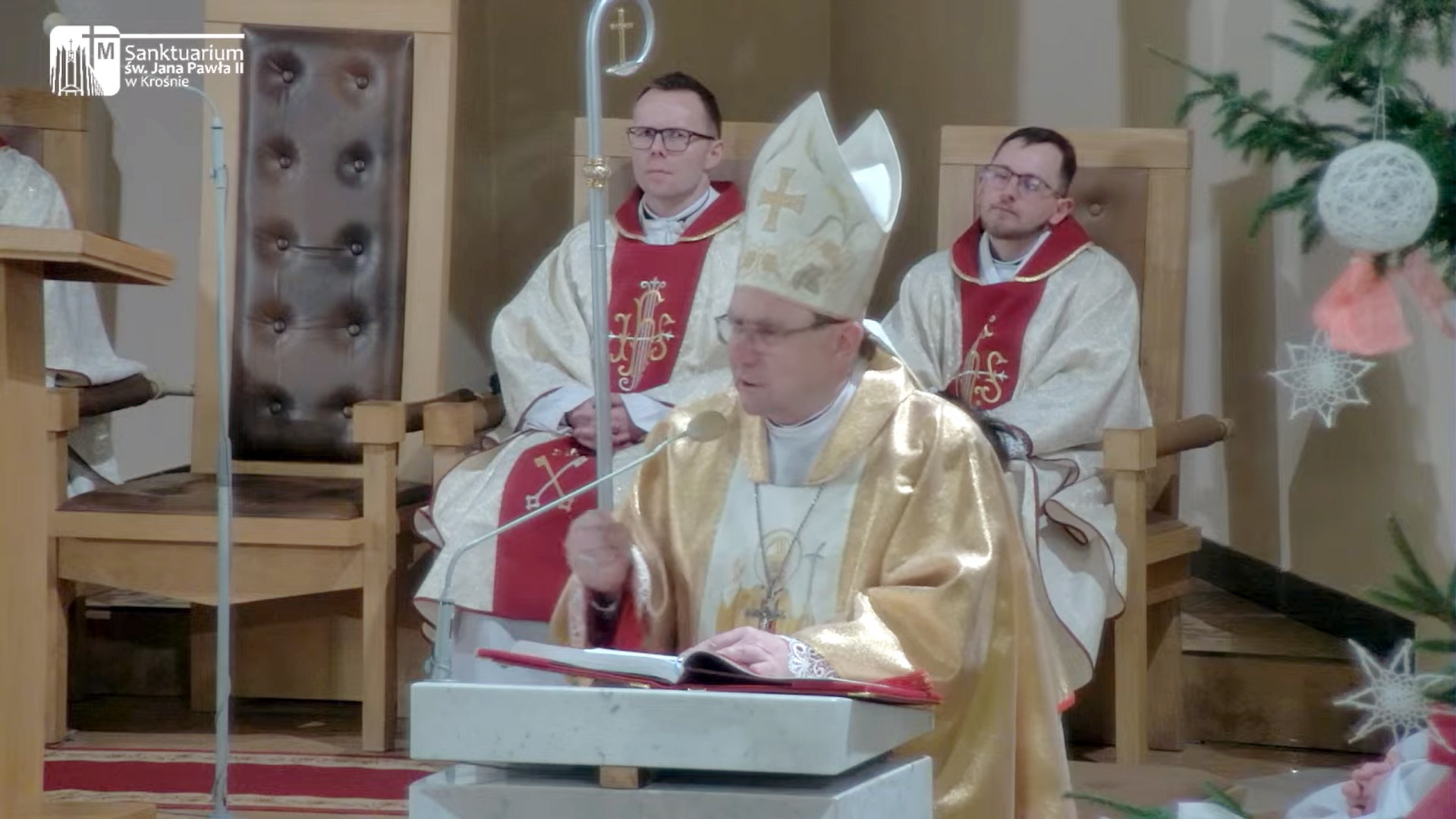 W środę, 25 grudnia 2024 r., uroczystszej Pasterce w sanktuarium św. Jana Pawła II w Krośnie przewodniczył bp Krzysztof Chudzio. To właśnie w tym kościele 20 grudnia 2024 r., doszło do profanacji krzyża.