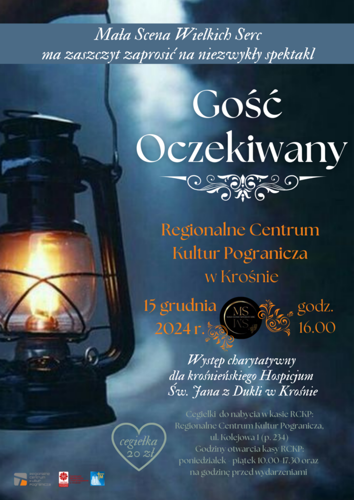 Występ ma charakter charytatywny. – Ma na celu wsparcie krośnieńskiego Hospicjum Św. Jana z Dukli. Cegiełki w cenie 20 zł można nabyć w kasie Regionalnego Centrum Kultur Pogranicza w Krośnie przy ul. Kolejowej 1. Kasa jest otwarta od poniedziałku do piątku w godzinach 10:00-17:30 oraz na godzinę przed wydarzeniami – informują organizatorzy.