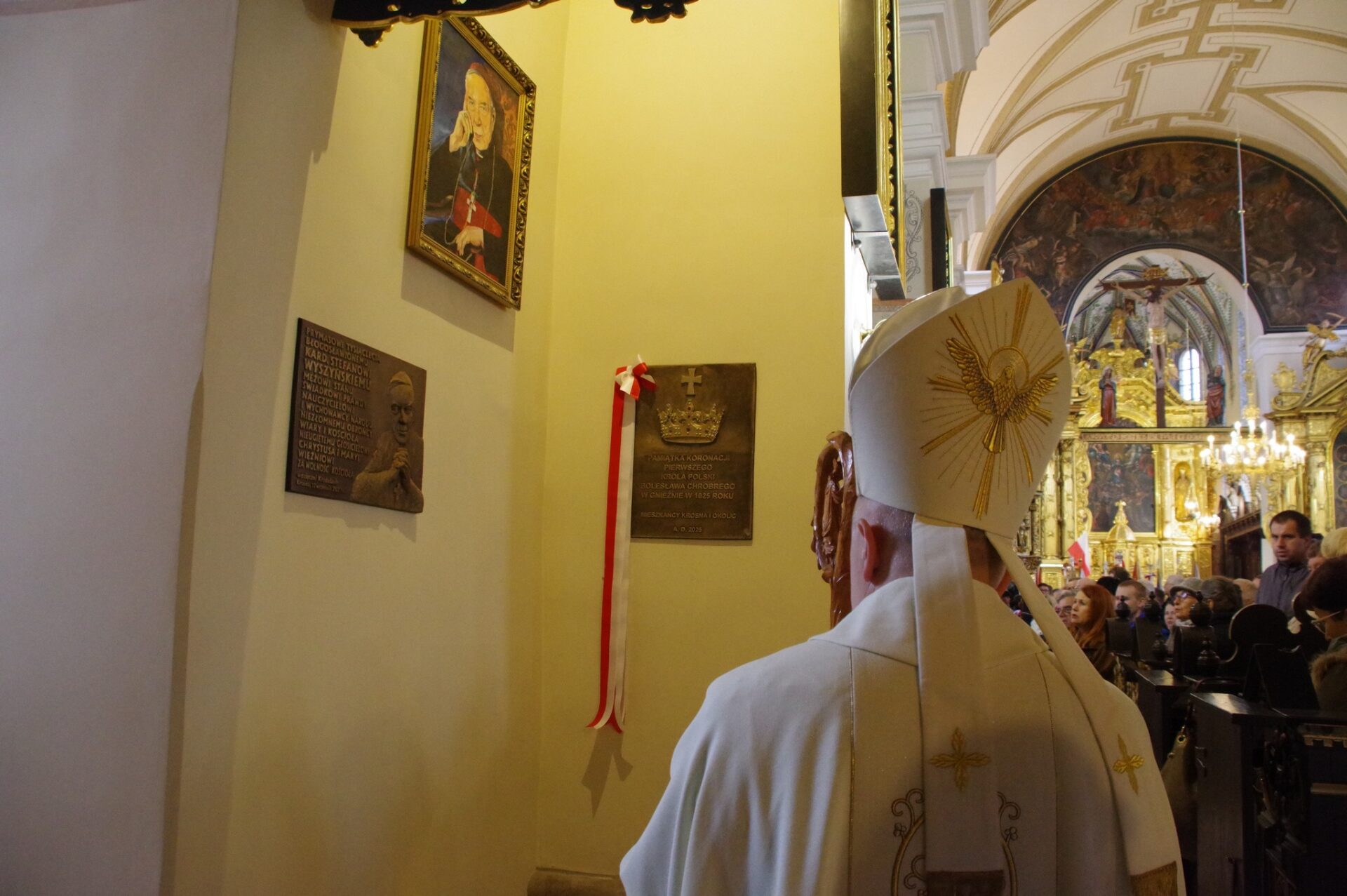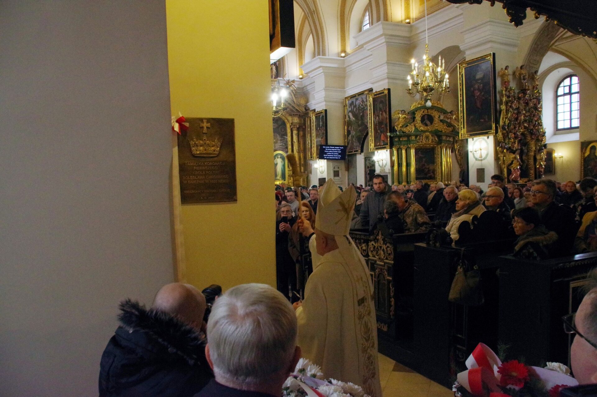 Po zakończeniu Eucharystii miało miejsce szczególne wydarzenie – odsłonięcie i poświęcenie tablicy upamiętniającej 1000-lecie Koronacji Bolesława Chrobrego na Króla Polski, przypominającej o tysiącletniej tradycji polskiej państwowości. Inicjatorami powstania tablicy był Komitet na czele którego stanęli Łukasz Mazur, Jan Garncarski i Jerzy Nowak, zawiązany dla upamiętnienia tego doniosłego wydarzenia w dziejach Polski. Tablicę wykonał Andrzej Samborowski-Zajdel.