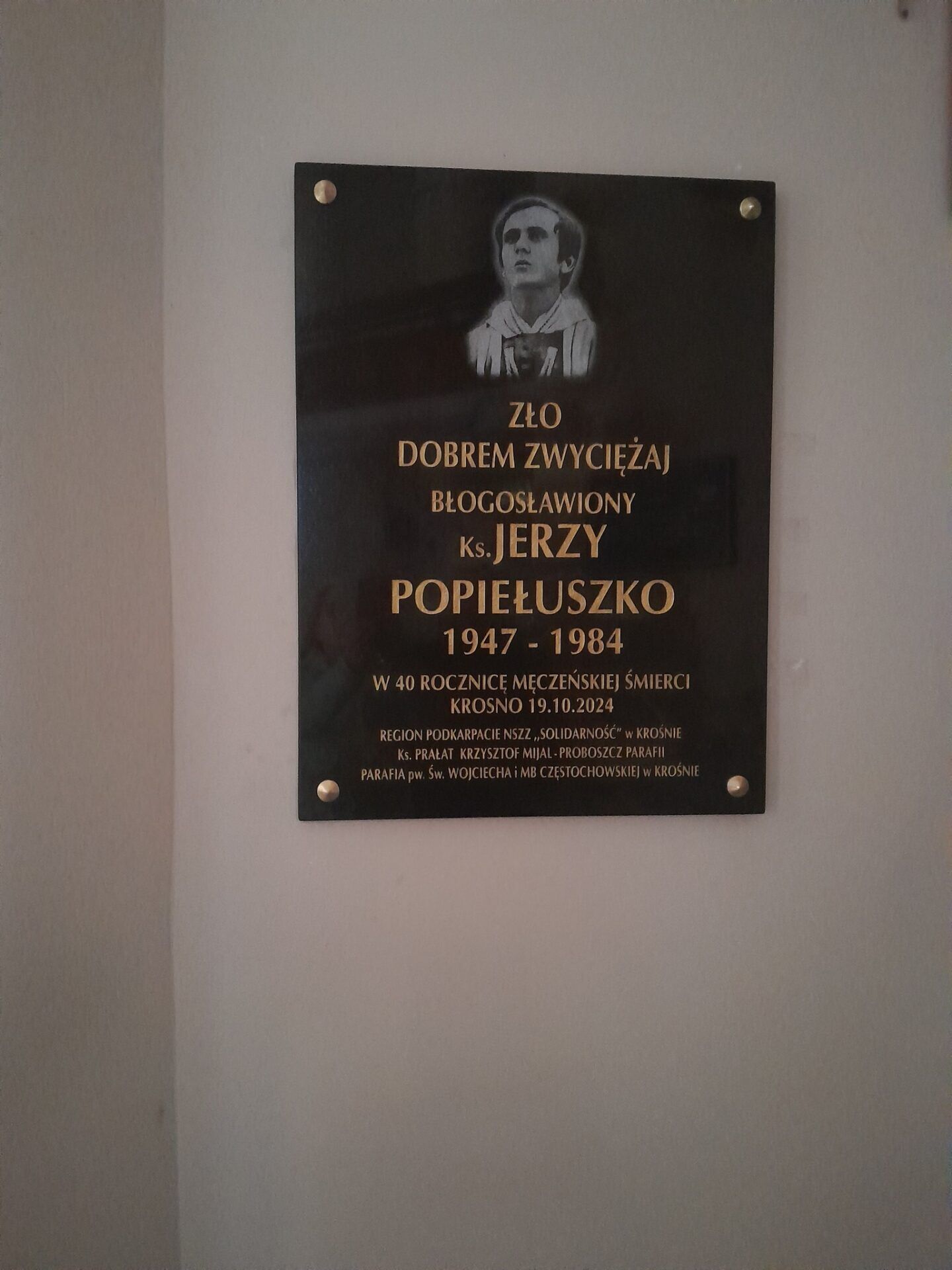 Uroczystość poświęcenia tablic w kościele pw. św. Wojciecha i M.B. Częstochowskiej w Krośnie jest świadectwem wdzięczności za przykład mężnej wiary bł. ks. Jerzego Popiełuszki Kapelana Solidarności oraz wielkiego patrioty śp. Ks. Tadeusza Szeteli. Wszystko po to, aby dalej wzrastała wiara i miłość Boga w sercach ludzi, aby robotnicy kształtowali etos pracy w oparciu o chrześcijańskie wartości i na wzór swojego Patrona byli im wierni Ewangelii w dzisiejszych niełatwych czasach.