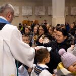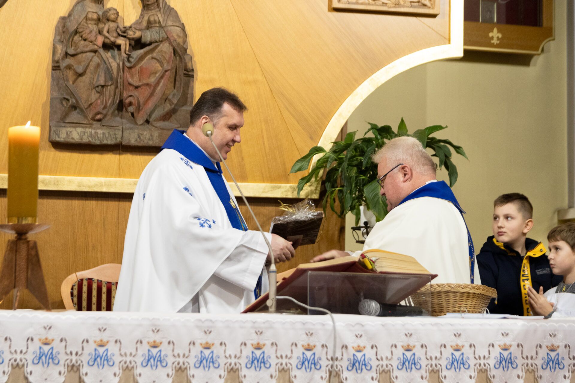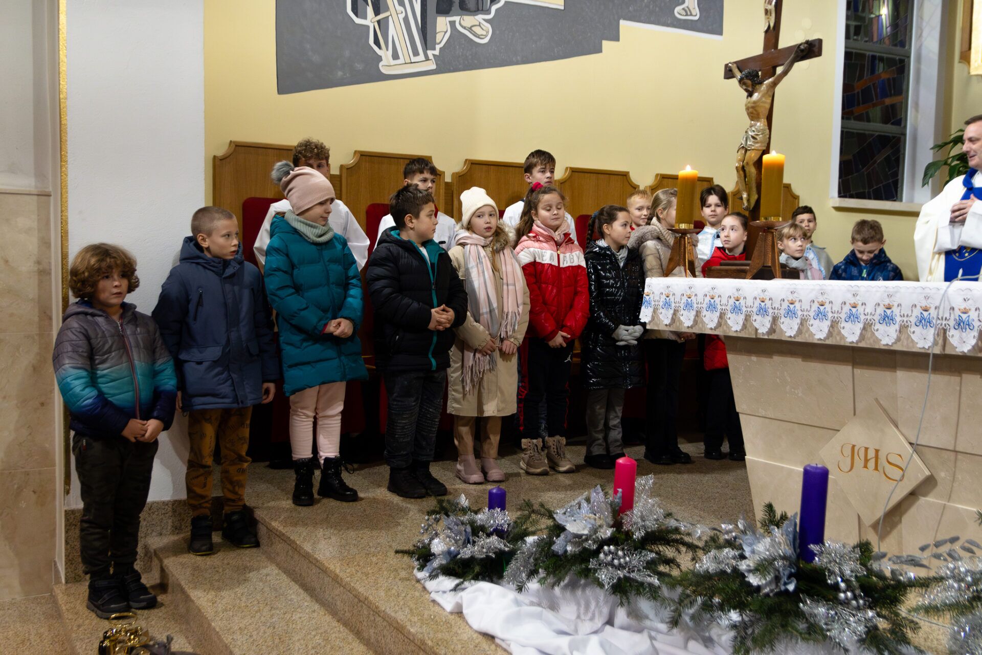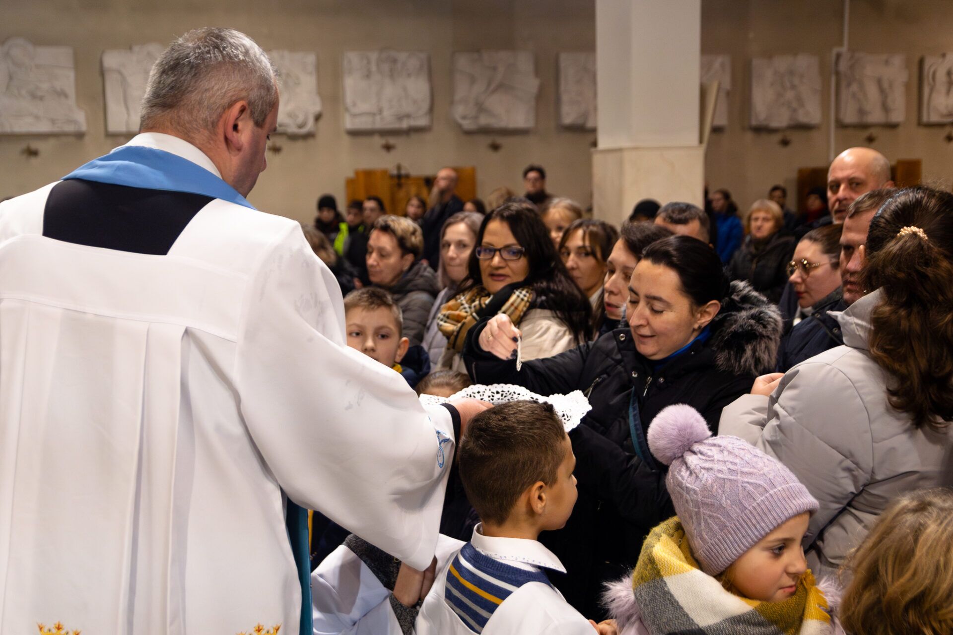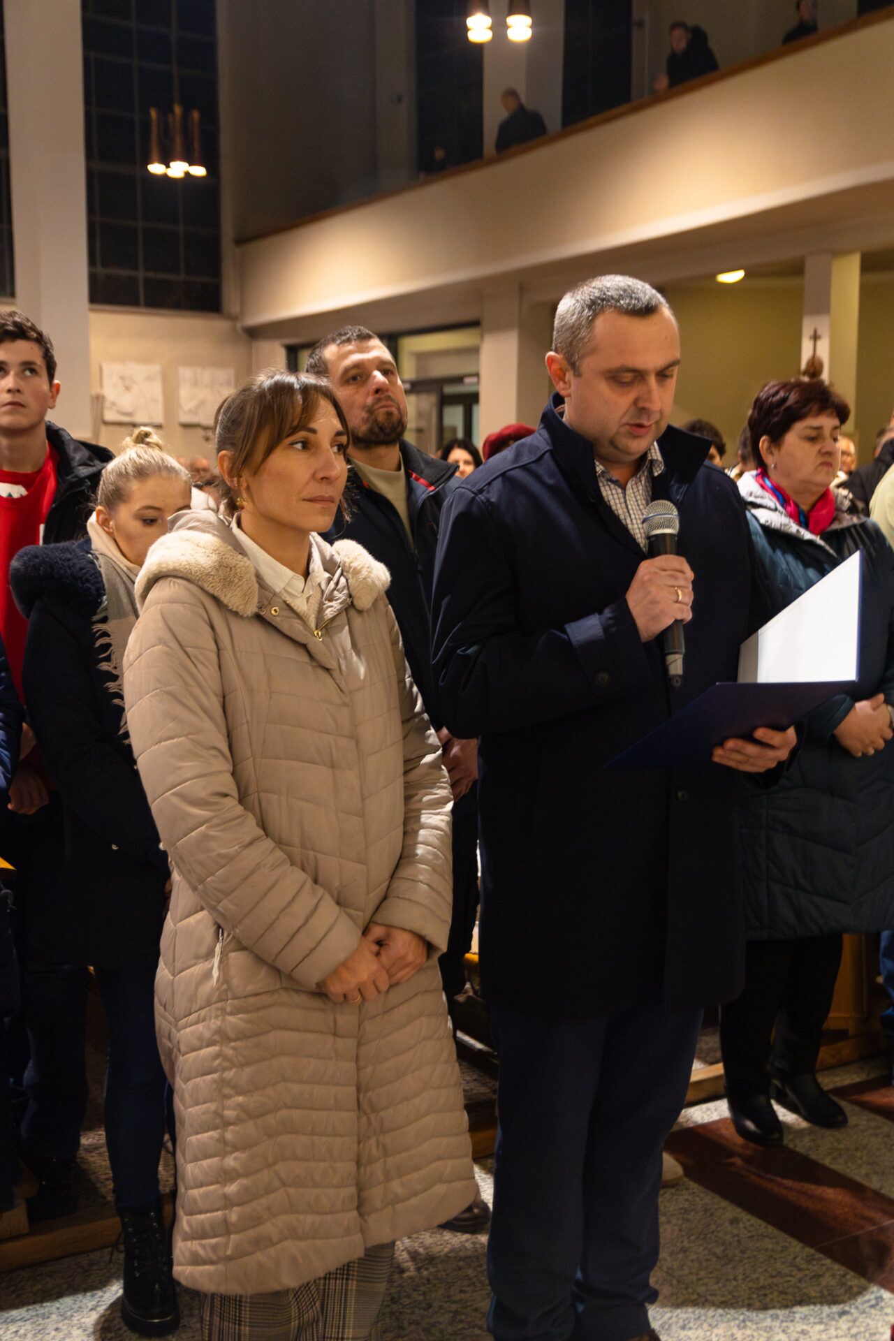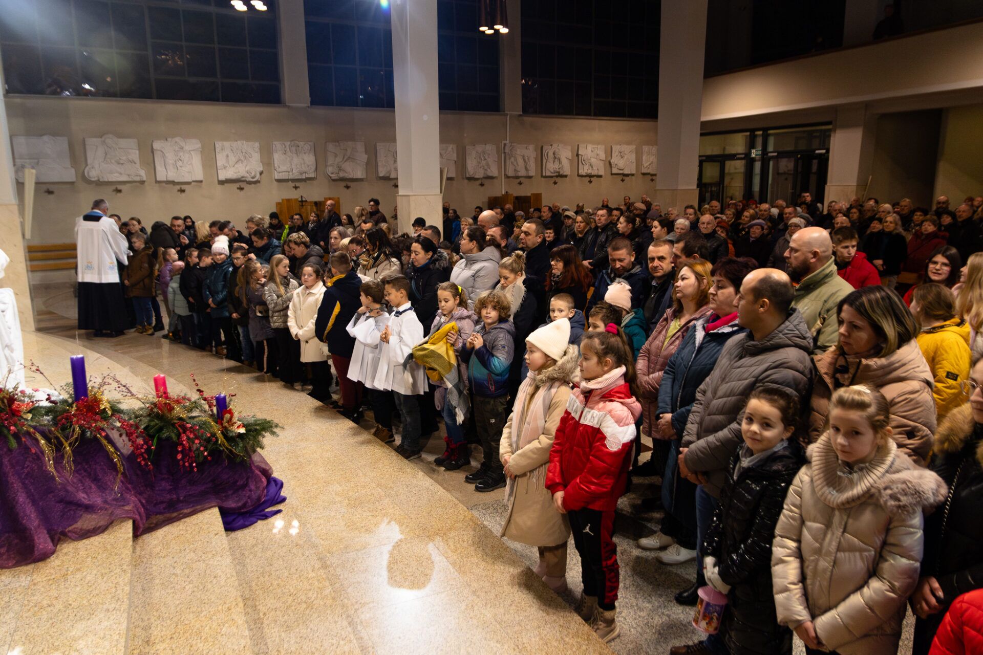 W pierwszej nowennie pod przewodnictwem ks. prał. Artura Jańca – Dyrektora Caritas Archidiecezji Przemyskiej, parafianie dziękowali za pasterzy i wiernych krzemienickiej wspólnoty, którzy przez wiele lat starali się o pozwolenie na budowę świątyni, a następnie tytaniczną pracą w dwa lata wznieśli monumentalną budowlę. – Dziś, dzięki staraniom wielu wiernych naszej parafii, możemy cieszyć się jej pięknem zewnętrznym jak i duchowym – dodaje ks. proboszcz. Ten drugi wymiar na pierwszej nowennie podkreślały licznie zgromadzone dzieci z lampionami, róże różańcowe, dzieci komunijne, które przyjęły poświęcone medaliki i Szkolne Koło Caritas rozprowadzając „Torby Pełne Dobra – POCIESZONKA 2024” na dary świąteczne dla ubogich i potrzebujących.