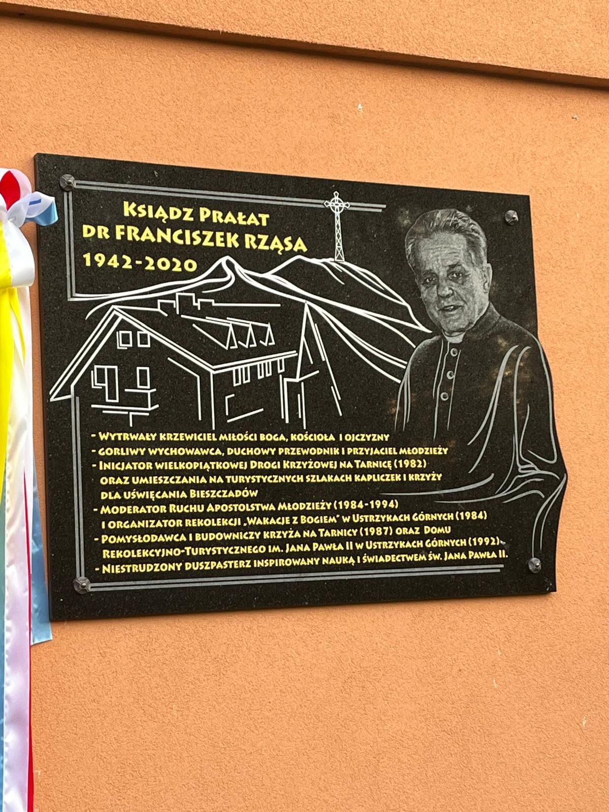 Podczas uroczystości odpustowych na domu rekolekcyjnym w Ustrzykach Górnych została poświęcona tablica upamiętniająca śp. ks. Franciszka Rząsę.