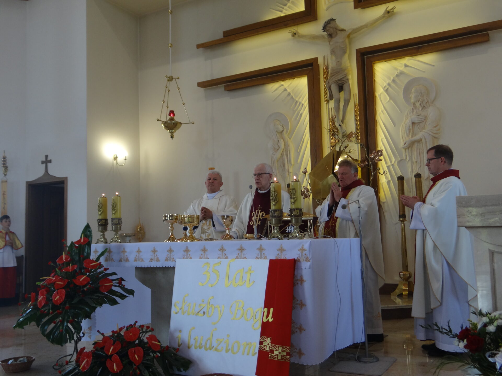 Uroczystość 10-lecie konsekracji kościoła parafialnego pw. Podwyższenia Krzyża Świętego i św. Wincentego a Paulo w Łazach połączona była z 35. rocznicą święceń kapłańskich proboszcza tej wspólnoty, ks. Ryszarda Buryło. Dlatego swoją wdzięczność wobec kapłana wyrazili przedstawiciele miejscowej społeczności i grup parafialnych.