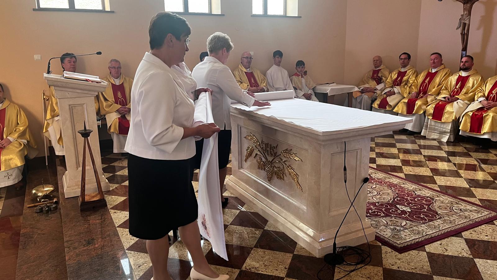 Po homilii wierni uroczyście wyznali swoją wiarę, w śpiewie litanii wzywali wstawiennictwa Wszystkich Świętych, a następie metropolita przemyski odmówił modlitwę poświęcenia kościoła i ołtarza, aby namaścić świątynię olejem Krzyżma Świętego.
