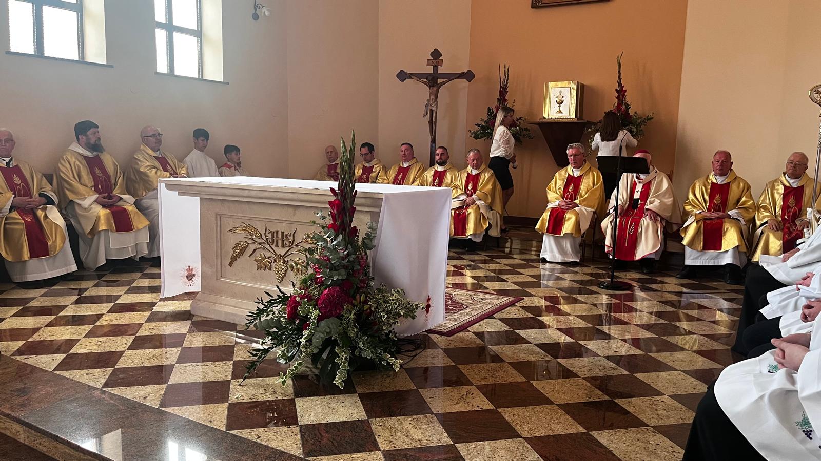 Na zakończenie ks. Stanisław Kowal, proboszcz parafii w Lecce, skierował słowa wdzięczności za akt poświęcenia świątyni i ołtarza, przypominając, że opieka Najświętszego Serca Pana Jezusa towarzyszyła tej wspólnocie w dziele budowy nowej świątyni. – Nie brakowało też modlitwy parafian, naszych Rodaków, którzy mieszkają dzisiaj poza Lecką i wielu, wielu innych osób. Nasza wspólnota zaciągnęła wobec nich wielki dług wdzięczności i spłacać go będziemy gorącą modlitwą. Czynimy to w pierwsze niedziele miesiąca poprzez adoracje miedzy Mszami świętymi – zapewnił kapłan. – Była także ofiara i praca nas samych, mieszkańców parafii. Jak wiele jej było, sami dobrze wiemy – dodał i wyraził wdzięczność wobec wszystkich, którzy w jakikolwiek sposób przyczynili się do powstania kościoła parafialnego w Lecce.