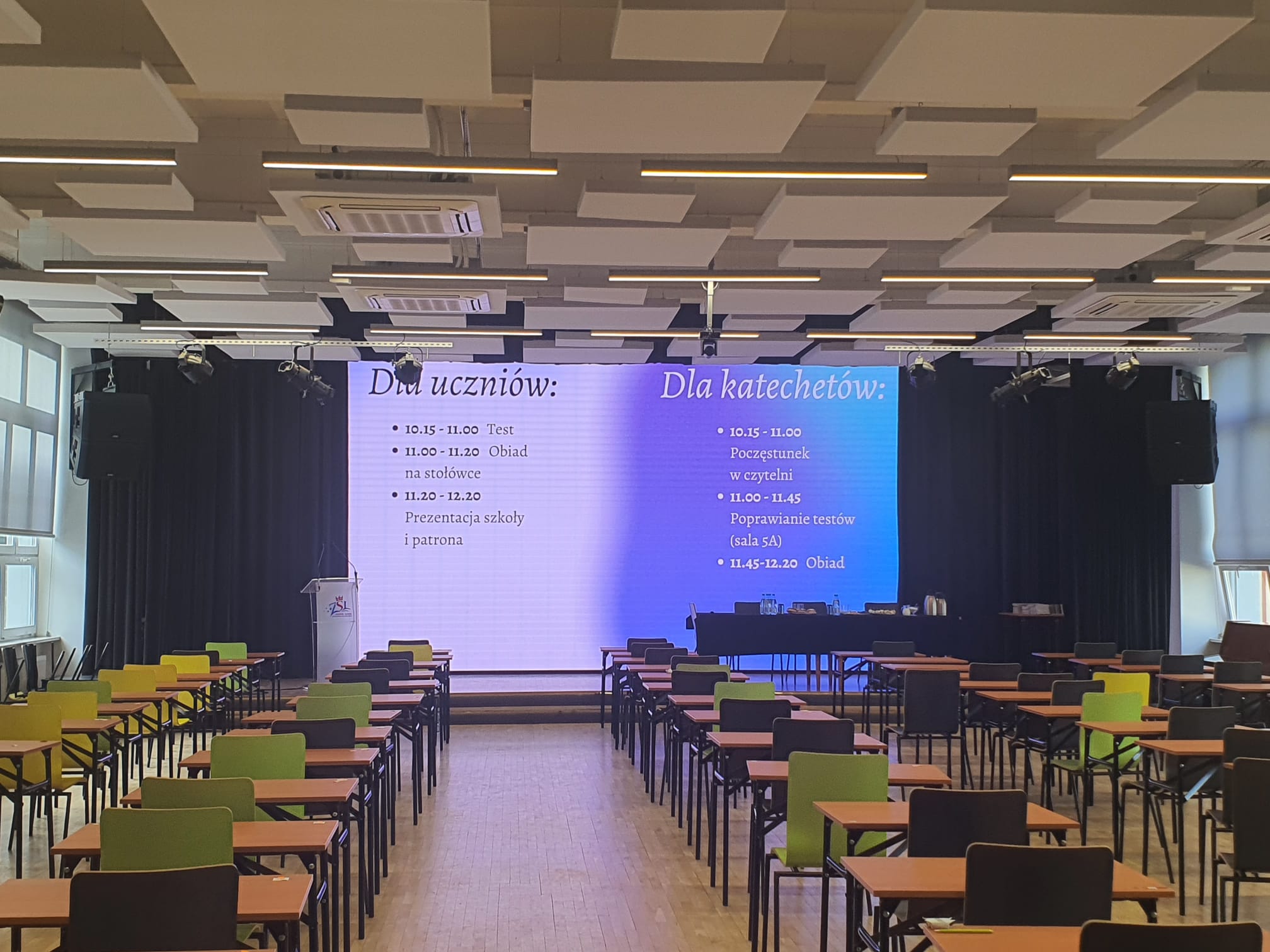 Po zakończeniu testu i jego sprawdzeniu przez wszystkich katechetów uczestnicy wraz z opiekunami zostali zaproszeni na obiad i deser przygotowany przez szkolną kuchnię.