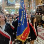 Kaznodzieja zwrócił się w sposób szczególny do uczniów, nauczycieli i dyrekcji szkoły w Markowej, która – jak mówił – miała odwagę przyjąć swoich sąsiadów za drogowskaz. – Niech ten poświęcony sztandar, niech ta obecność dzisiaj szkoły markowskiej w markowskim kościele, przed tymi błogosławionymi Markowianami będzie też jakimś znakiem, że to są wartości, które się nie przemijają. Dlaczego się nie przemijają? Bo są zakorzenione w Słowie Bożym. A dzisiejsze Słowo Boże pomaga nam poznać prawdę o człowieku.