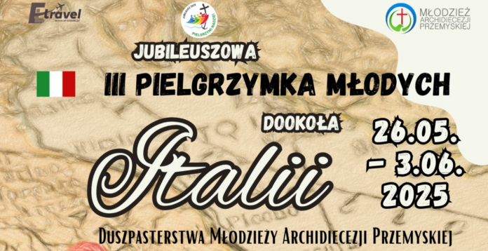 Duszpasterstwo Młodzieży Archidiecezji Przemyskiej serdecznie zaprasza młodzież szkół średnich i studentów do udziału w III Pielgrzymce Młodych „DOOKOŁA ITALII”  w terminie 26 maja – 3 czerwca 2025, wyjazd z Przemyśla.