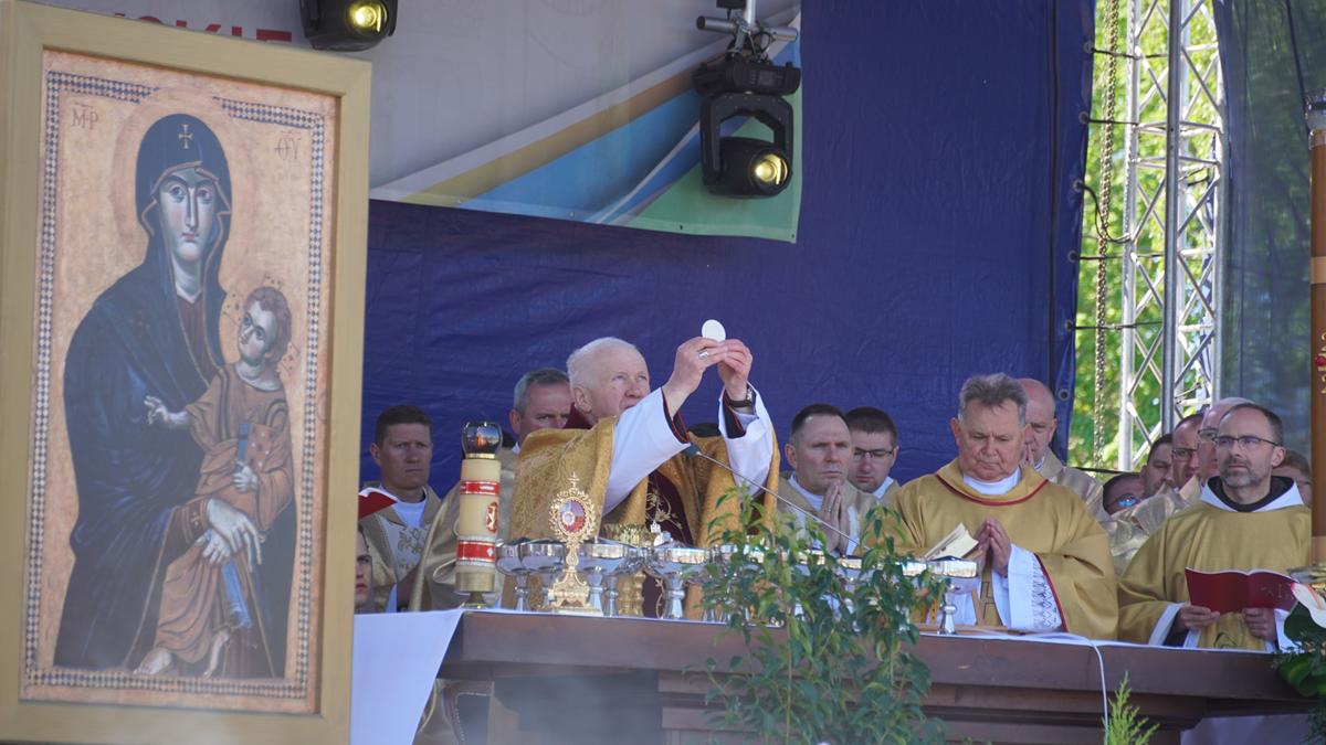 Centralnym punktem dnia była Eucharystia, która była celebrowana w czterech kościołach stacyjnych o godz. 10:00, w duchowej łączności z Watykanem, gdzie równolegle trwały uroczystości pogrzebowe Ojca Świętego Franciszka. W Bazylice oo. Bernardynów w Leżajsku modlitwie przewodniczył abp Adam Szal, a okolicznościową homilię wygłosił ks. prał. Piotr Baraniewicz, oficjał Sądu Metropolitalnego w Przemyślu. – Zgromadziliśmy się i my w Bazylice, u Matki. U Pani Leżajskiej, u Matki Bożej Pocieszenia, aby doświadczyć, że Ona i Jej Syn kocha nas, że opiekuje się nad nami. Przyszliśmy do Matki, która tak bardzo ukochał papież Franciszek. Ktoś wyliczył, że w czasie swojego dwunastoletniego pontyfikatu sto dwadzieścia pięć razy przekraczał próg Bazyliki Matki Bożej Większej w Rzymie, aby tam zawierzyć Jej każdą swoją podróż apostolską. Po po jej zakończeniu odwiedzał Maryję w obrazie Salus Populi Romani, aby poprosić Ją o opiekę za nią podziękować – powiedział kaznodzieja. – Zatem młodzi, witajcie w Bazylice. Witajcie u Matki – dodał.