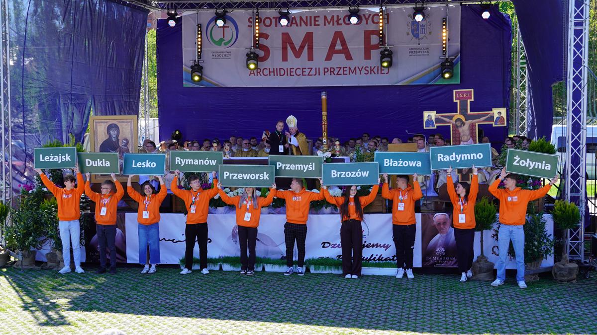 Na zakończenie Mszy Świętej w Leżajsku nastąpił jeden z najważniejszych momentów całego Spotkania Młodych Archidiecezji Przemyskiej. To oczywiście ogłoszenie miejsca, w którym odbędzie się 33. edycja SMAP. W 2026 r. będzie to Rymanów. Modlitwę transmitowało Radio FARA.