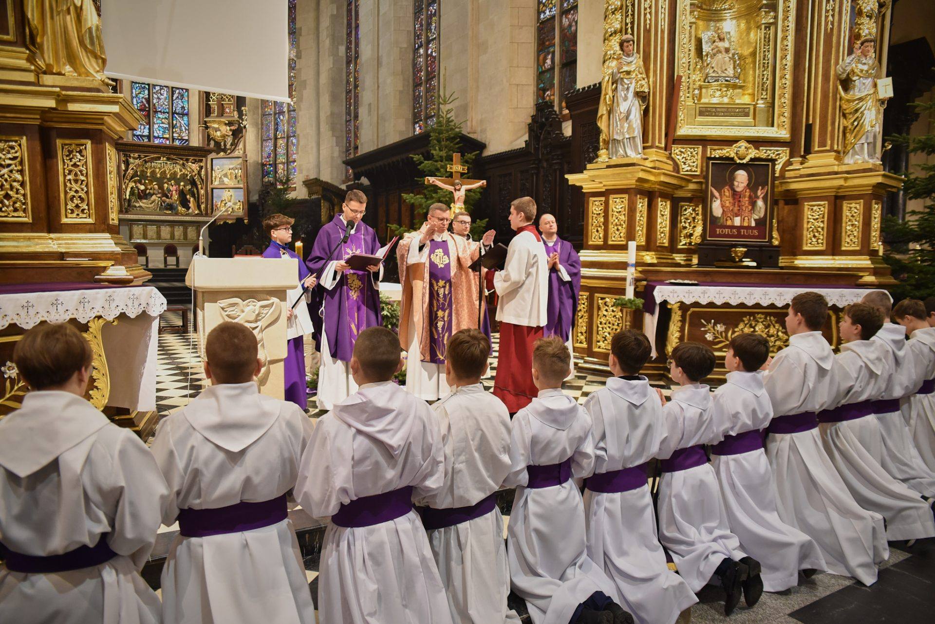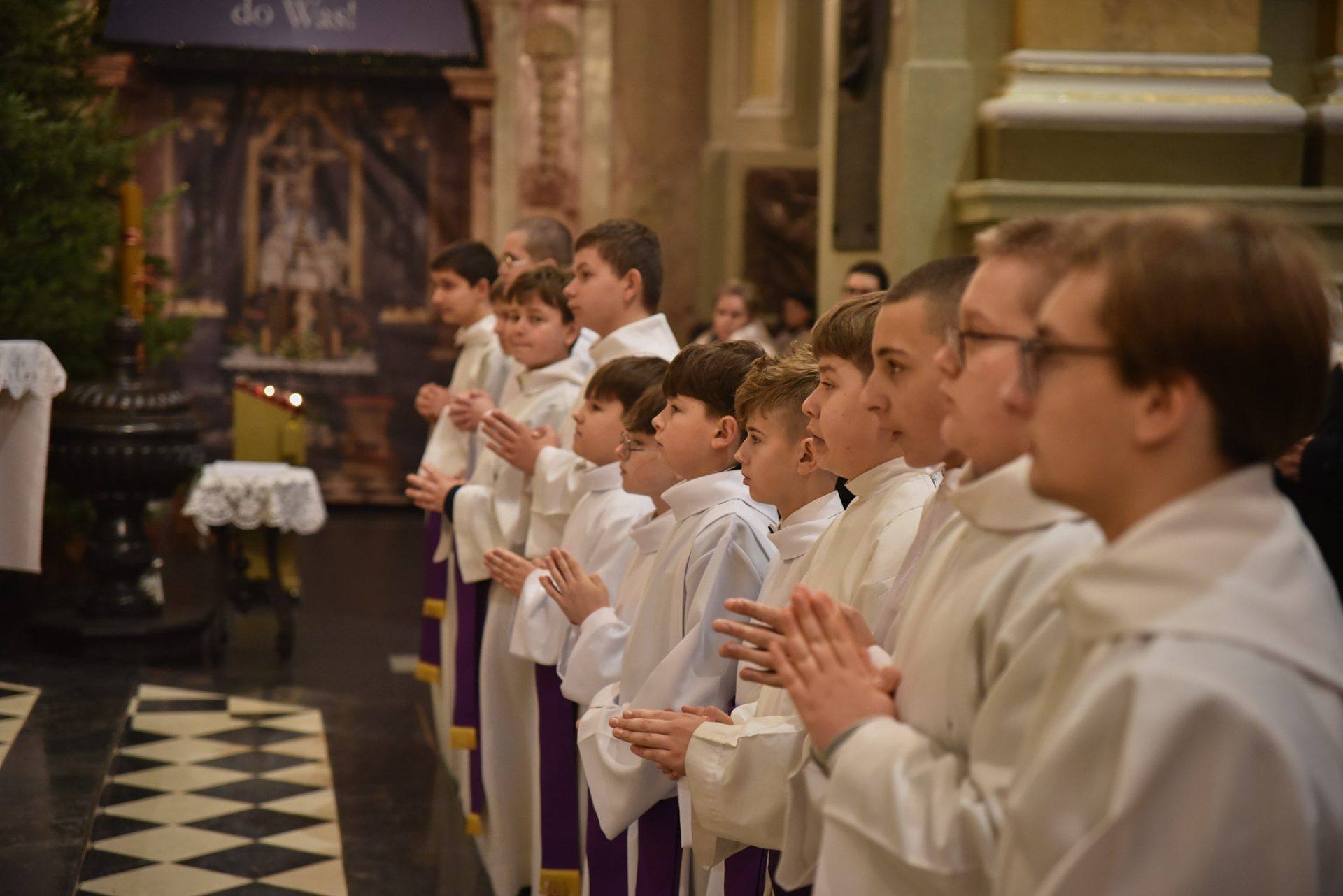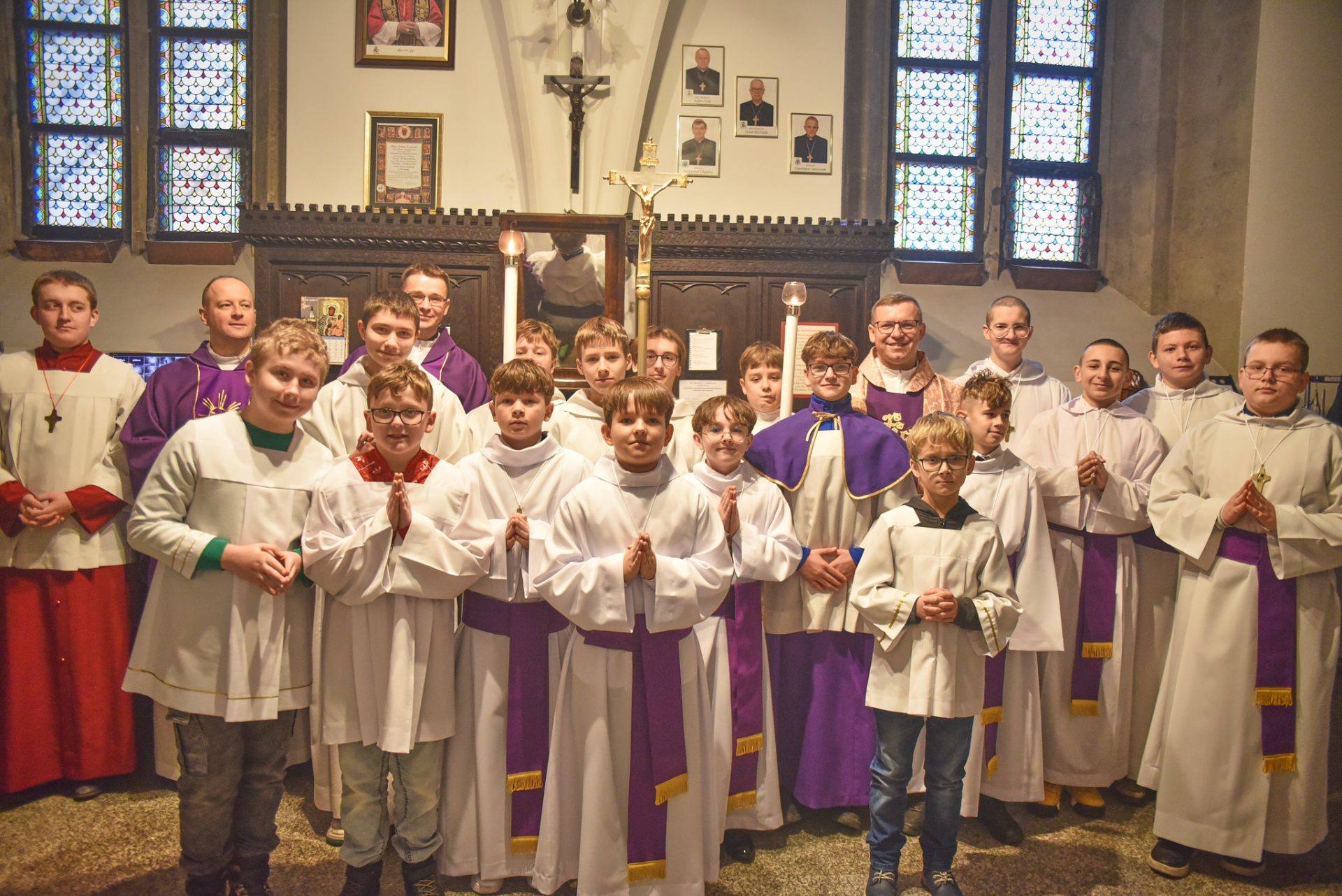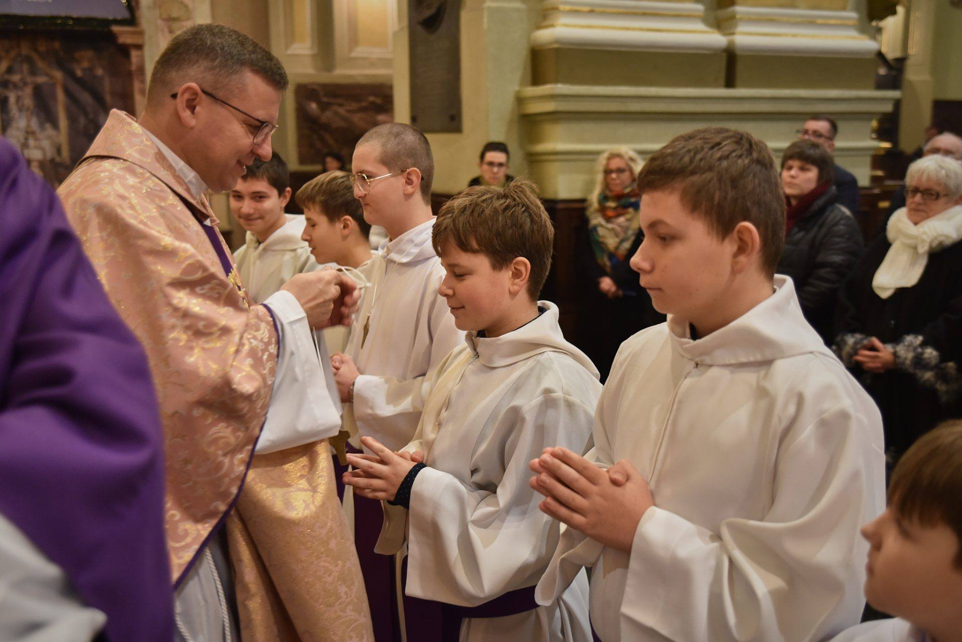Po homilii poprzez specjalny obrzęd i błogosławieństwo 15 ministrantów zostało uroczyście włączonych do grona lektorów – ministrantów Słowa Bożego.